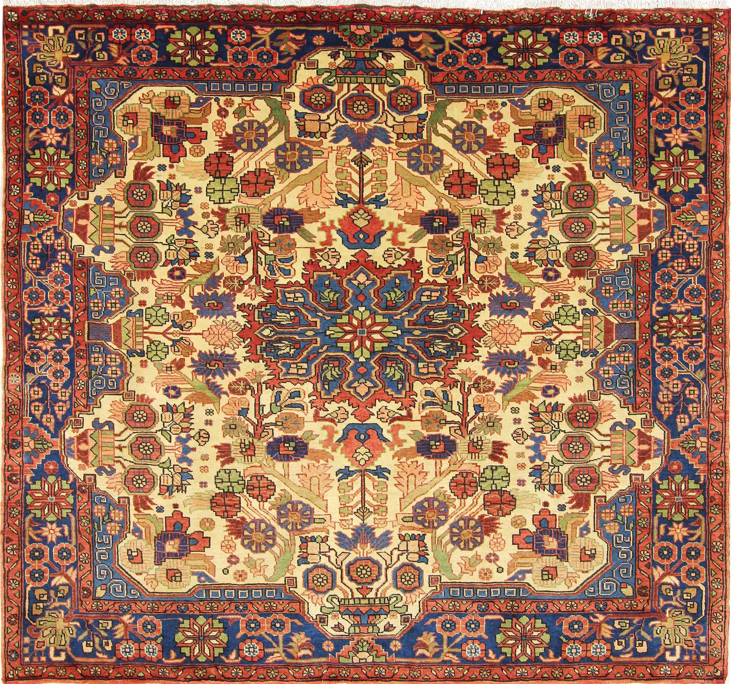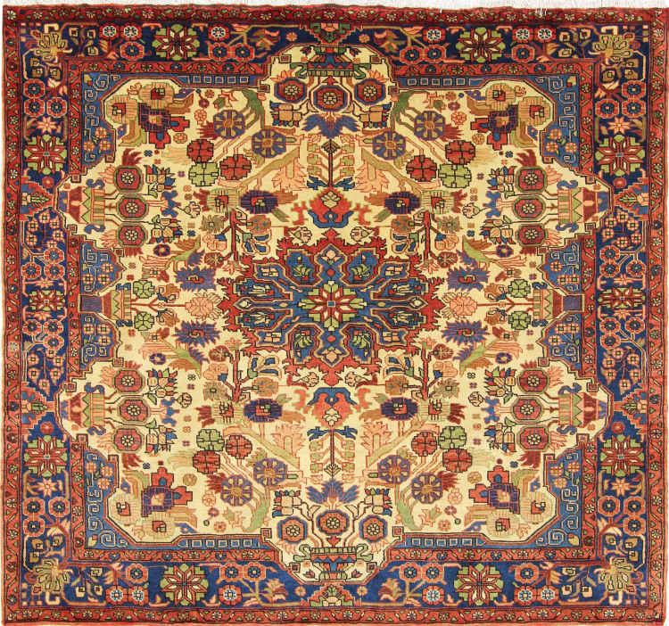 Carpet ID: 109326003132321 Size: 199x183 cm Thickness: ap. 12 mm Knot density: 320 000 - 360 000 / m² Manufacturing: Knotted by hand Pile: Handspun wool Warp: Cotton Origin: Persia Age: New Weight: ap. 13 kg In stock: Unique - Only 1 in stock