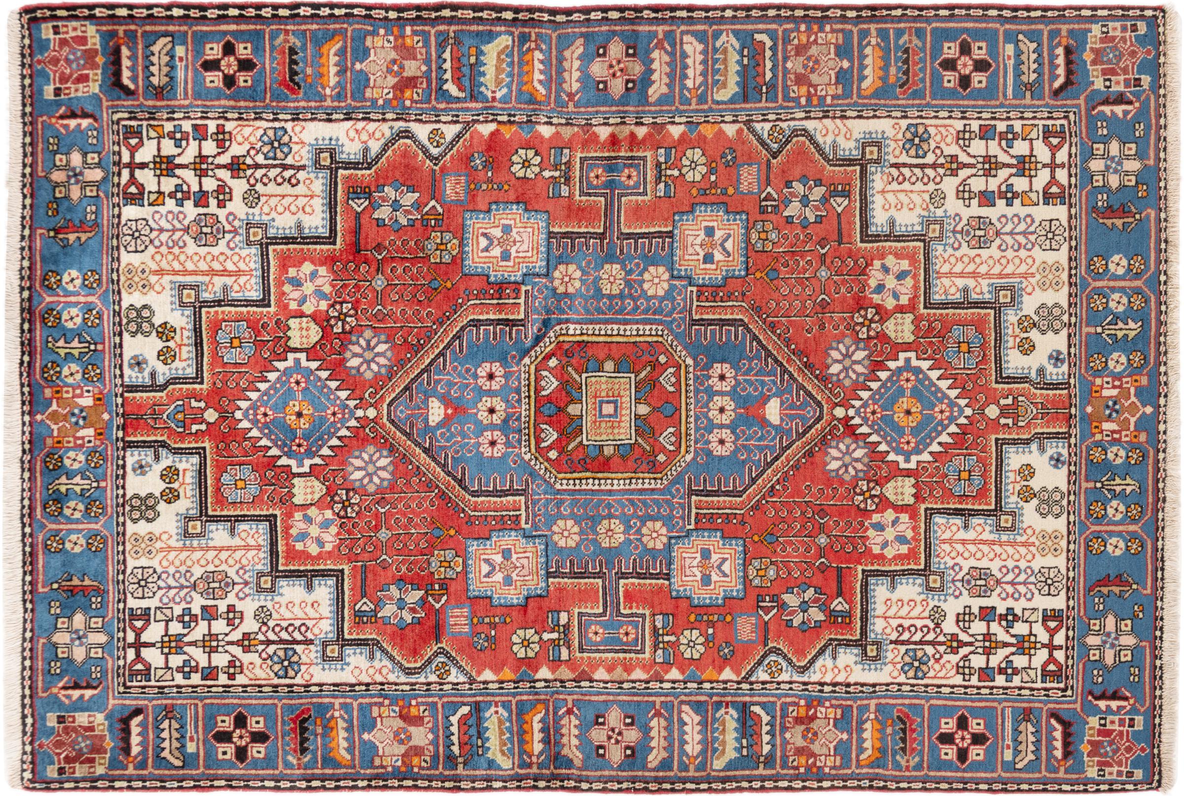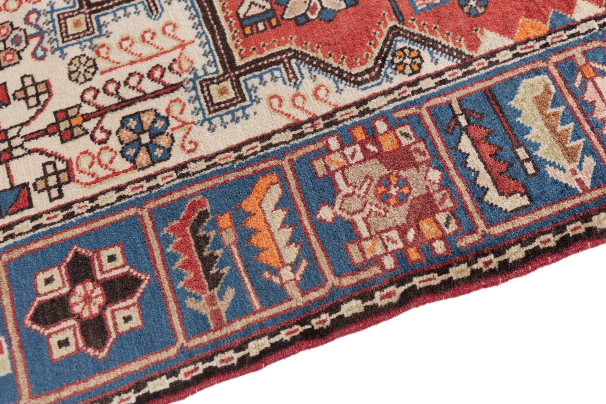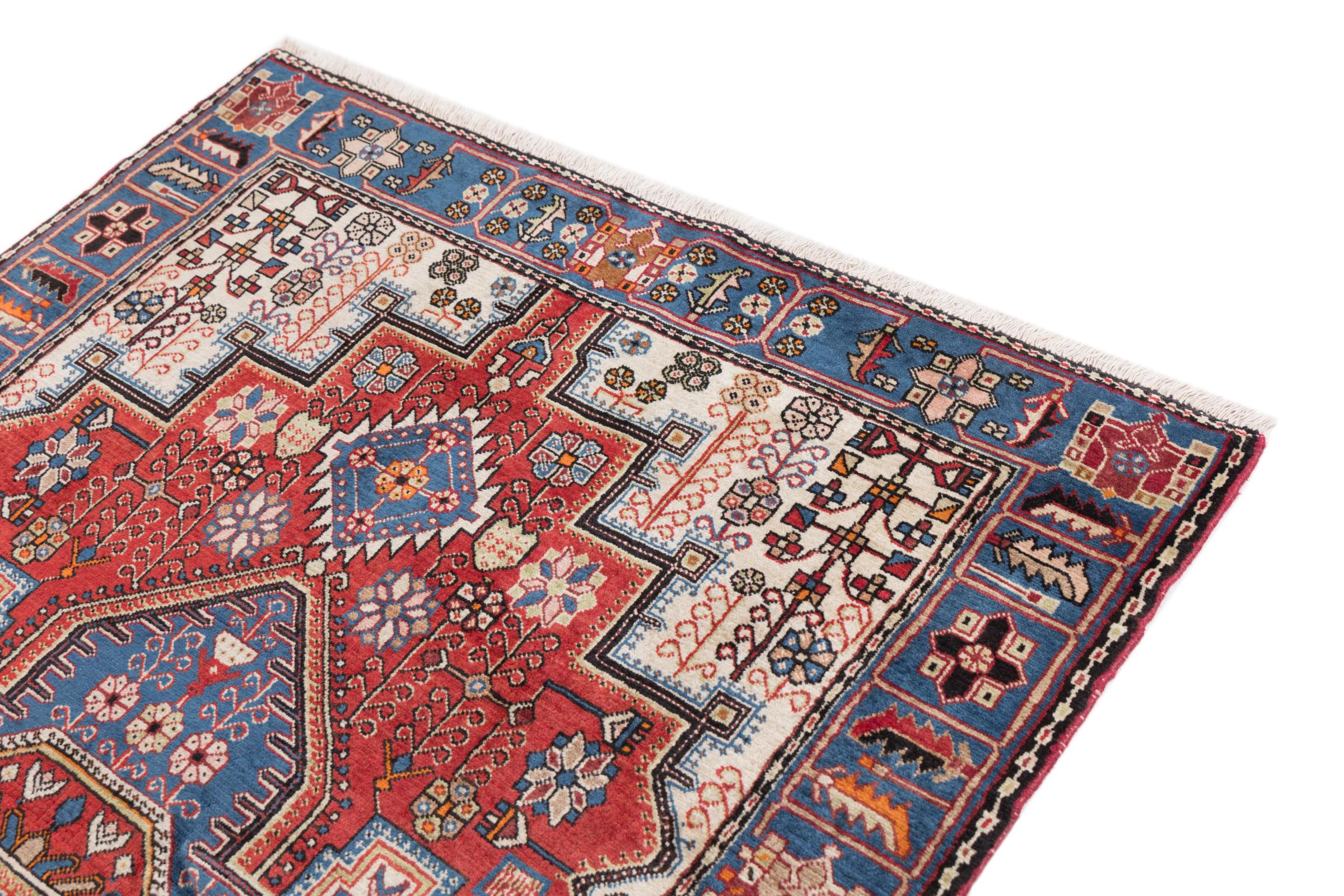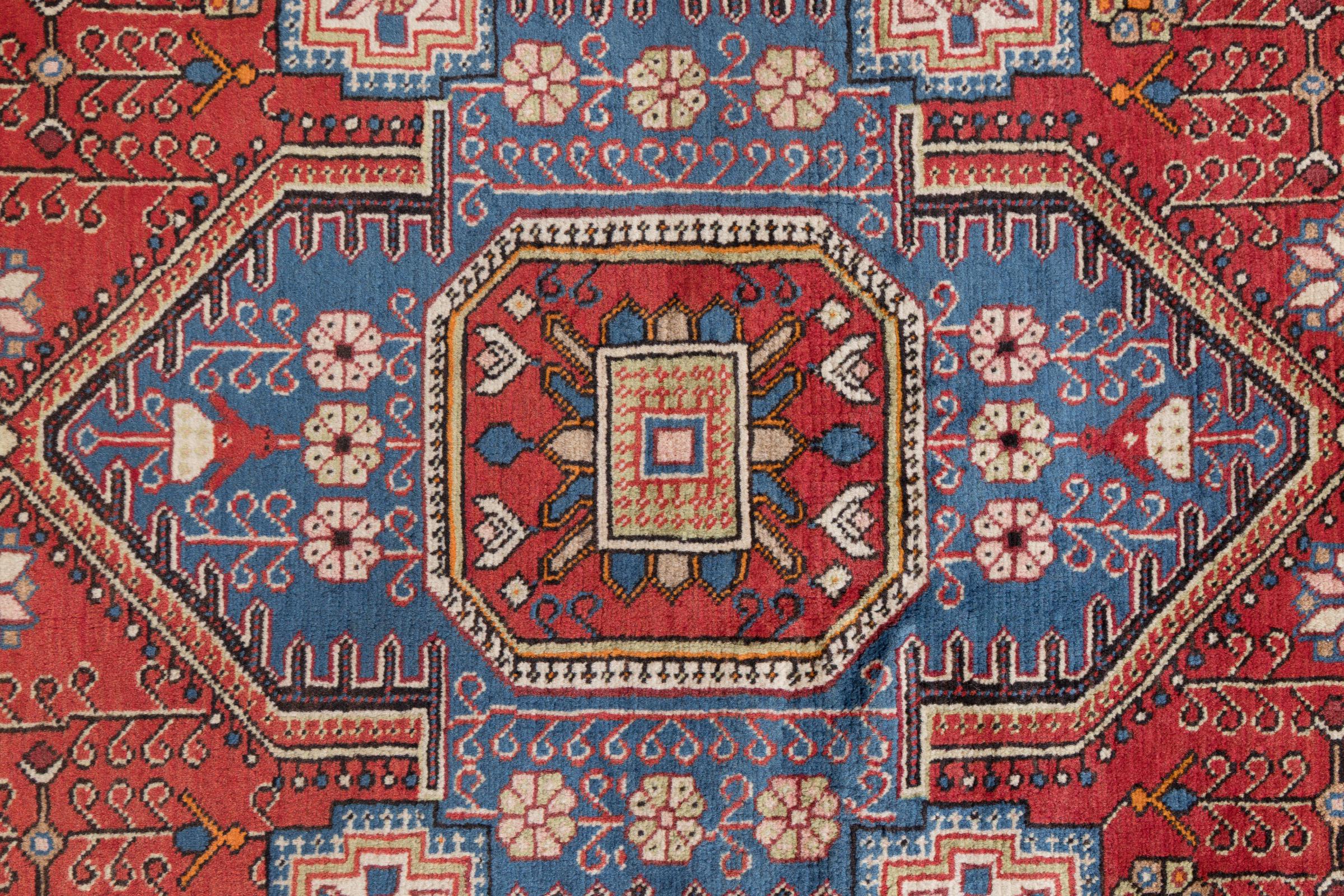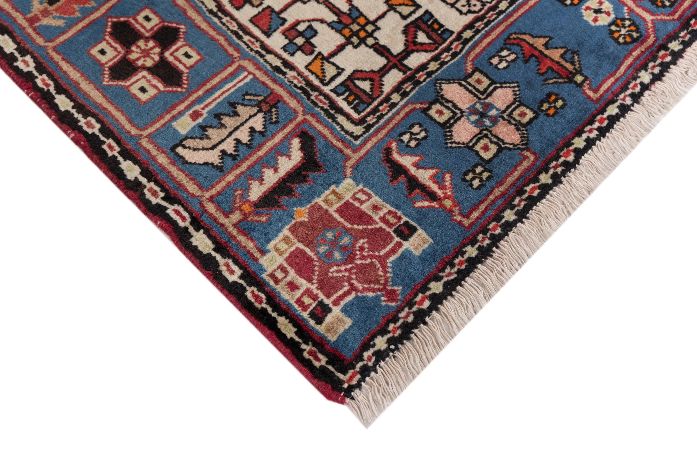 This rug belongs to village and nomadic rugs from Iran, formerly Persia. This type of rug is knotted by hand in smaller towns and villages in old tradition. Even nomads still knot Persian rugs in the open air. The rugs are knotted without a draft and completely from the mind. They are characterized by classical ornaments, which are arranged in straight and geometrical patterns. Thanks to their cultural-traditional origin, these rugs have a unique character that embodies ancient Persia.