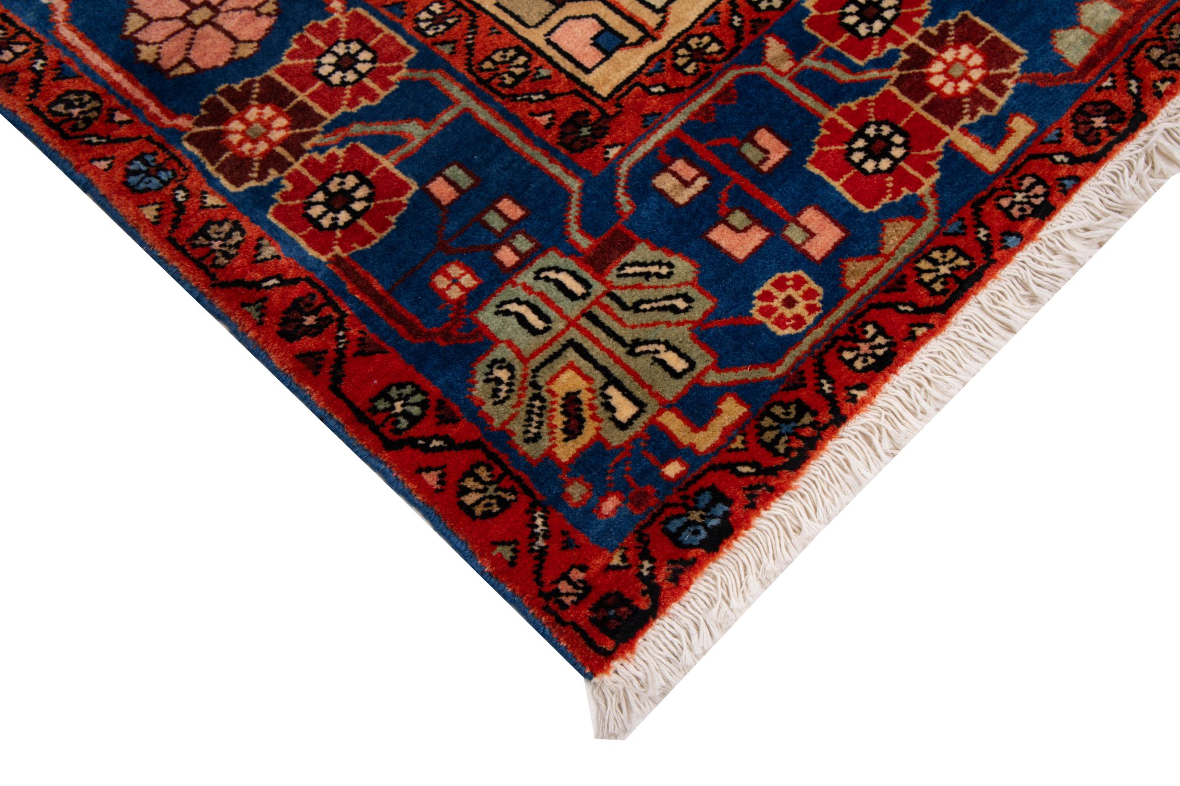 This Persian Nahavand Carpet was hand knotted in western Iran. It is robust and perfectly suitable for highly frequented areas. The relatively low knot density does not say much about the quality of this Persian Carpet. Decisive are the high quality wool and the beautiful shining colours.