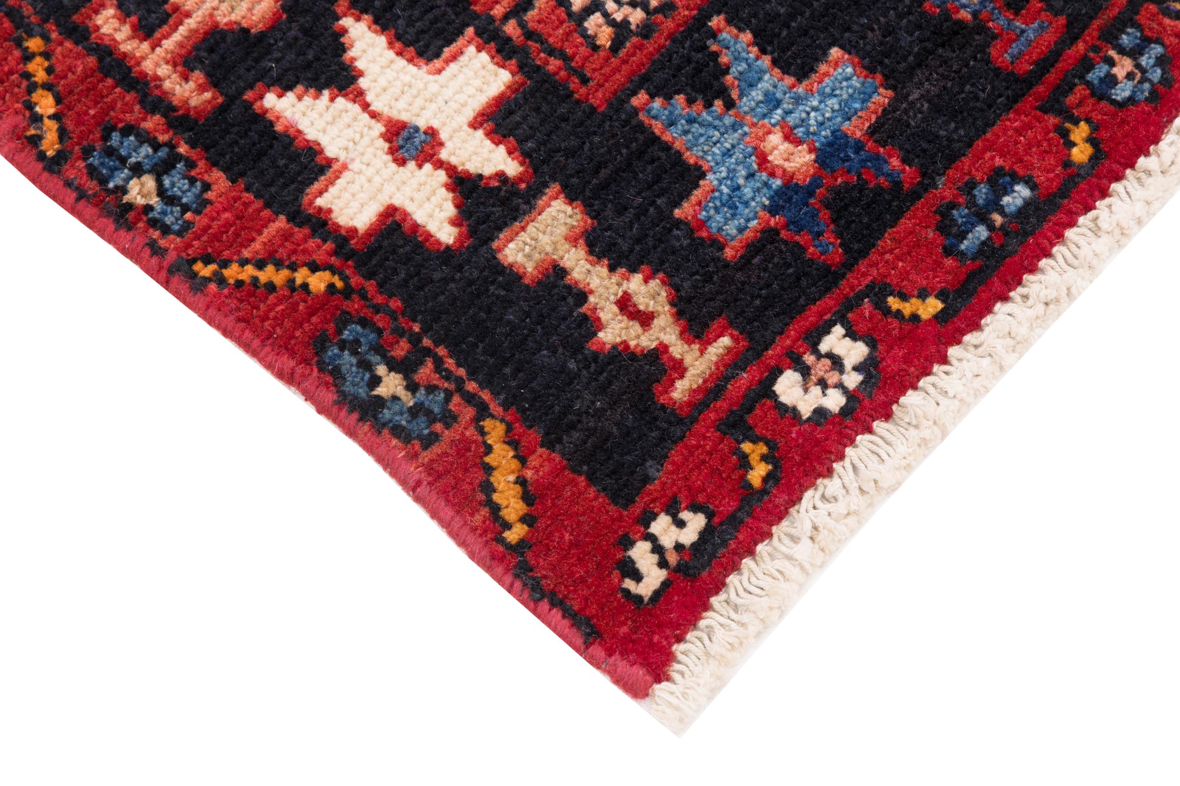 This rug belongs to village and nomadic rugs from Iran, formerly Persia. This type of rug is knotted by hand in smaller towns and villages in old tradition. Even nomads still knot Persian rugs in the open air. The rugs are knotted without a draft and completely from the mind. They are characterized by classical ornaments, which are arranged in straight and geometrical patterns. Thanks to their cultural-traditional origin, these rugs have a unique character that embodies ancient Persia.