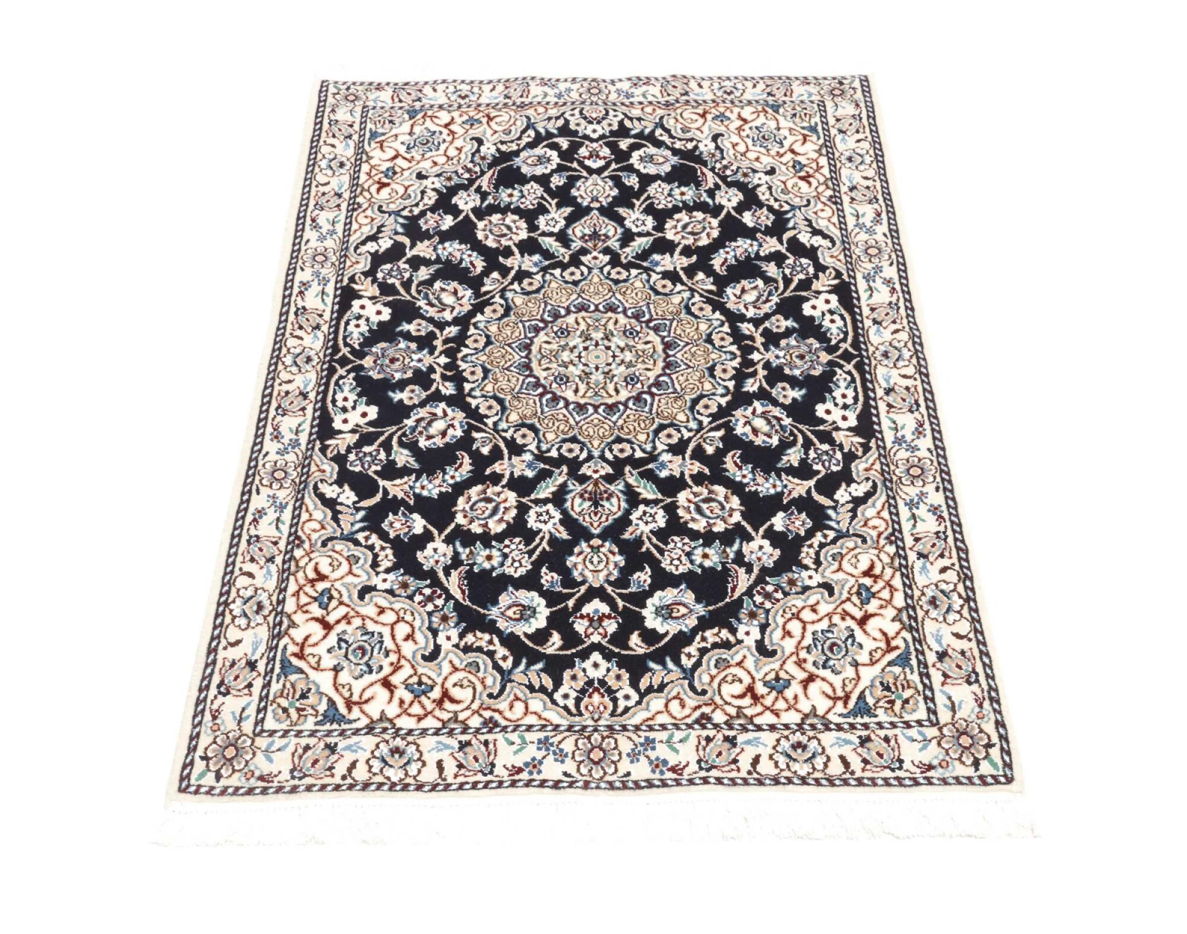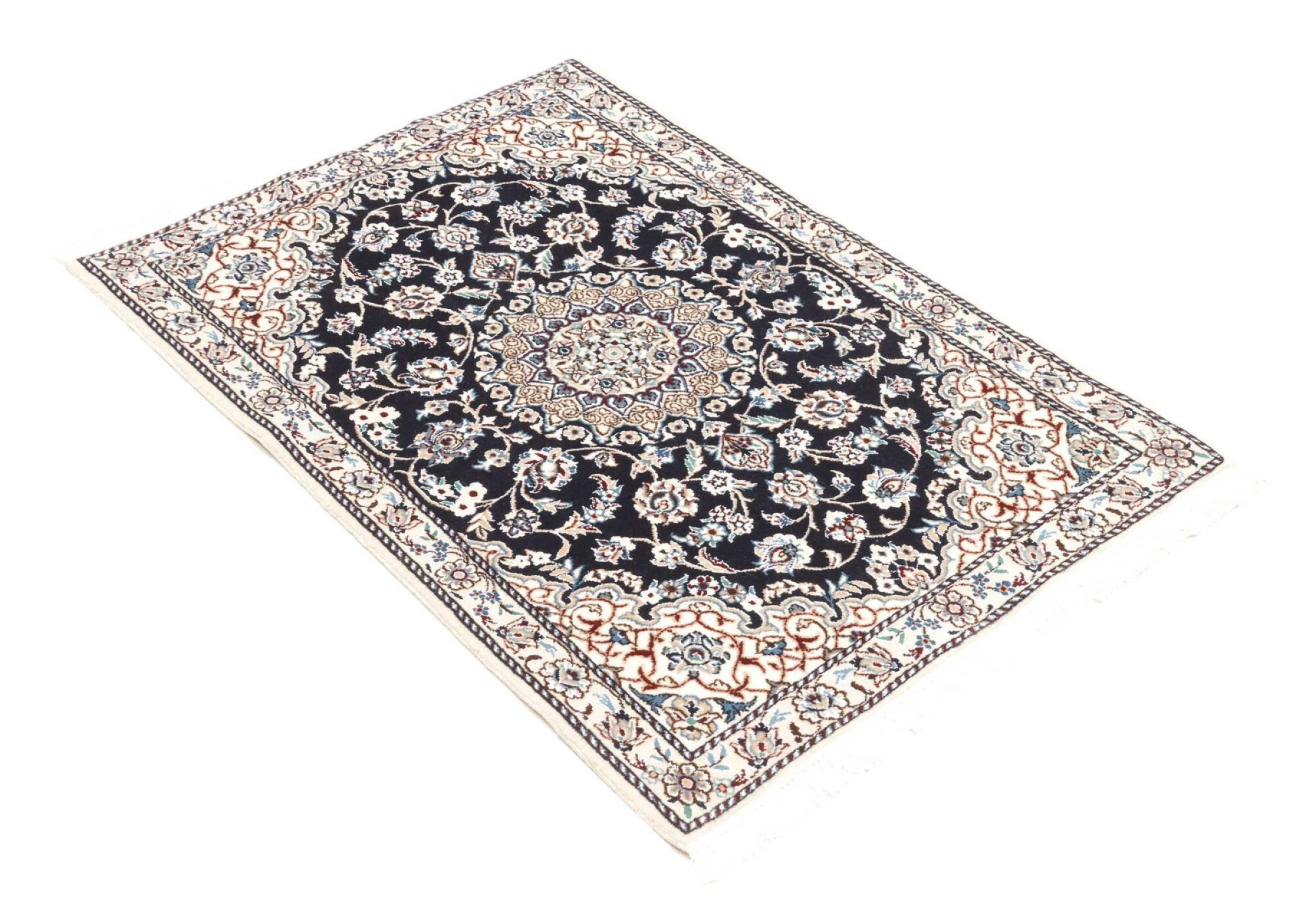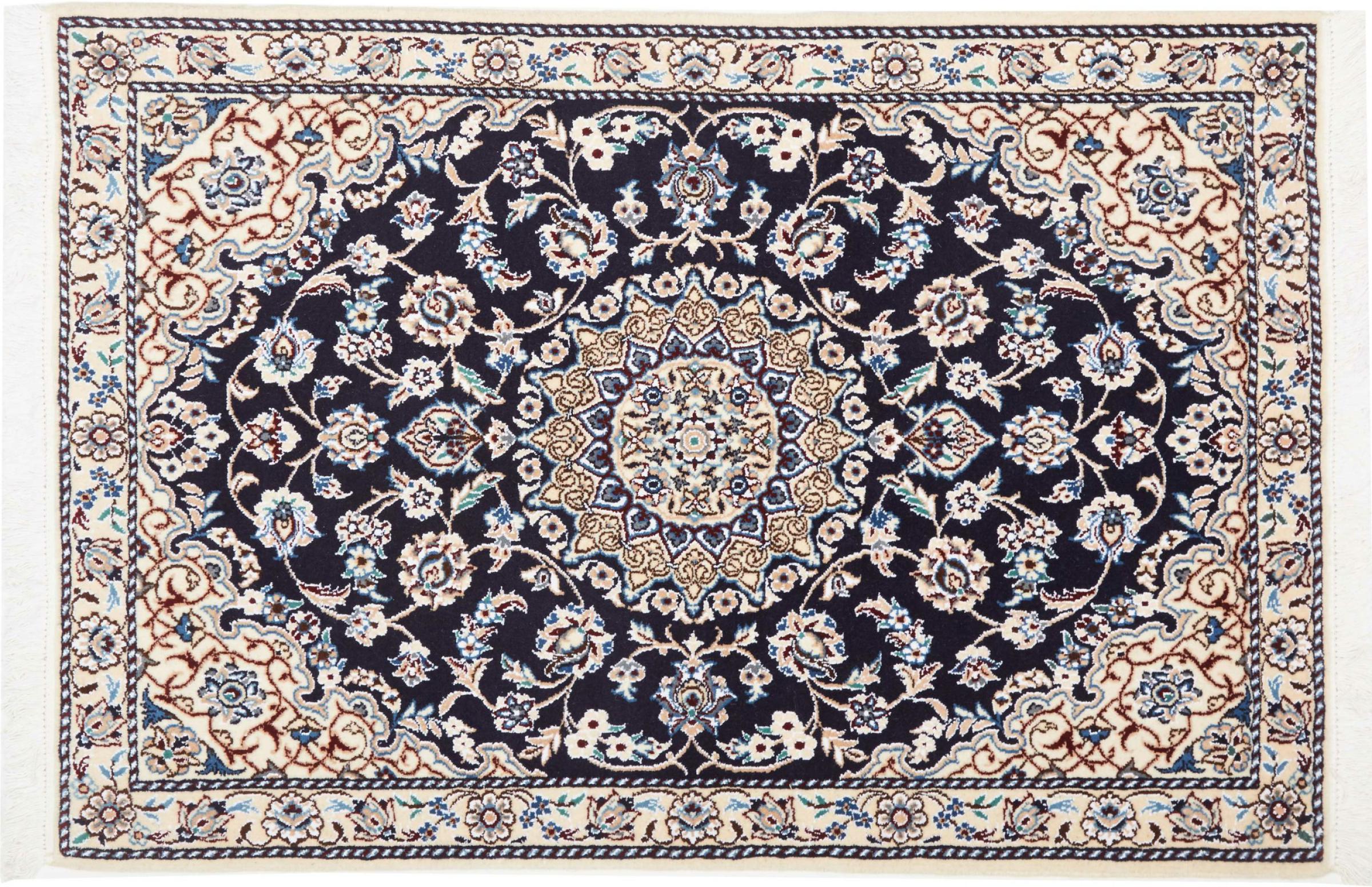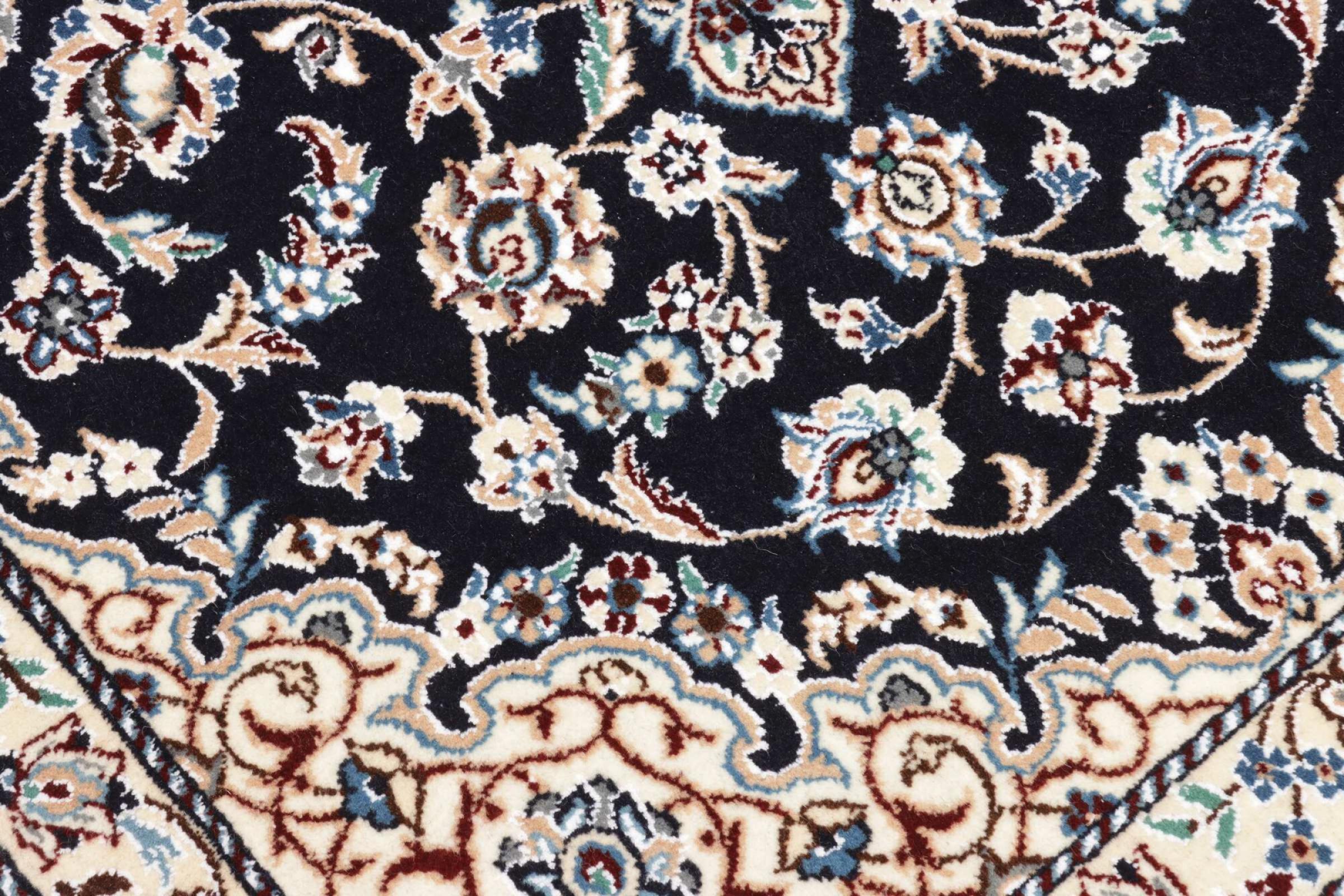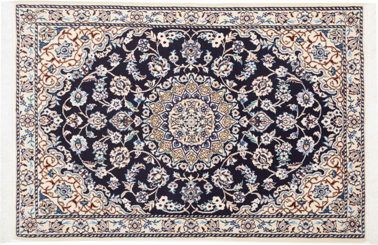 Rugs from the city of Nain, from the border of one of the largest deserts in Iran, are among the most famous Persian rugs in the world. Their typical design is characterized by floral ornaments, a medallion in the middle as well as beige and red or blue shades. Thanks to their designations 4La, 6La, 9La and 12La, the finenesses of a Nain rug can be seen at a glance. The lower the "La" number, the higher the knot density and thus the finer the rug.