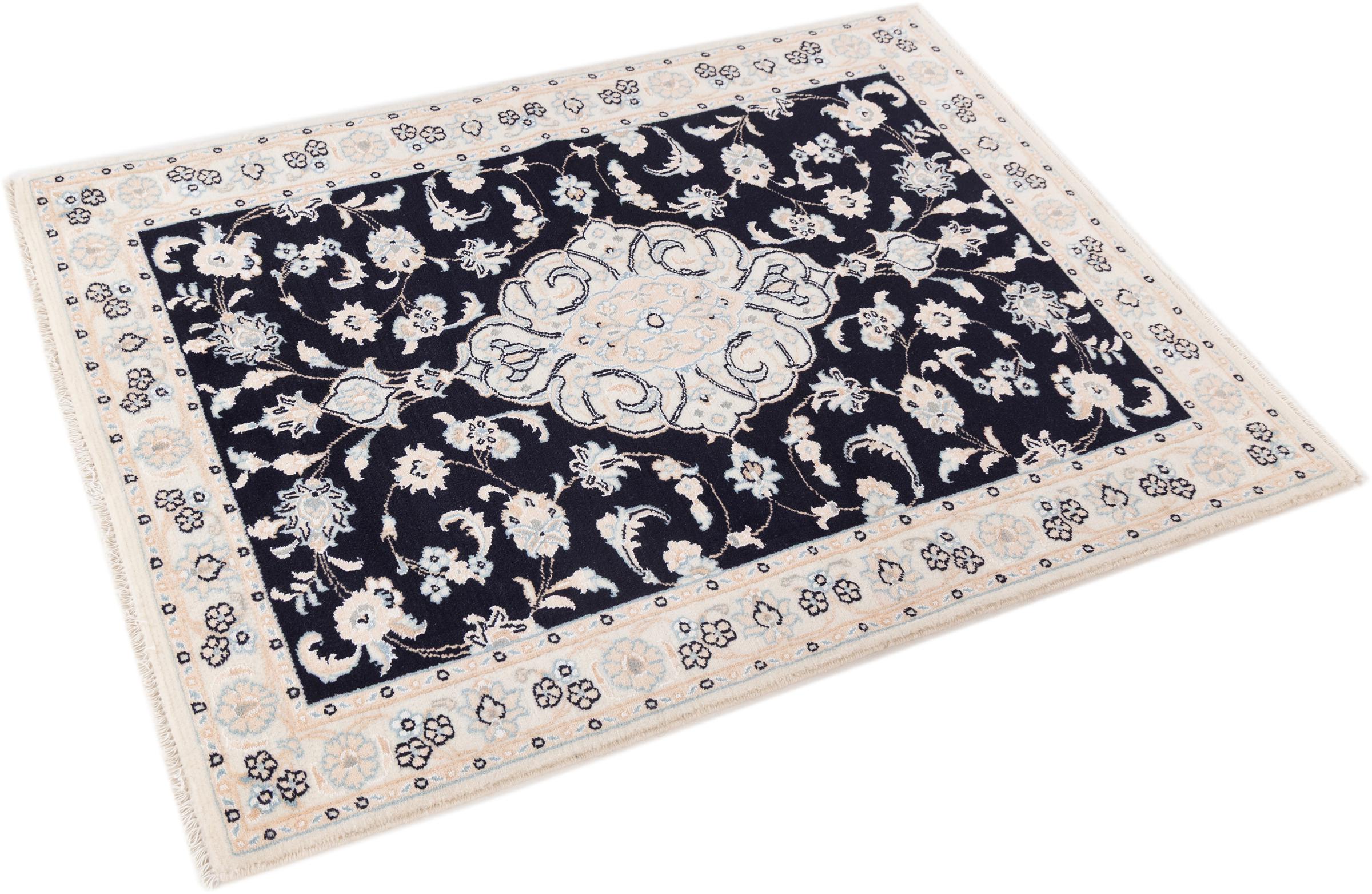 Rugs from the city of Nain, from the border of one of the largest deserts in Iran, are among the most famous Persian rugs in the world. Their typical design is characterized by floral ornaments, a medallion in the middle as well as beige and red or blue shades. Thanks to their designations 4La, 6La, 9La and 12La, the finenesses of a Nain rug can be seen at a glance. The lower the "La" number, the higher the knot density and thus the finer the rug.