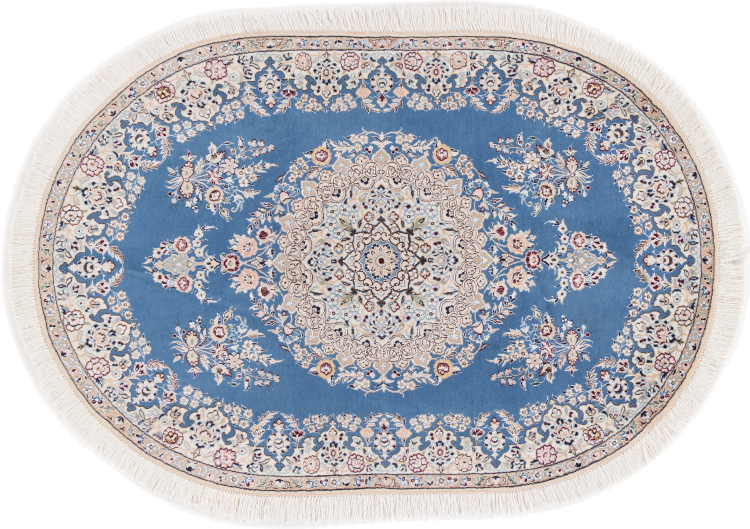 Rugs from the city of Nain, from the border of one of the largest deserts in Iran, are among the most famous Persian rugs in the world. Their typical design is characterized by floral ornaments, a medallion in the middle as well as beige and red or blue shades. Thanks to their designations 4La, 6La, 9La and 12La, the finenesses of a Nain rug can be seen at a glance. The lower the "La" number, the higher the knot density and thus the finer the rug.