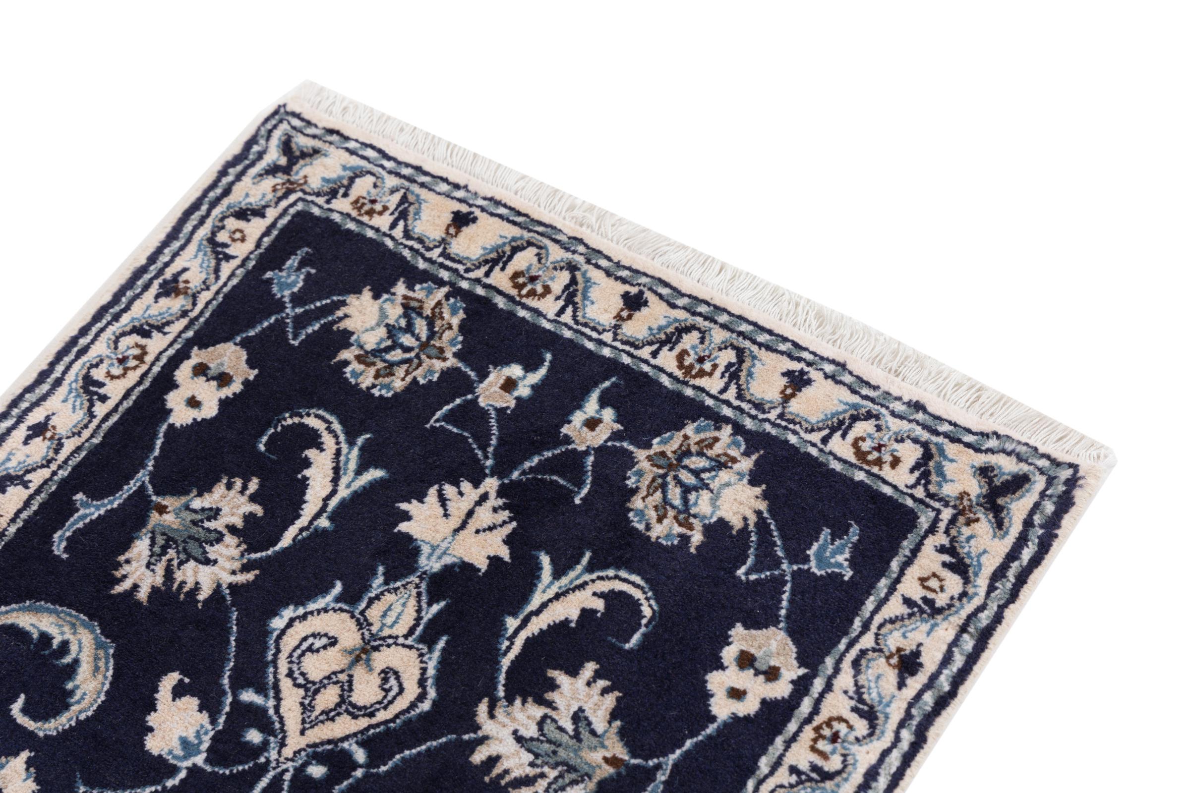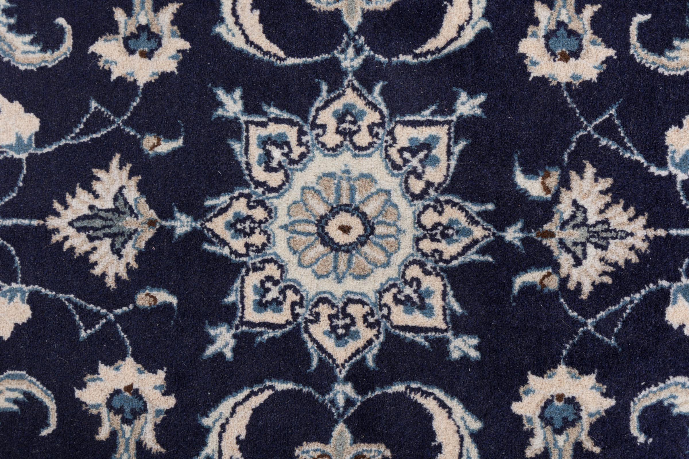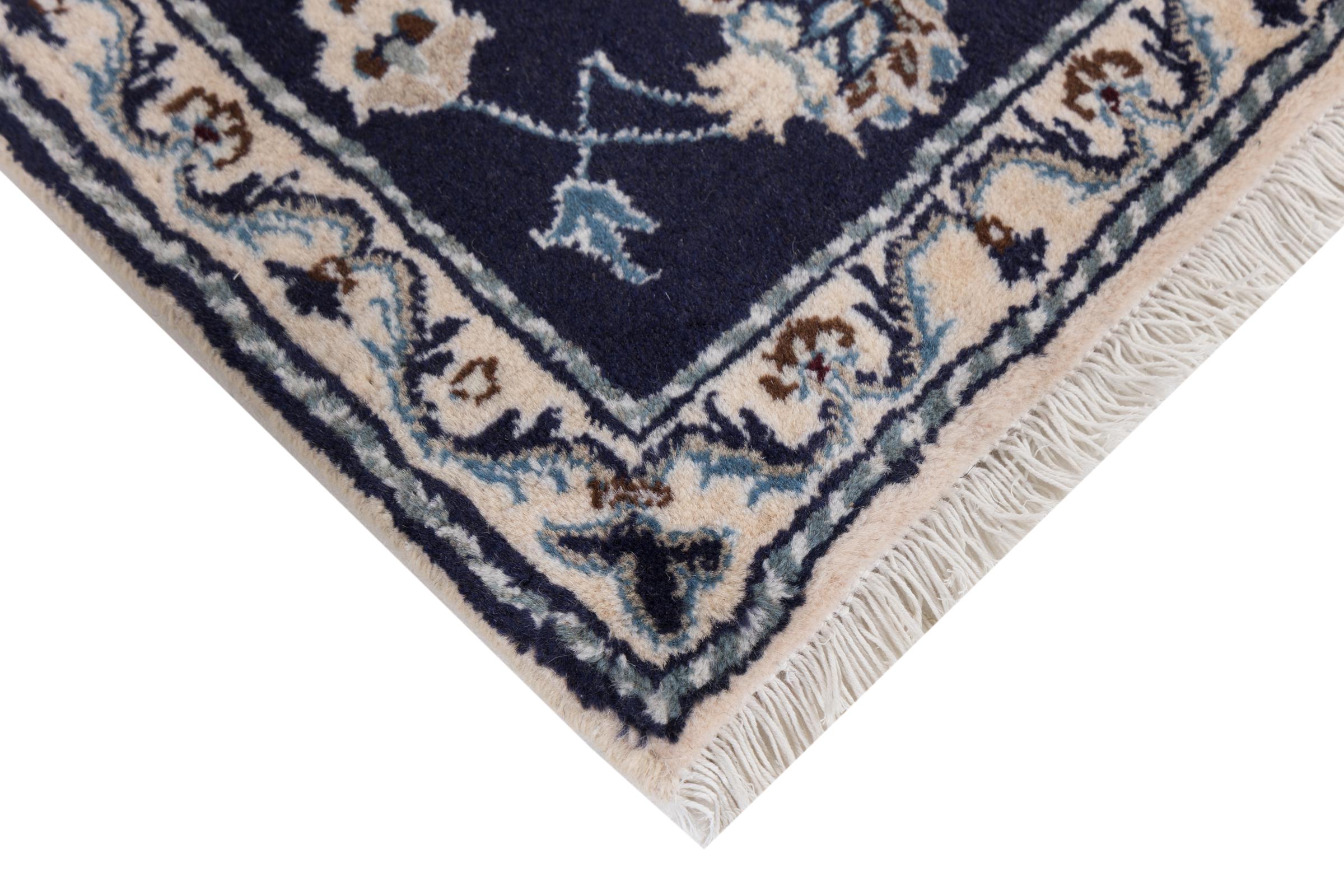 Rugs from the city of Nain, from the border of one of the largest deserts in Iran, are among the most famous Persian rugs in the world. Their typical design is characterized by floral ornaments, a medallion in the middle as well as beige and red or blue shades. Thanks to their designations 4La, 6La, 9La and 12La, the finenesses of a Nain rug can be seen at a glance. The lower the "La" number, the higher the knot density and thus the finer the rug.