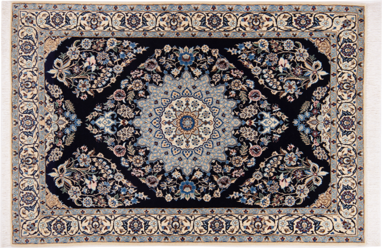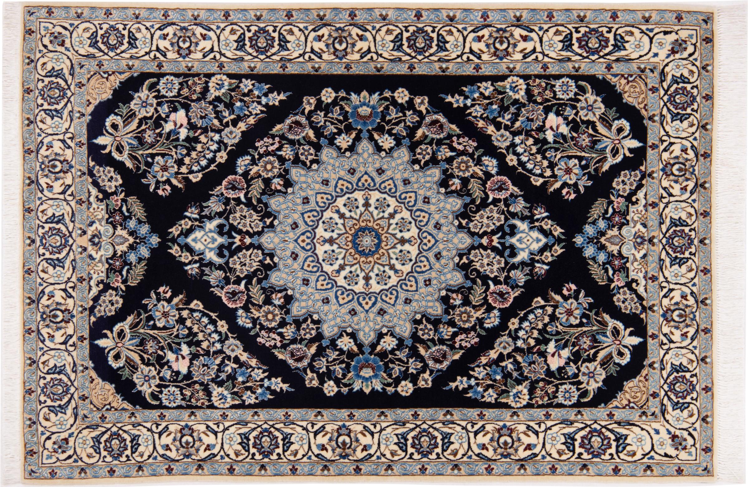 Rugs from the city of Nain, from the border of one of the largest deserts in Iran, are among the most famous Persian rugs in the world. Their typical design is characterized by floral ornaments, a medallion in the middle as well as beige and red or blue shades. Thanks to their designations 4La, 6La, 9La and 12La, the finenesses of a Nain rug can be seen at a glance. The lower the "La" number, the higher the knot density and thus the finer the rug.