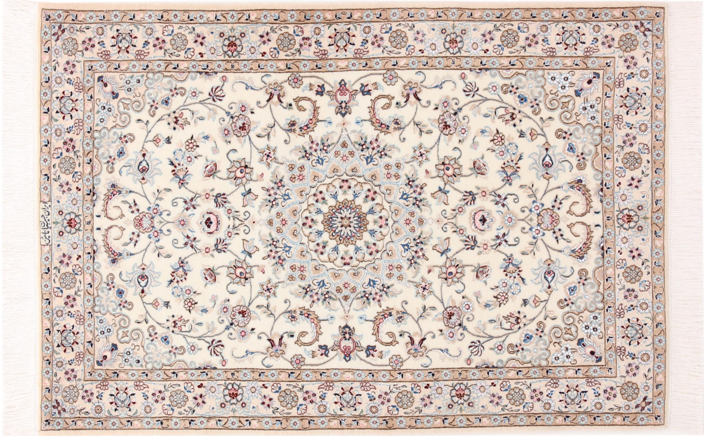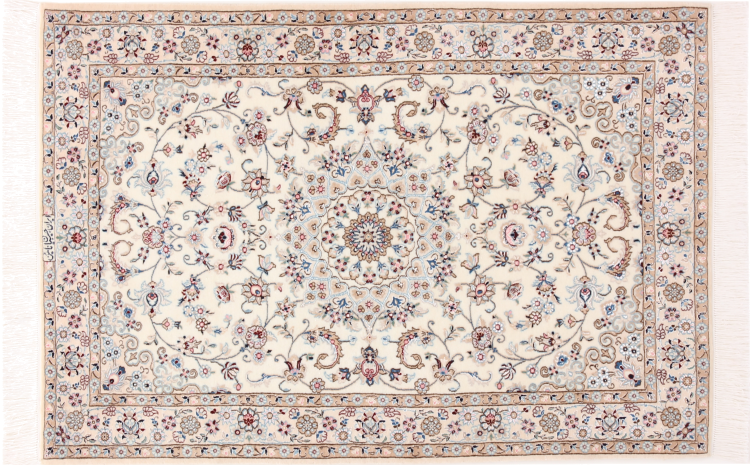 Rugs from the city of Nain, from the border of one of the largest deserts in Iran, are among the most famous Persian rugs in the world. Their typical design is characterized by floral ornaments, a medallion in the middle as well as beige and red or blue shades. Thanks to their designations 4La, 6La, 9La and 12La, the finenesses of a Nain rug can be seen at a glance. The lower the "La" number, the higher the knot density and thus the finer the rug.