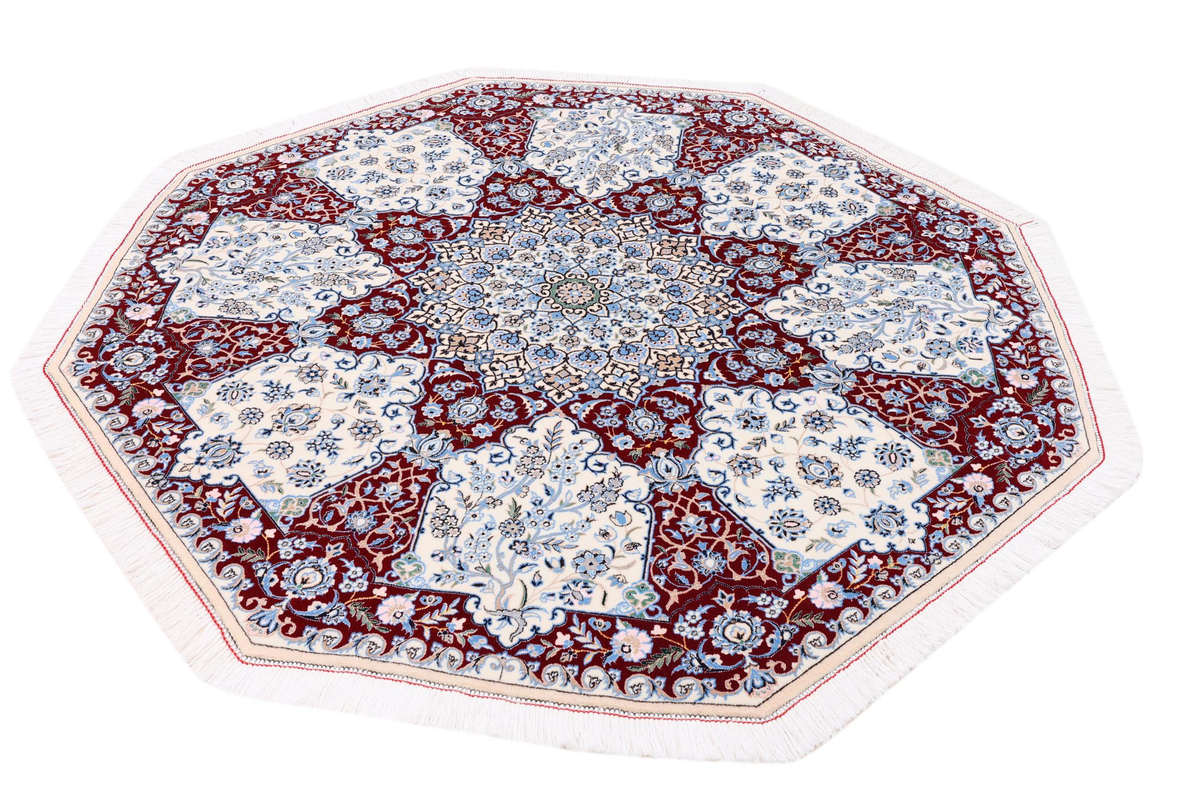 Carpet ID: 2049820017470 Size: 175x175 cm Thickness: ap. 6 mm Knot density: 810 000 / m² Manufacturing: Knotted by hand Pile: Wool with silk Warp: Cotton Origin: Persia Age: New Weight: ap. 8 kg In stock: Unique - Only 1 in stock