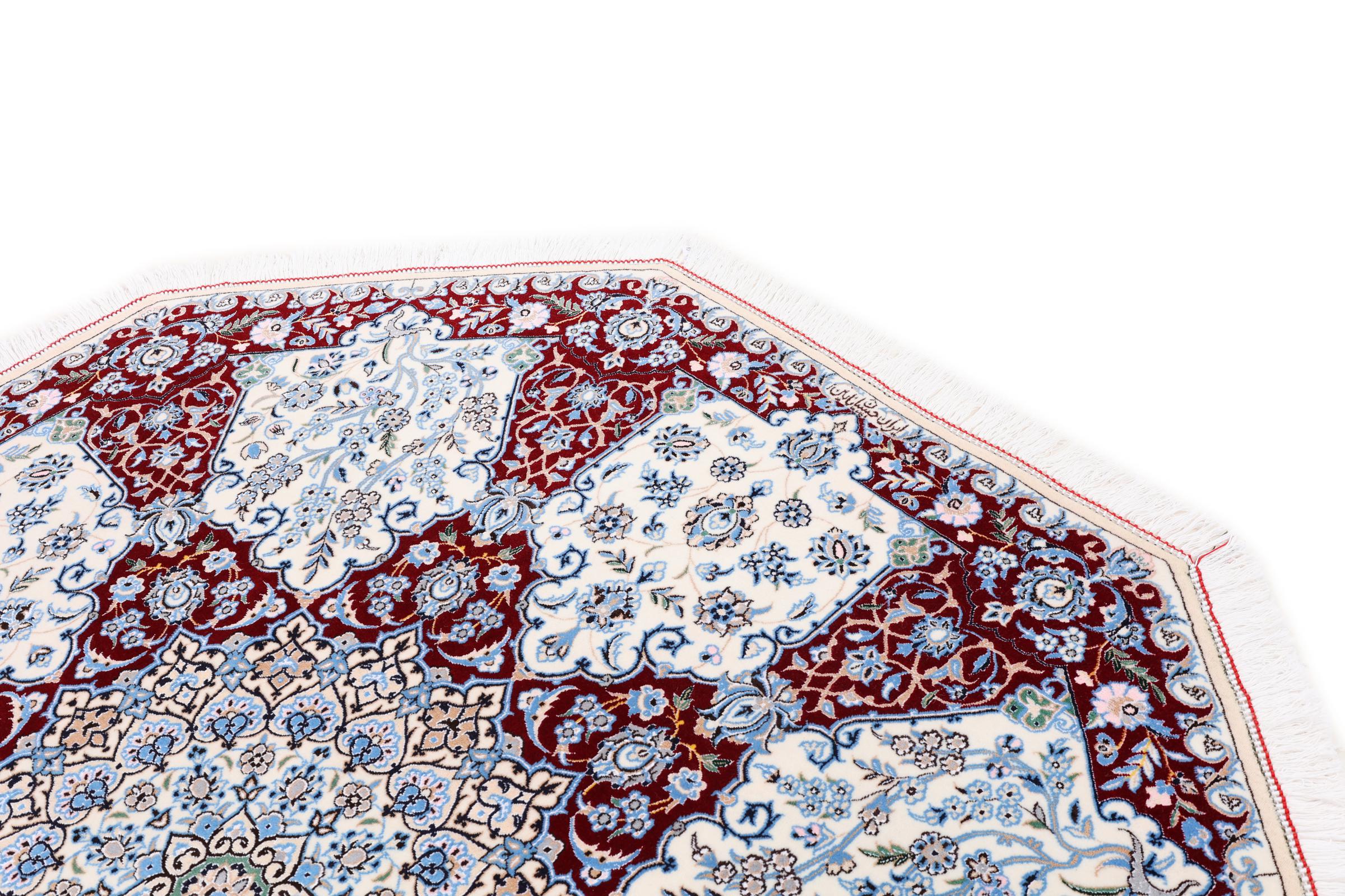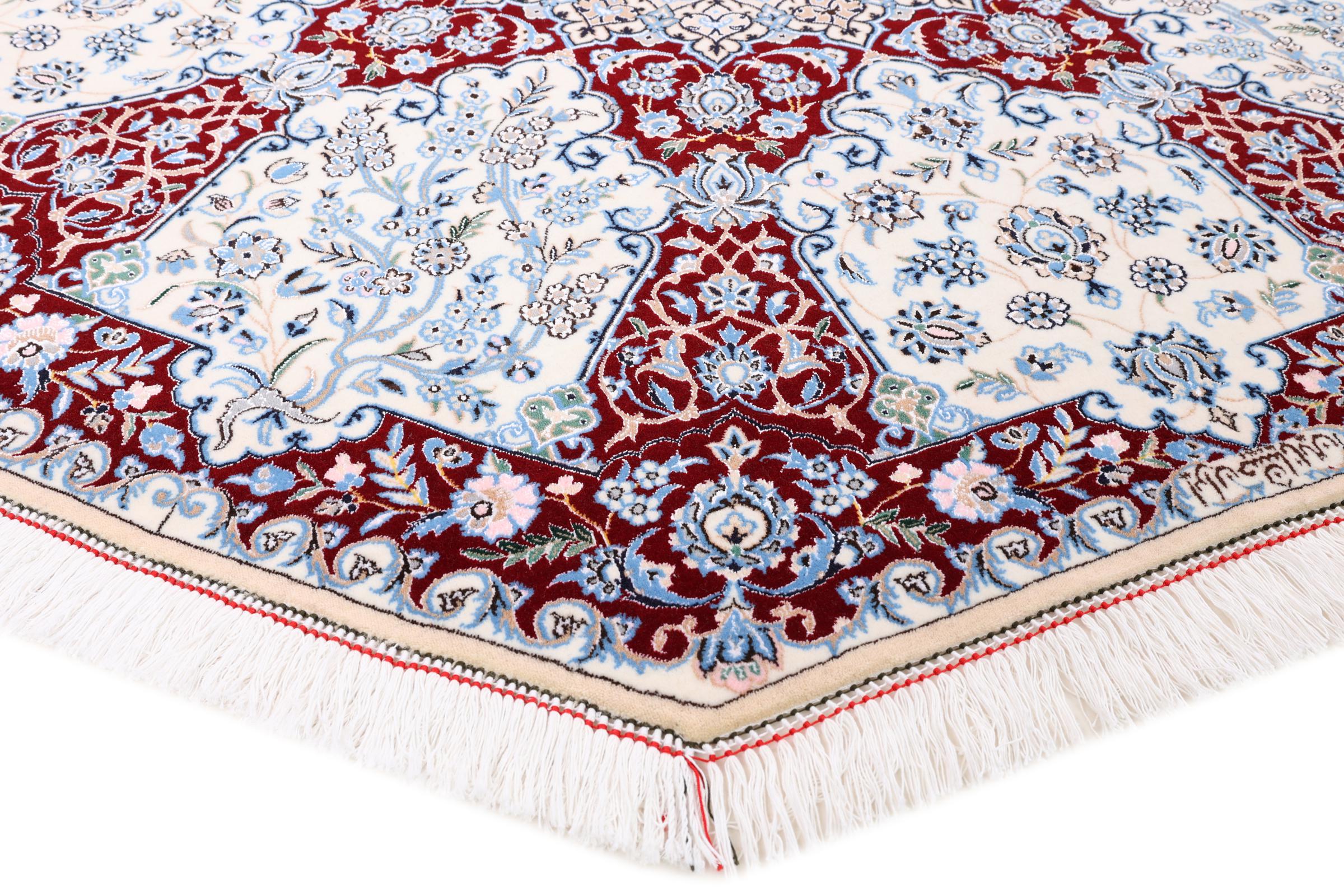 This Nain rug combines quality, tradition and an unmistakable design. It was hand-knotted from high-quality cork wool and natural silk in the desert town of the same name, Nain. Lovers of valuable rugs from Iran will love this Persian rug. With Nain rugs in the 6La and 4La classifications, you have a real work of art with an incredible level of detail that you can really lose yourself in. Nain 4La rugs are almost impossible to find today, as they are extremely elaborate to produce.