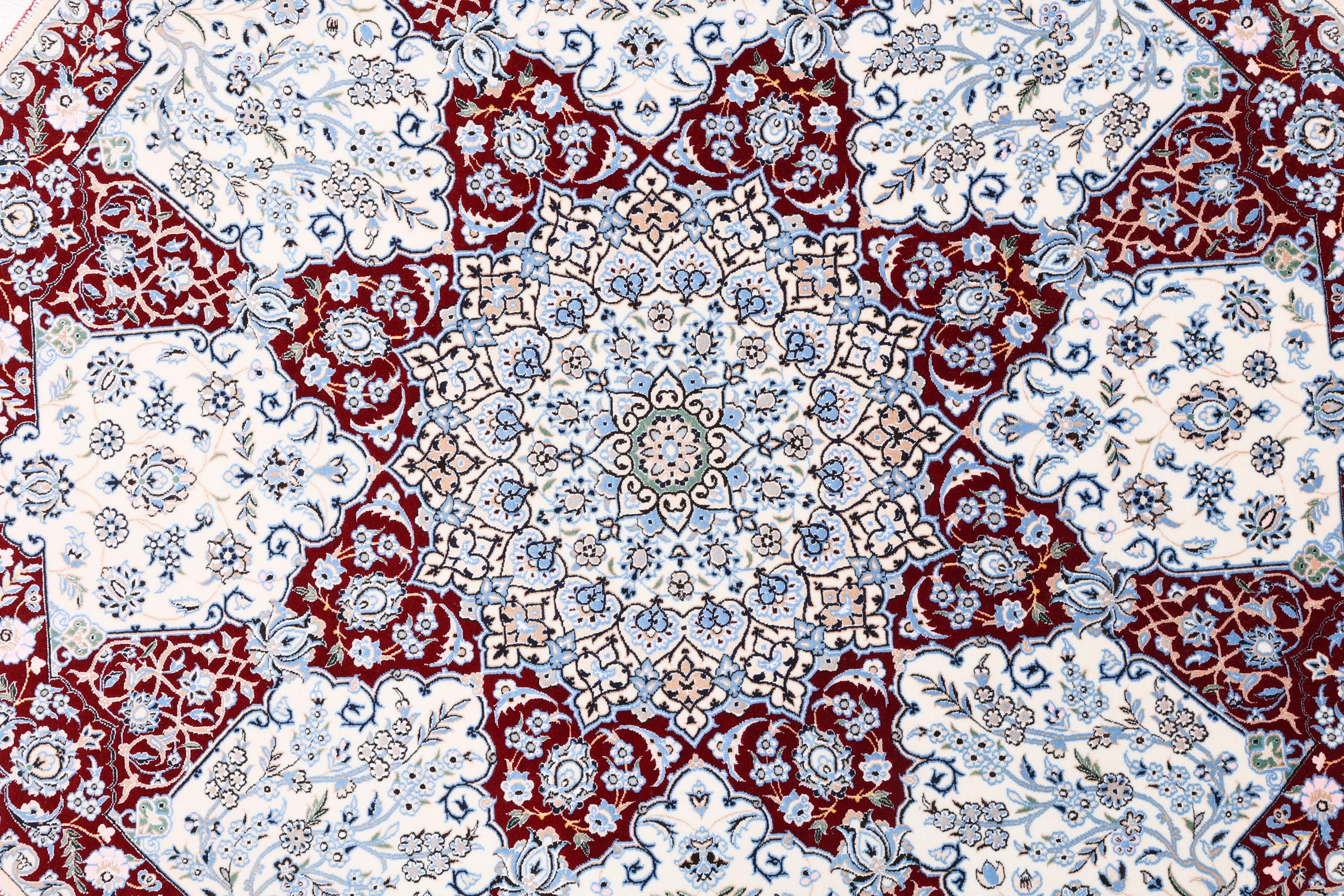 Rugs from the city of Nain, from the border of one of the largest deserts in Iran, are among the most famous Persian rugs in the world. Their typical design is characterized by floral ornaments, a medallion in the middle as well as beige and red or blue shades. Thanks to their designations 4La, 6La, 9La and 12La, the finenesses of a Nain rug can be seen at a glance. The lower the "La" number, the higher the knot density and thus the finer the rug.