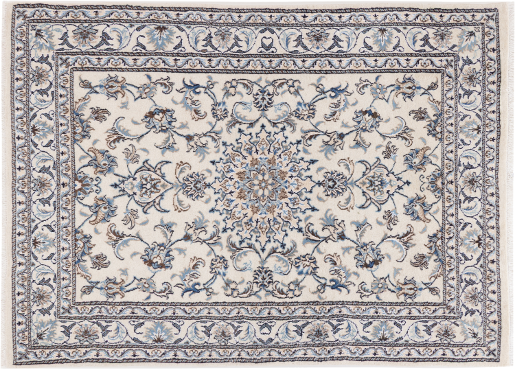 Rugs from the city of Nain, from the border of one of the largest deserts in Iran, are among the most famous Persian rugs in the world. Their typical design is characterized by floral ornaments, a medallion in the middle as well as beige and red or blue shades. Thanks to their designations 4La, 6La, 9La and 12La, the finenesses of a Nain rug can be seen at a glance. The lower the "La" number, the higher the knot density and thus the finer the rug.