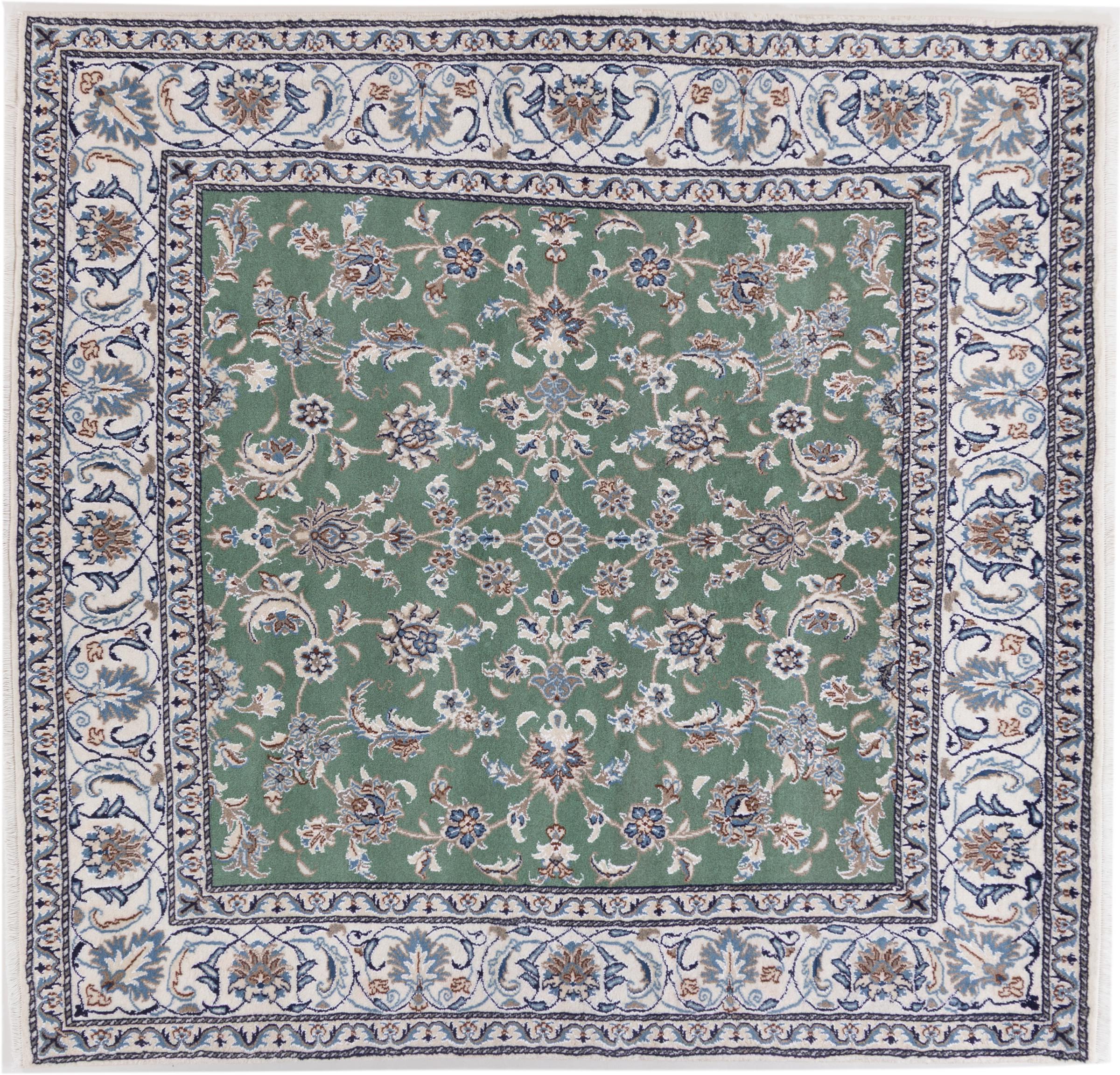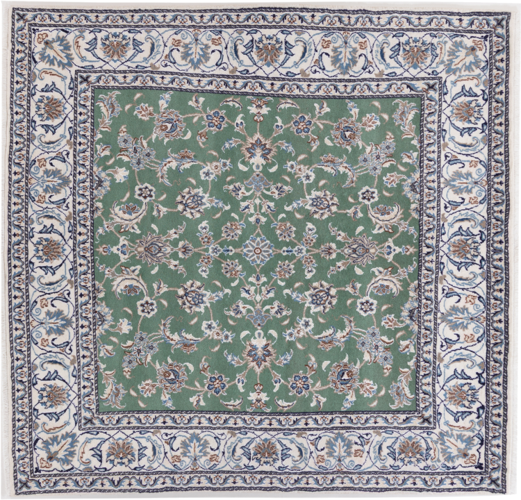 Carpet ID: 2939100021464 Size: 202x190 cm Thickness: ap. 12 mm Knot density: 200 000 - 250 000 / m² Manufacturing: Knotted by hand Pile: Wool with silk Warp: Cotton Origin: Persia Age: New Weight: ap. 13 kg In stock: Unique - Only 1 in stock