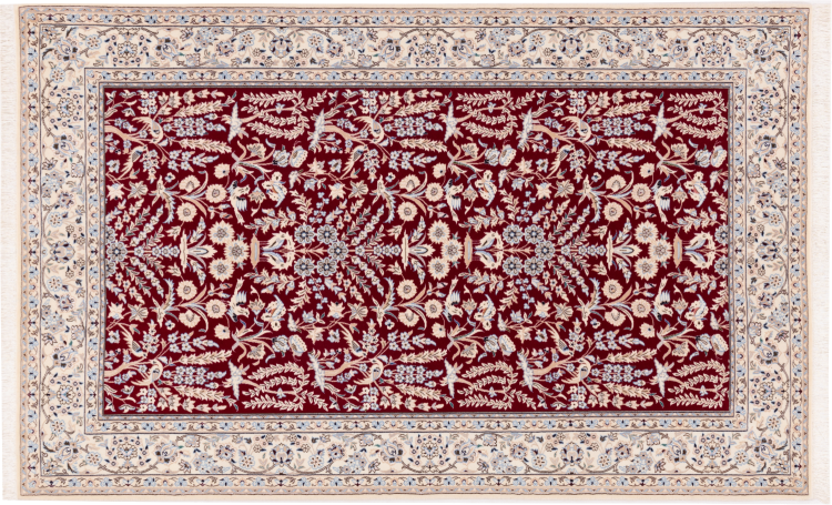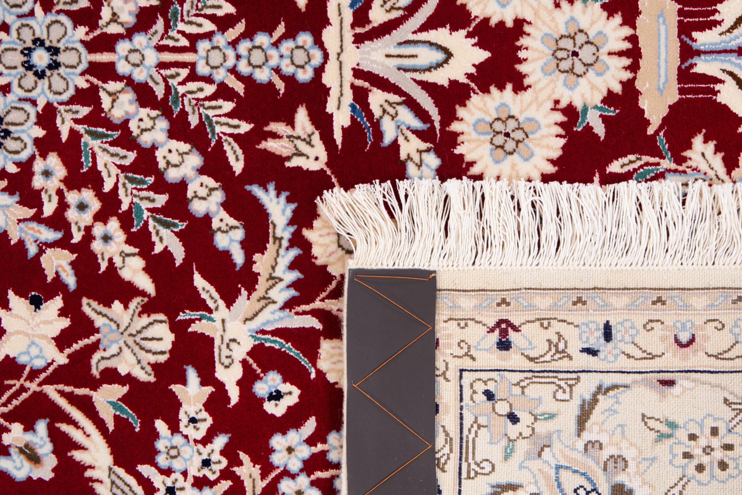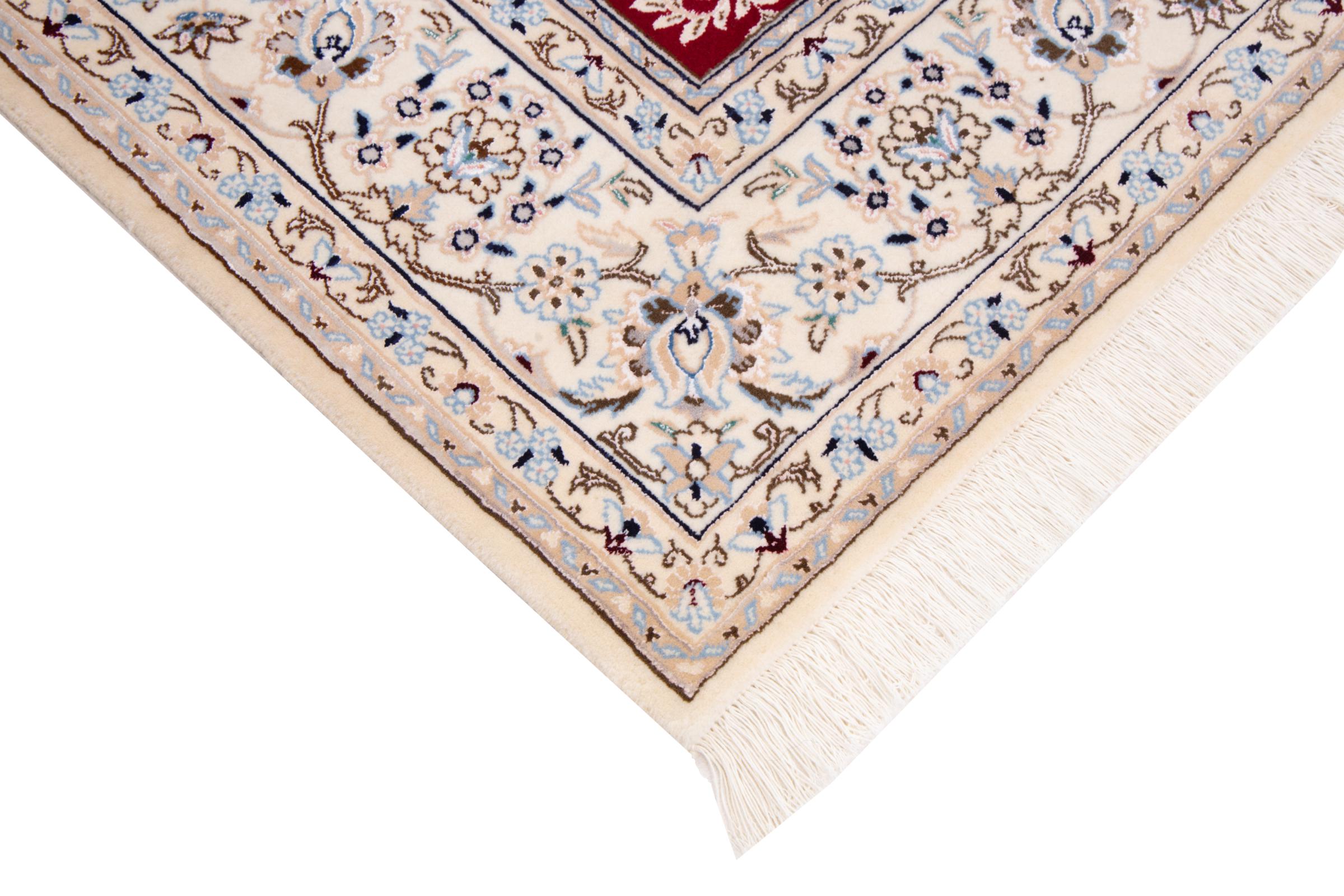 Rugs from the city of Nain, from the border of one of the largest deserts in Iran, are among the most famous Persian rugs in the world. Their typical design is characterized by floral ornaments, a medallion in the middle as well as beige and red or blue shades. Thanks to their designations 4La, 6La, 9La and 12La, the finenesses of a Nain rug can be seen at a glance. The lower the "La" number, the higher the knot density and thus the finer the rug.