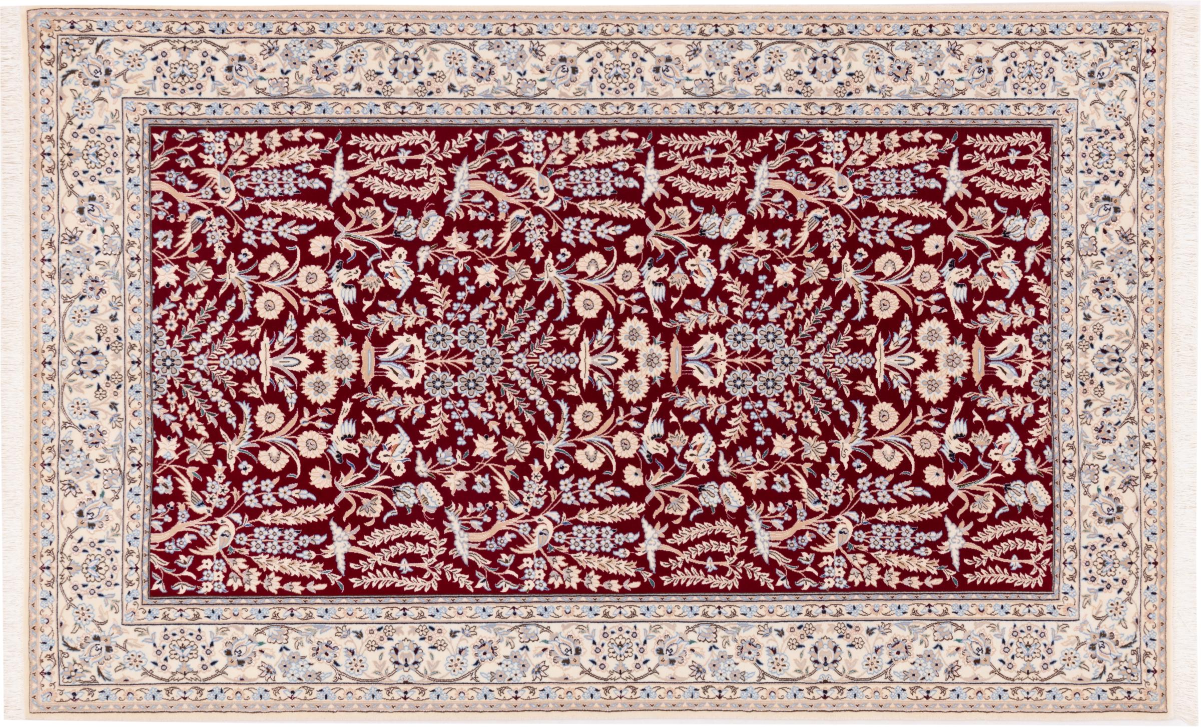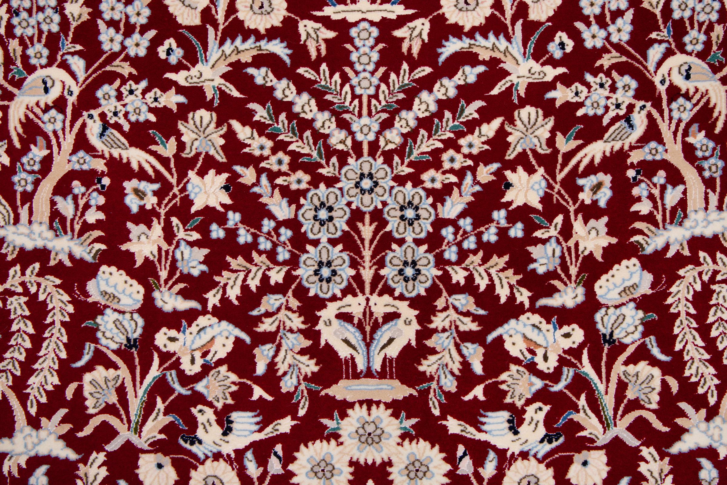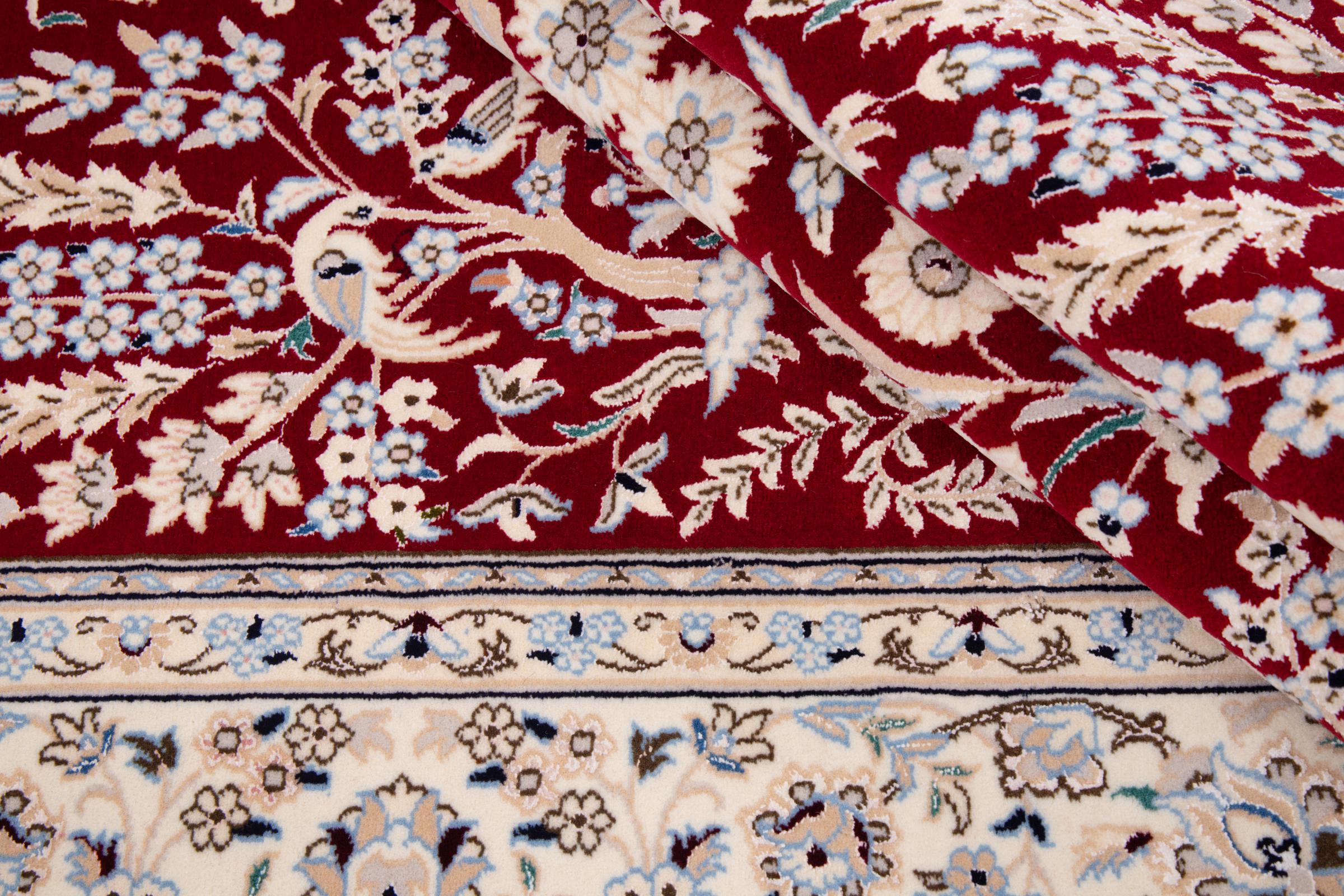 Rugs from the city of Nain, from the border of one of the largest deserts in Iran, are among the most famous Persian rugs in the world. Their typical design is characterized by floral ornaments, a medallion in the middle as well as beige and red or blue shades. Thanks to their designations 4La, 6La, 9La and 12La, the finenesses of a Nain rug can be seen at a glance. The lower the "La" number, the higher the knot density and thus the finer the rug.