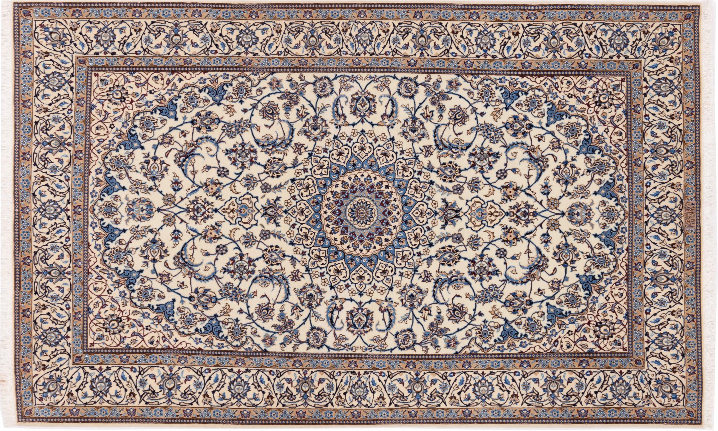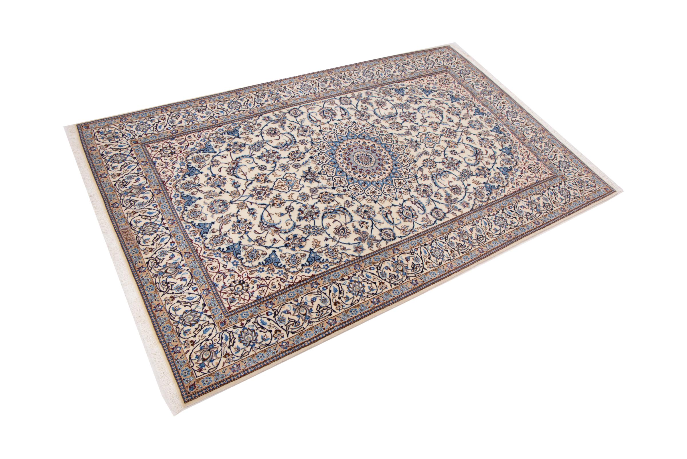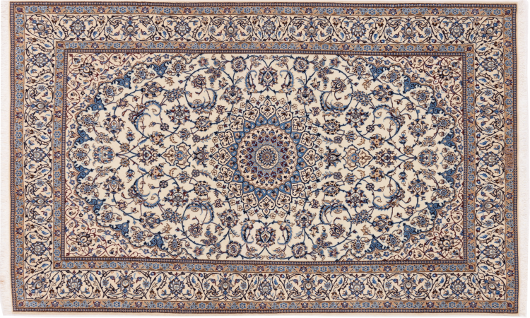 Rugs from the city of Nain, from the border of one of the largest deserts in Iran, are among the most famous Persian rugs in the world. Their typical design is characterized by floral ornaments, a medallion in the middle as well as beige and red or blue shades. Thanks to their designations 4La, 6La, 9La and 12La, the finenesses of a Nain rug can be seen at a glance. The lower the "La" number, the higher the knot density and thus the finer the rug.