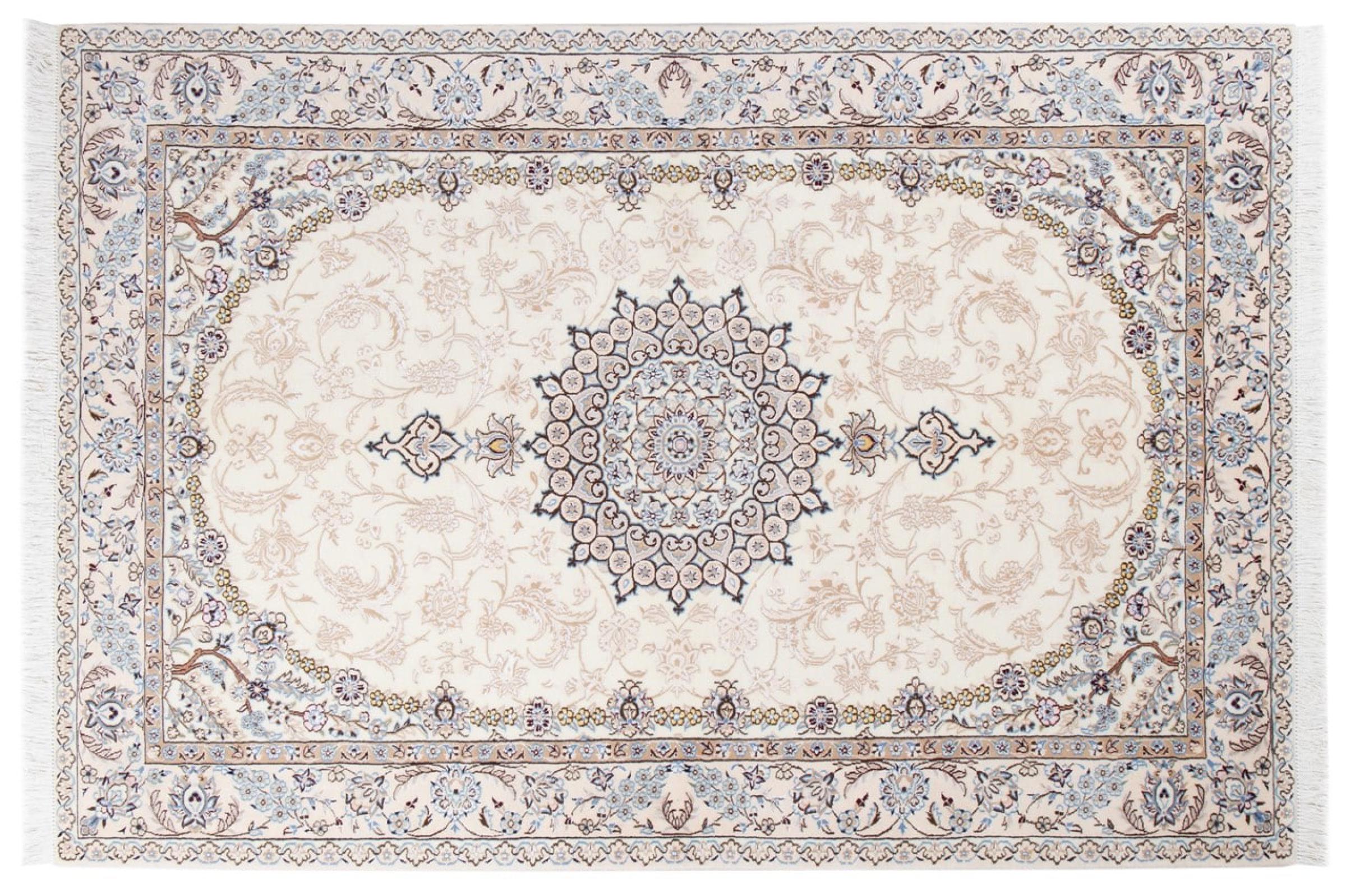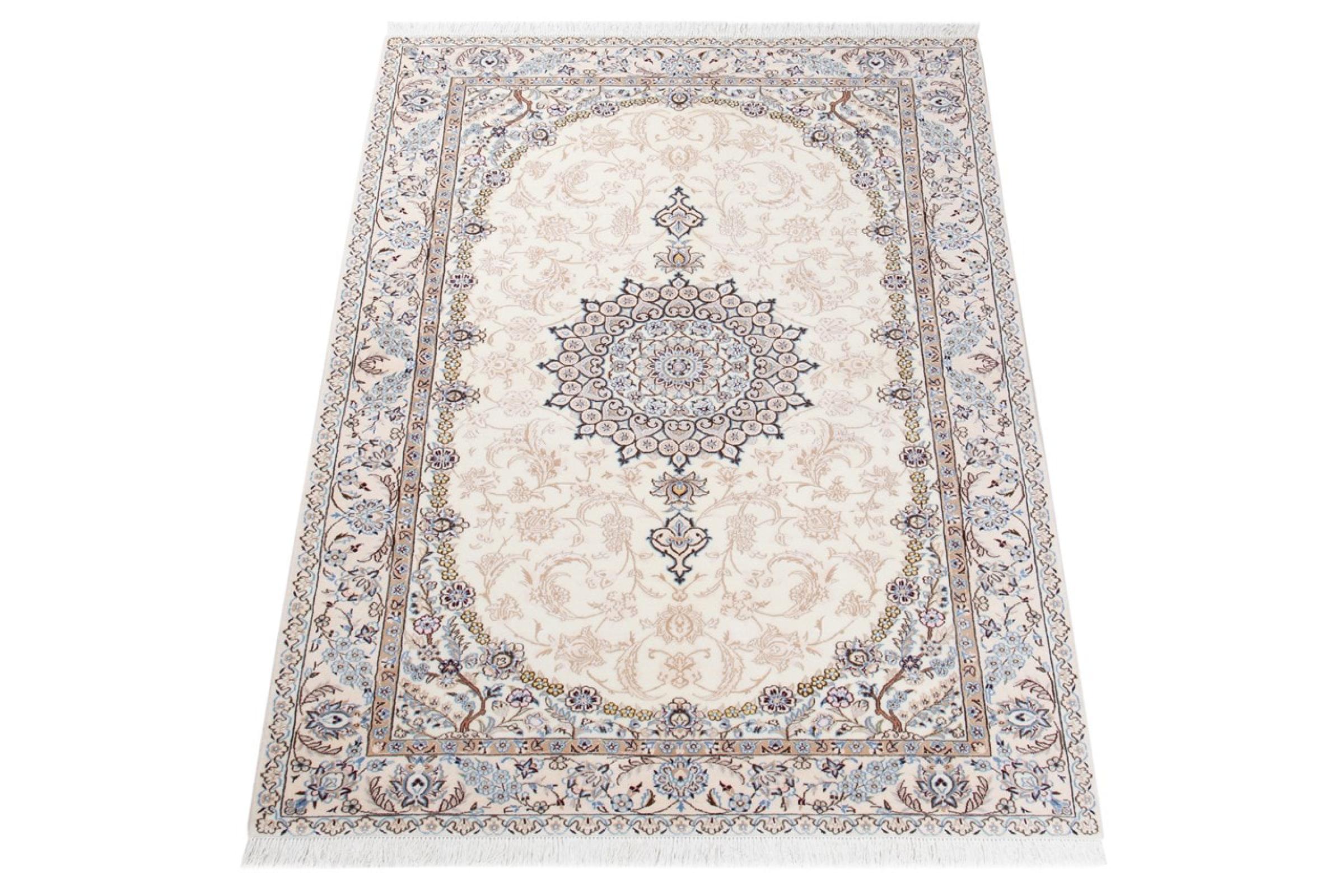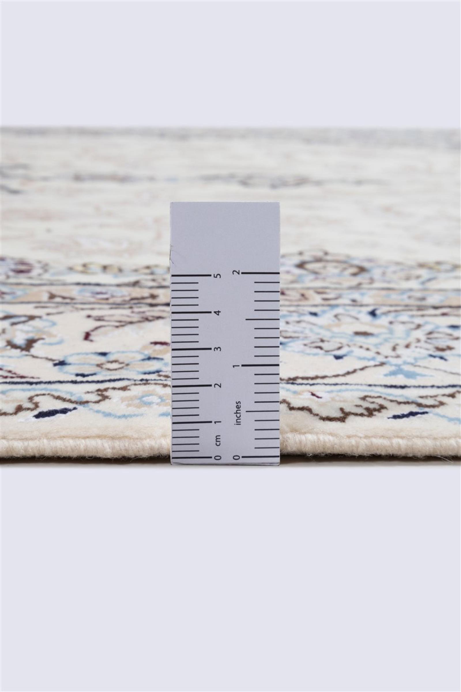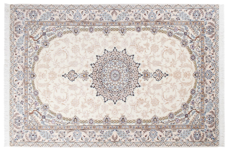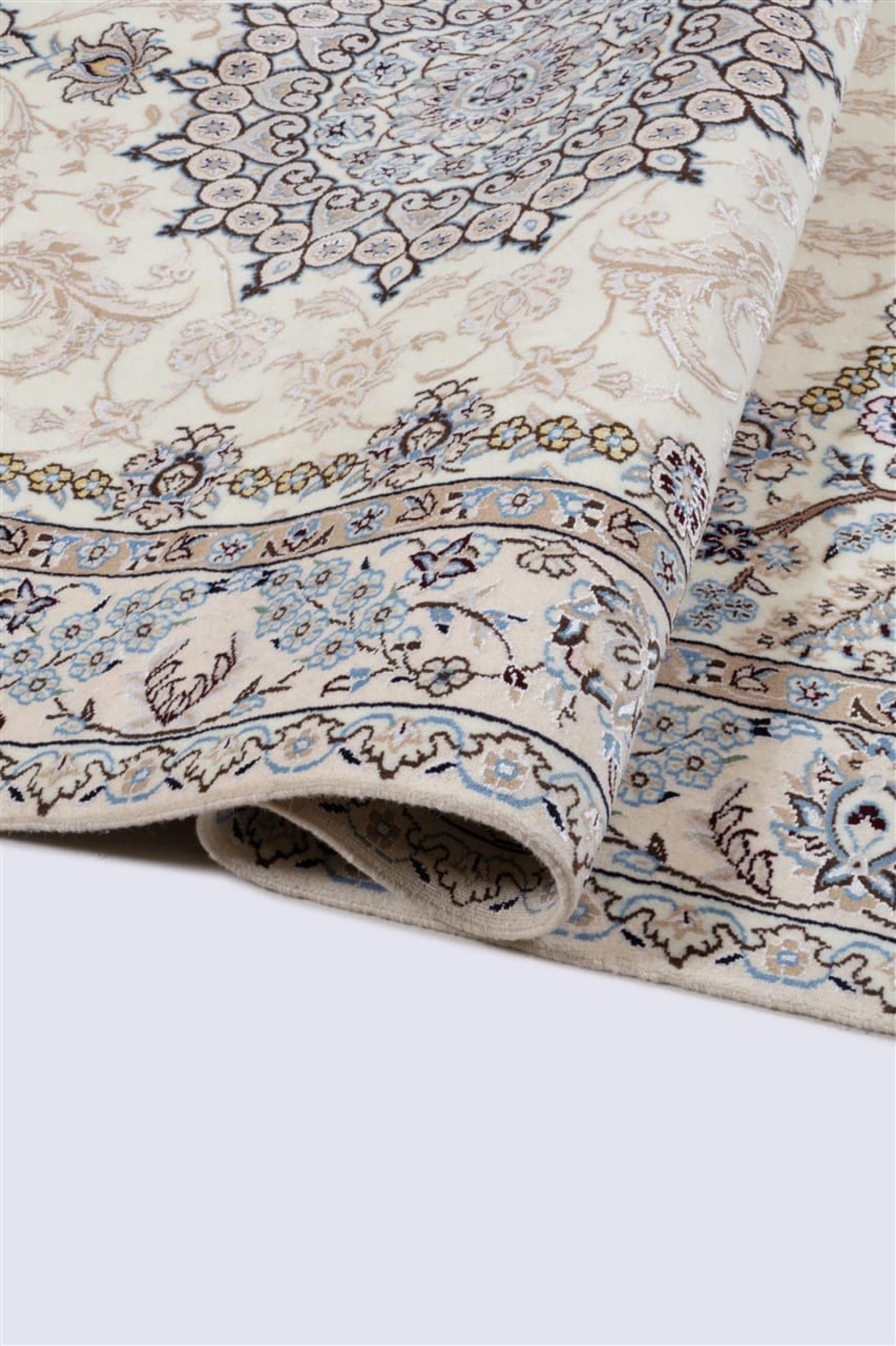 Rugs from the city of Nain, from the border of one of the largest deserts in Iran, are among the most famous Persian rugs in the world. Their typical design is characterized by floral ornaments, a medallion in the middle as well as beige and red or blue shades. Thanks to their designations 4La, 6La, 9La and 12La, the finenesses of a Nain rug can be seen at a glance. The lower the "La" number, the higher the knot density and thus the finer the rug.