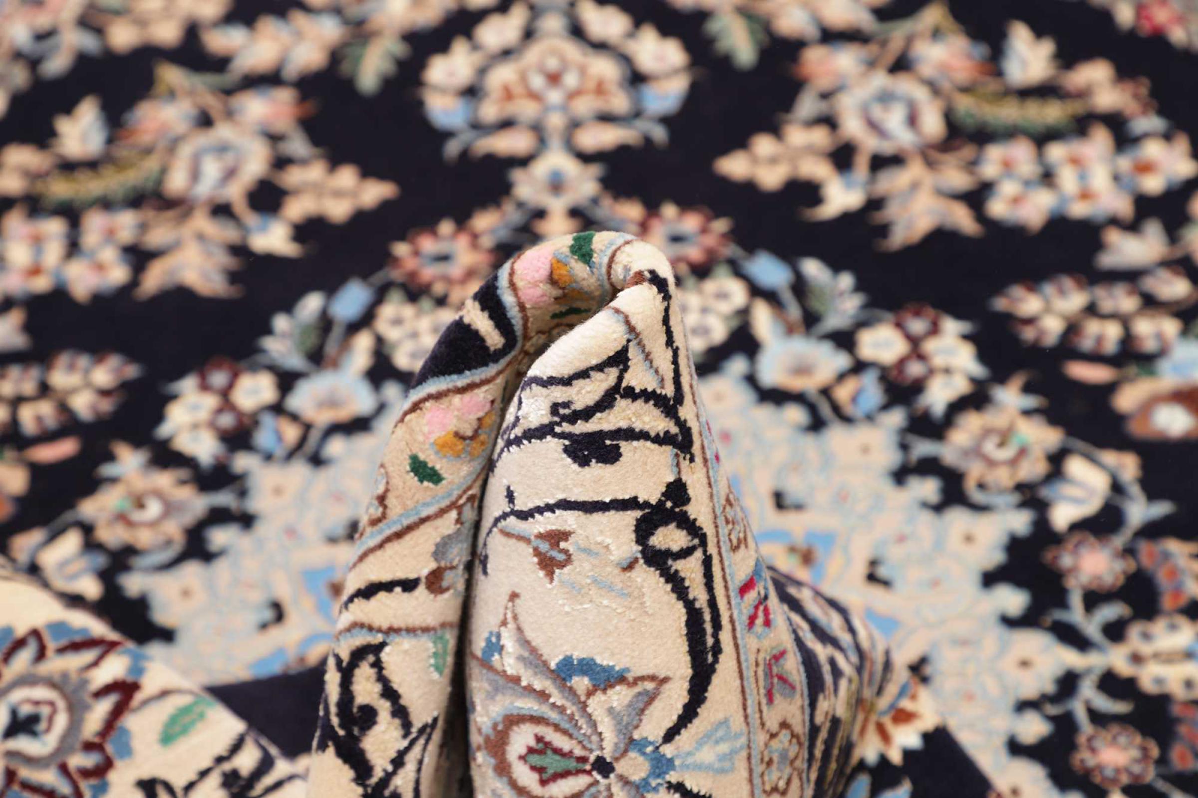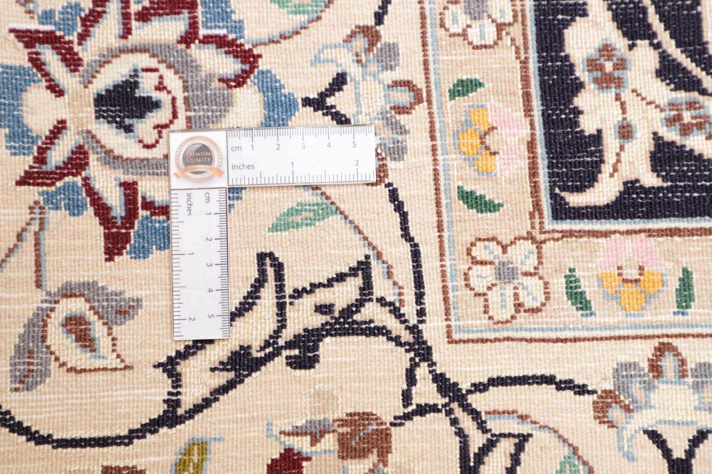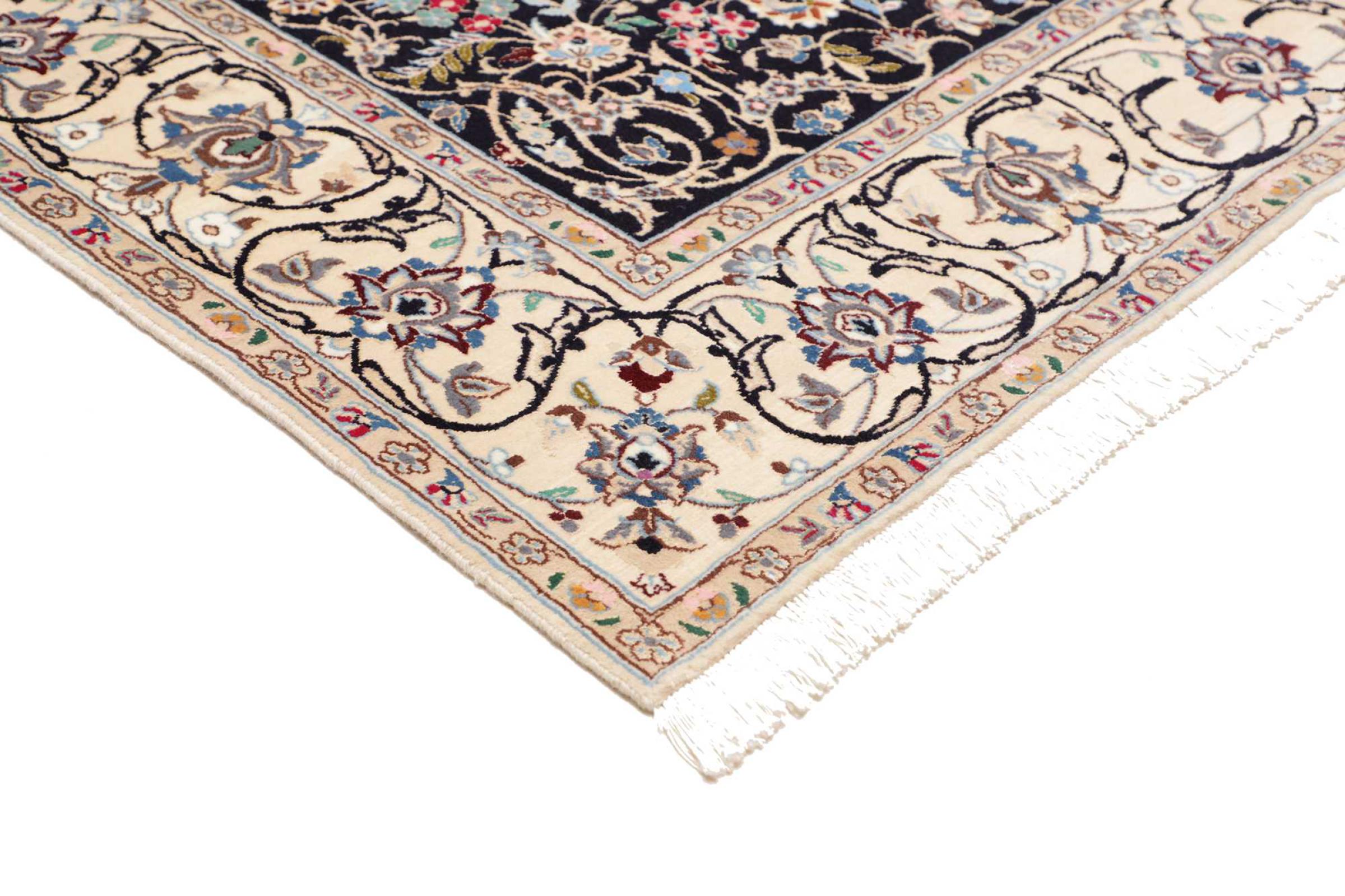 This Nain rug is classified as 9La. The excellent quality, the beautiful oriental design with its curvilinear patterns will delight every buyer. This Persian rug was hand-knotted in the city of Nain, which lies on the western edge of the Dasht-e-Kavir desert, from high-quality wool and natural silk. 9La Nain rugs are significantly finer than a 12La and already show beautiful details.