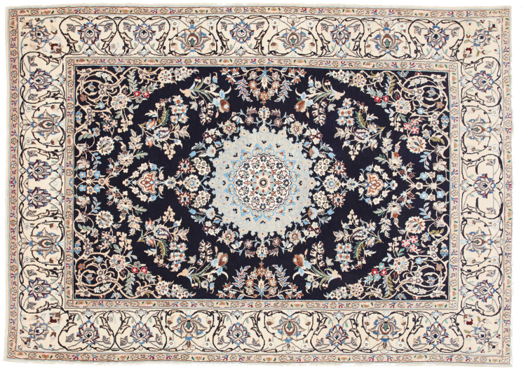 Rugs from the city of Nain, from the border of one of the largest deserts in Iran, are among the most famous Persian rugs in the world. Their typical design is characterized by floral ornaments, a medallion in the middle as well as beige and red or blue shades. Thanks to their designations 4La, 6La, 9La and 12La, the finenesses of a Nain rug can be seen at a glance. The lower the "La" number, the higher the knot density and thus the finer the rug.
