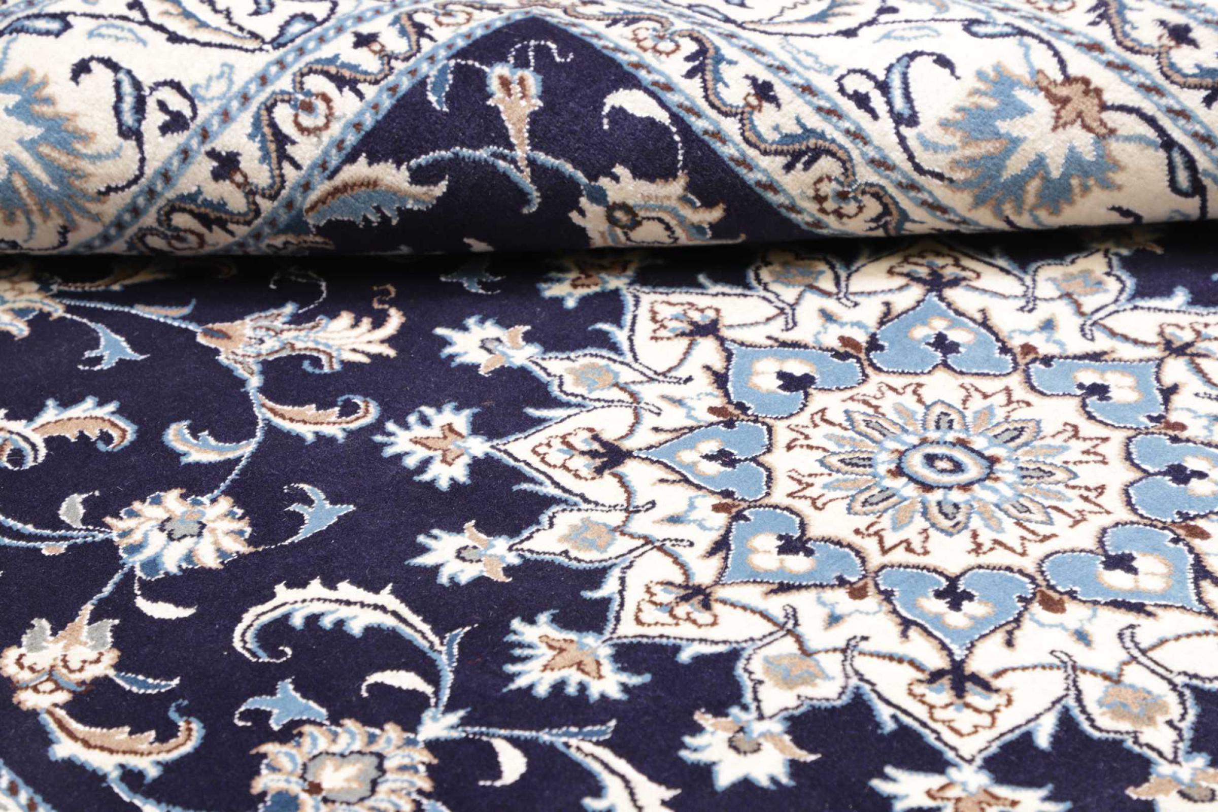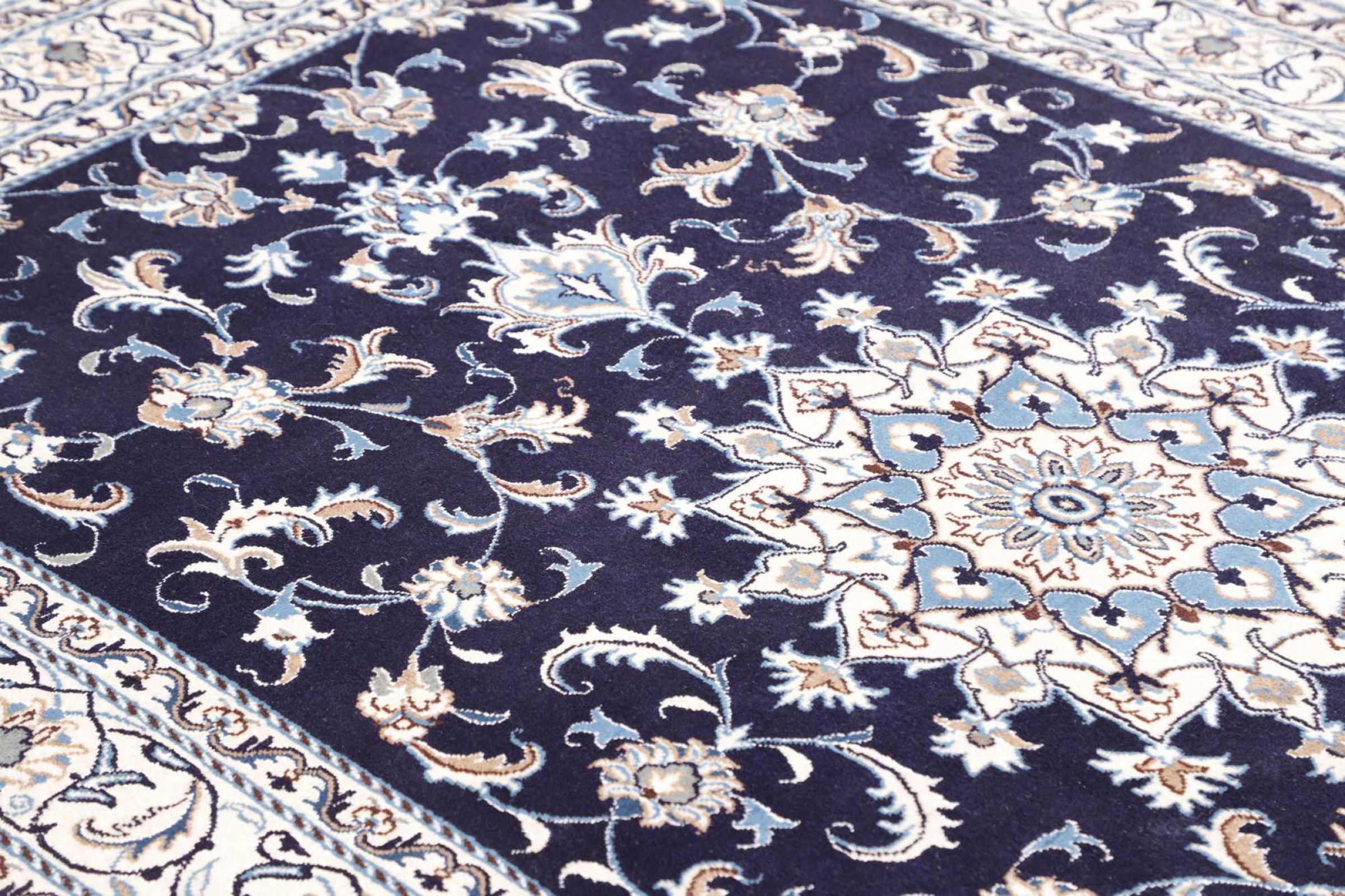 Rugs from the city of Nain, from the border of one of the largest deserts in Iran, are among the most famous Persian rugs in the world. Their typical design is characterized by floral ornaments, a medallion in the middle as well as beige and red or blue shades. Thanks to their designations 4La, 6La, 9La and 12La, the finenesses of a Nain rug can be seen at a glance. The lower the "La" number, the higher the knot density and thus the finer the rug.
