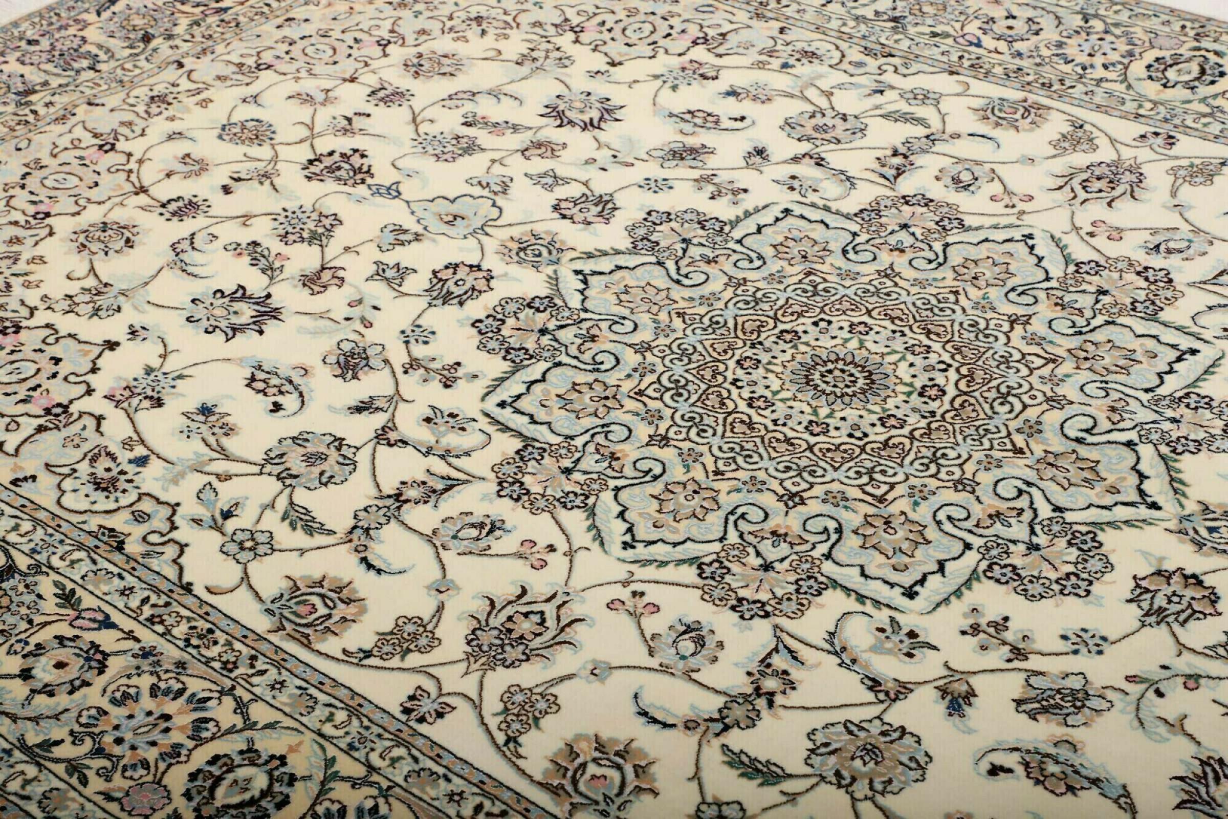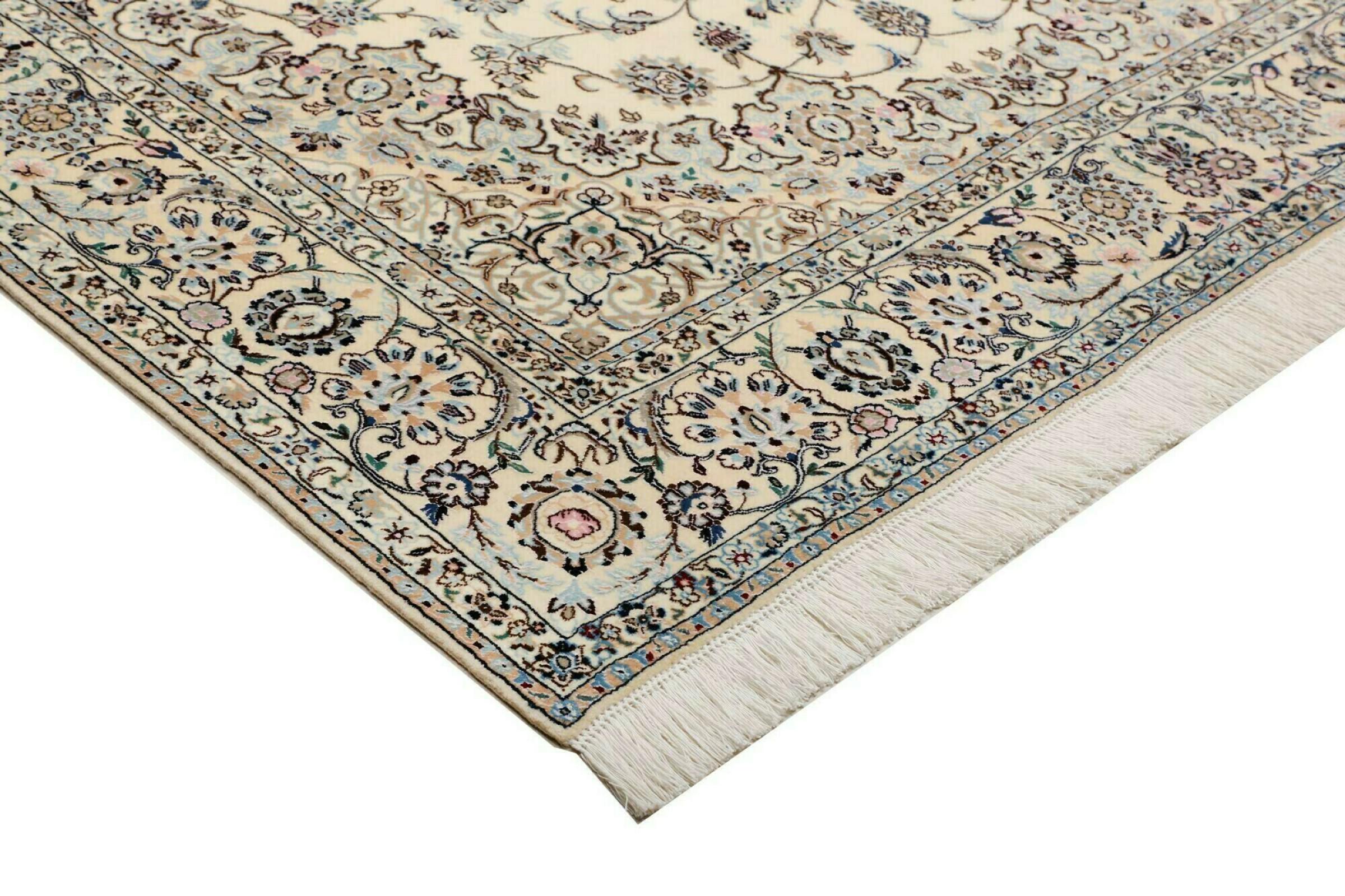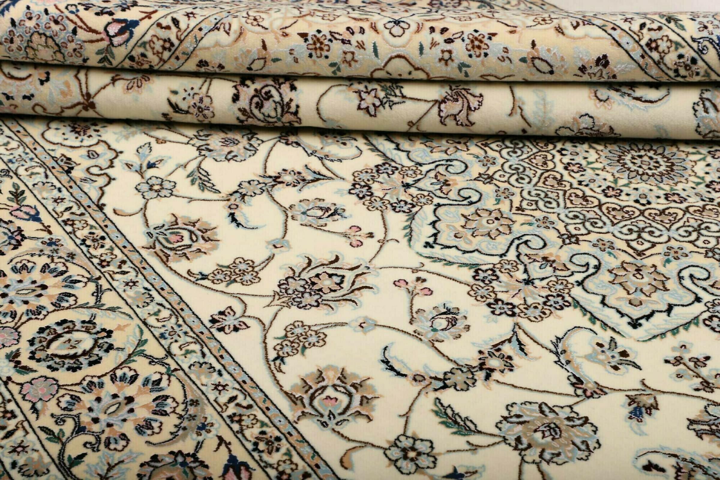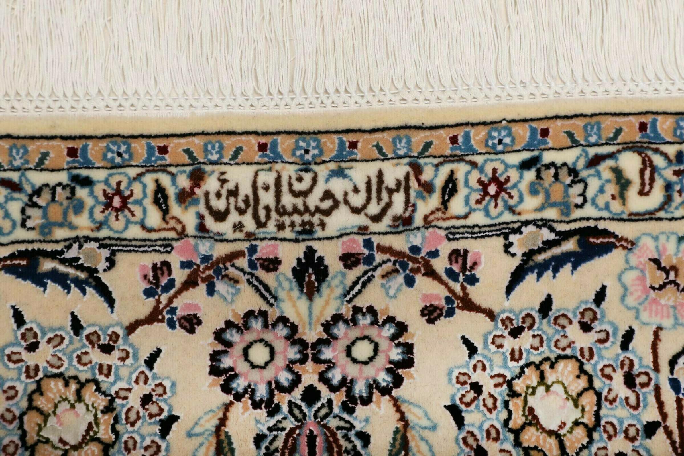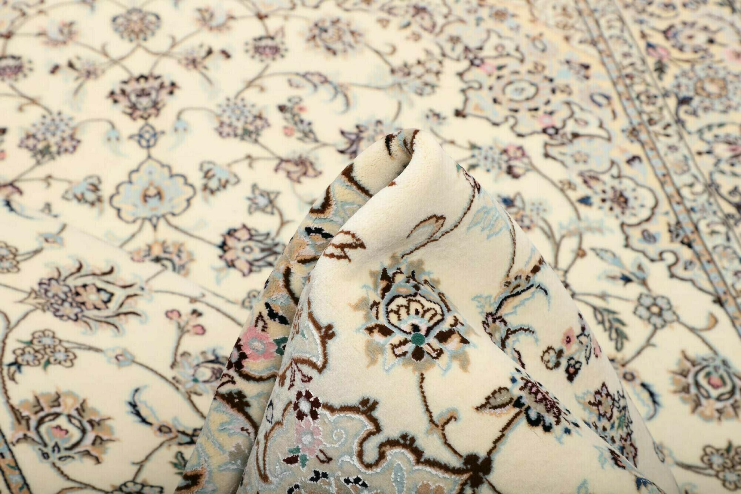This Nain rug combines quality, tradition and an unmistakable design. It was hand-knotted from high-quality cork wool and natural silk in the desert town of the same name, Nain. Lovers of valuable rugs from Iran will love this Persian rug. With