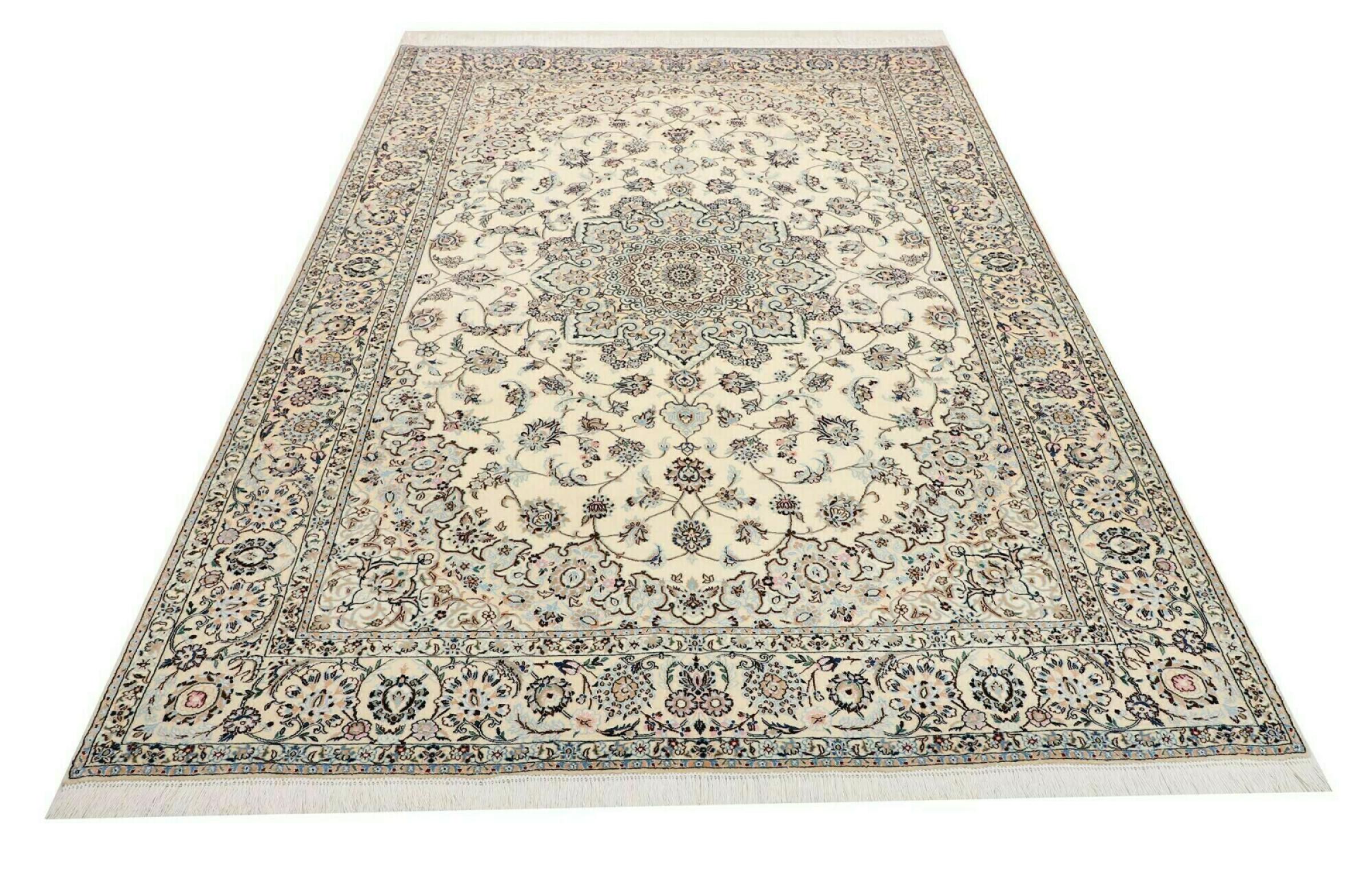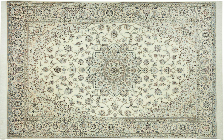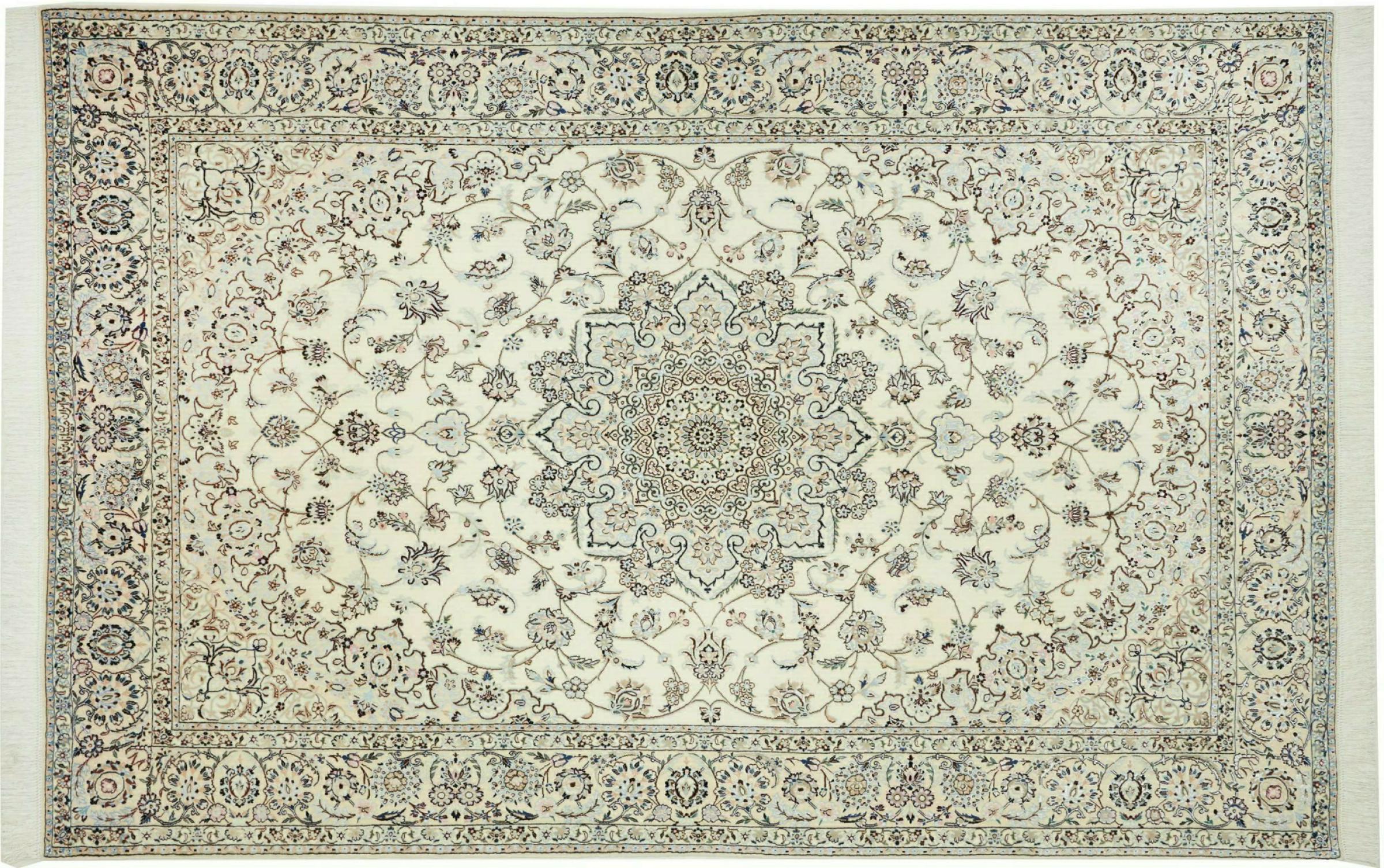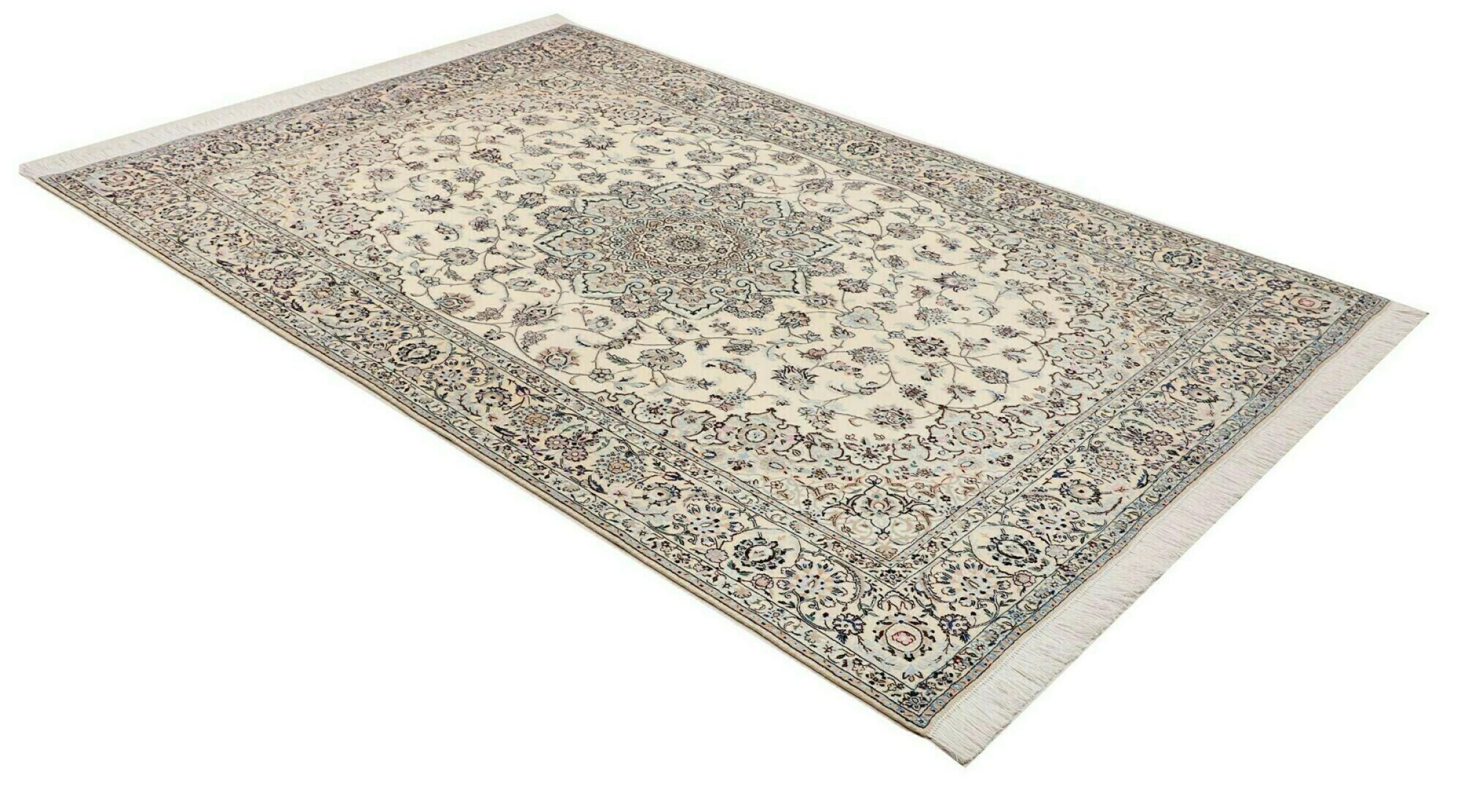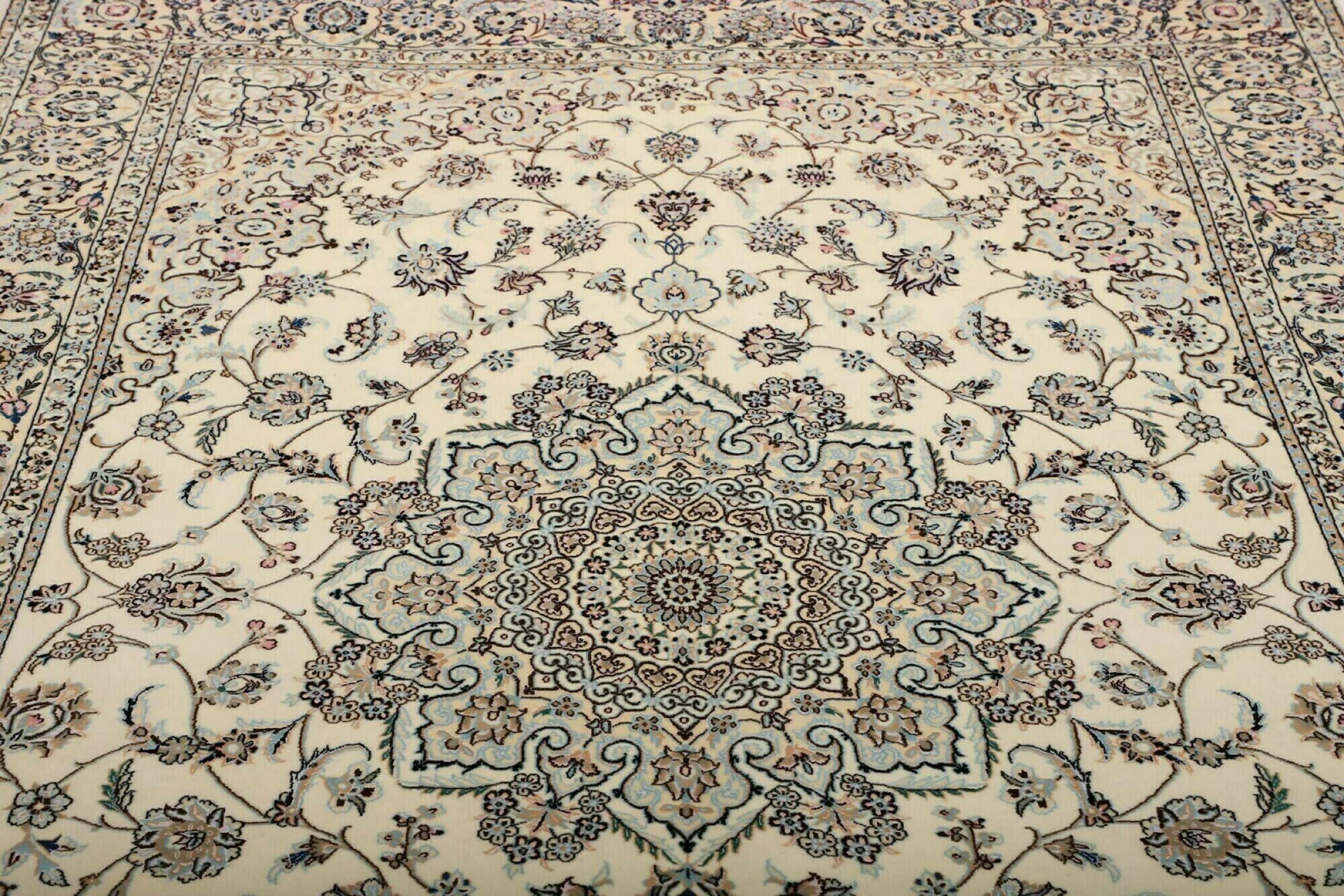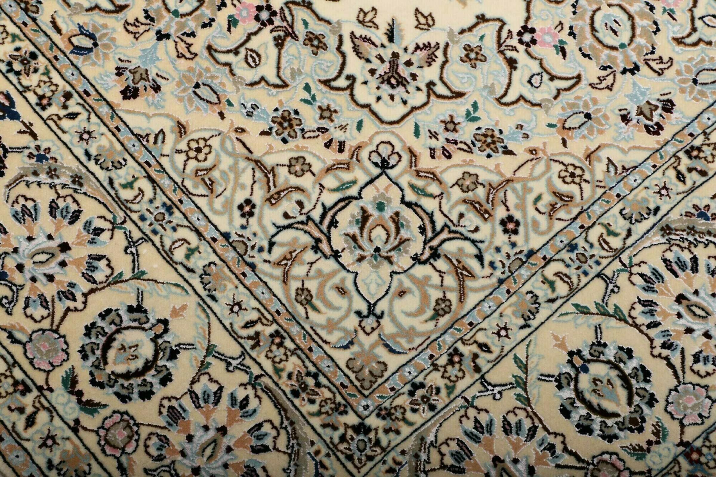 This Nain rug combines quality, tradition and an unmistakable design. It was hand-knotted from high-quality cork wool and natural silk in the desert town of the same name, Nain. Lovers of valuable rugs from Iran will love this Persian rug. With