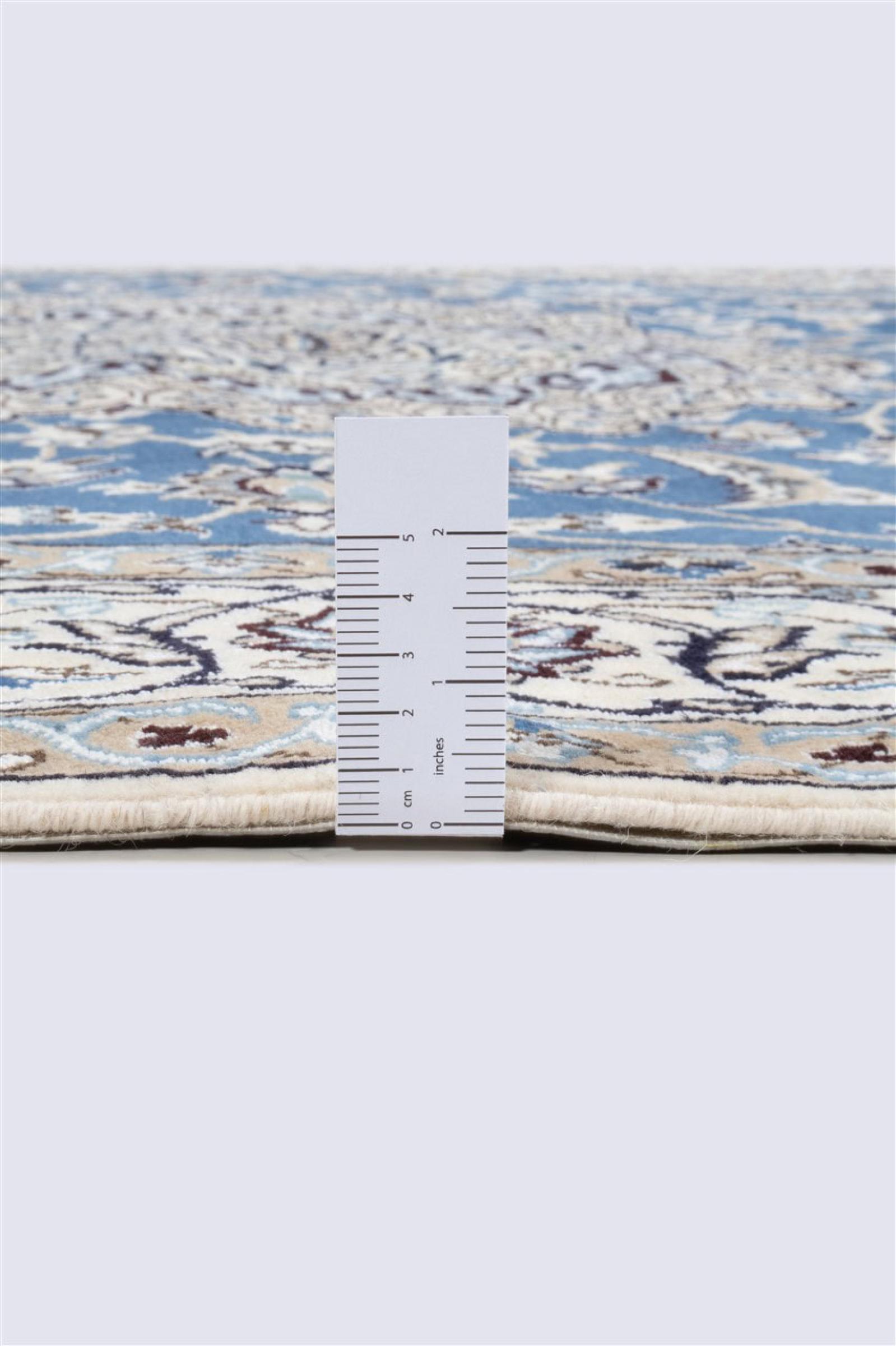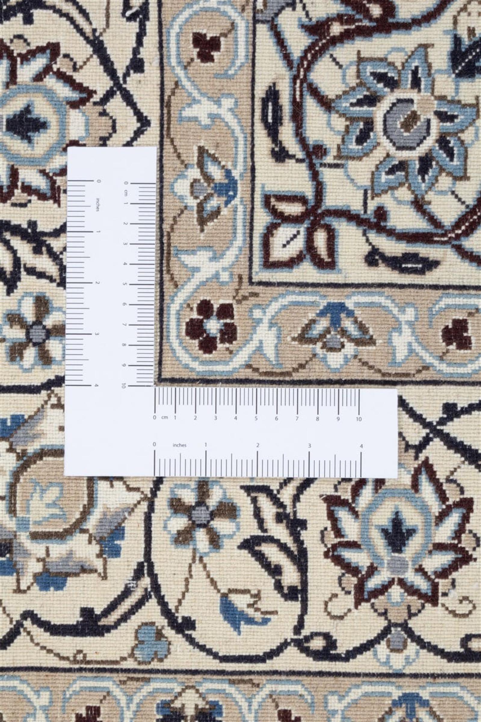 This Nain rug is classified as 9La. The excellent quality, the beautiful oriental design with its curvilinear patterns will delight every buyer. This Persian rug was hand-knotted in the city of Nain, which lies on the western edge of the Dasht-e-Kavir desert, from high-quality wool and natural silk. 9La Nain rugs are significantly finer than a 12La and already show beautiful details.