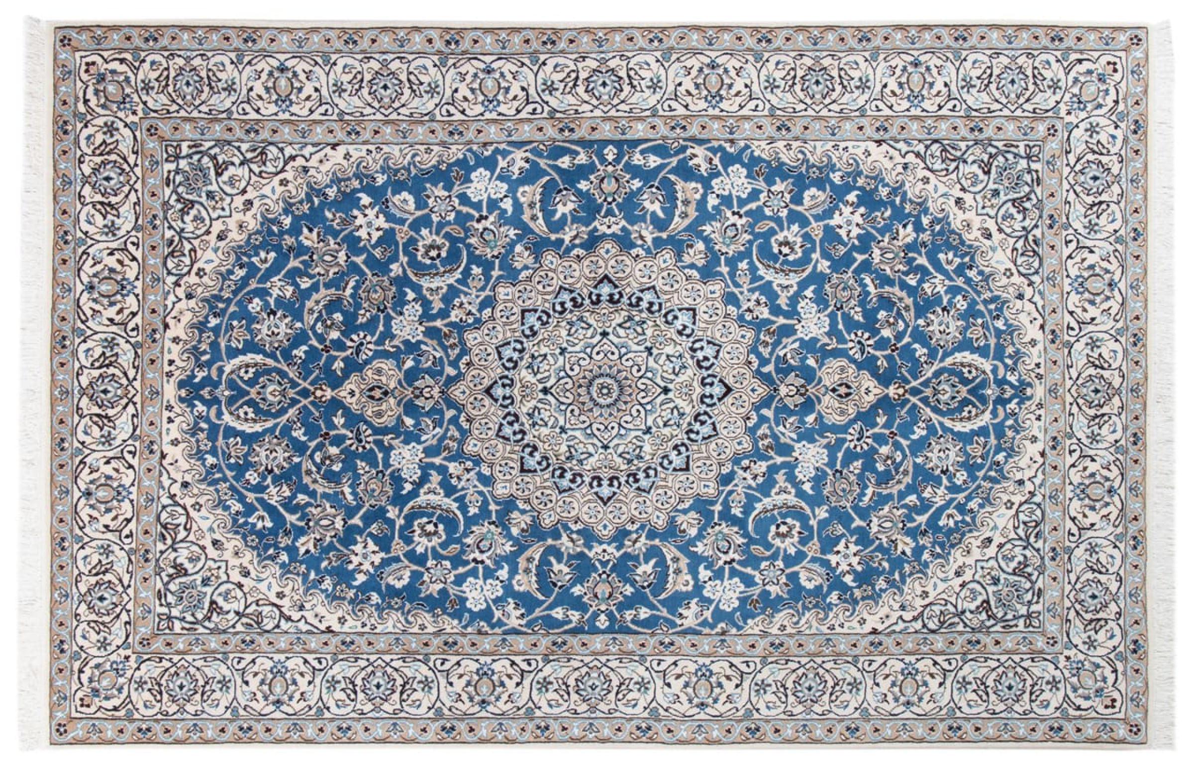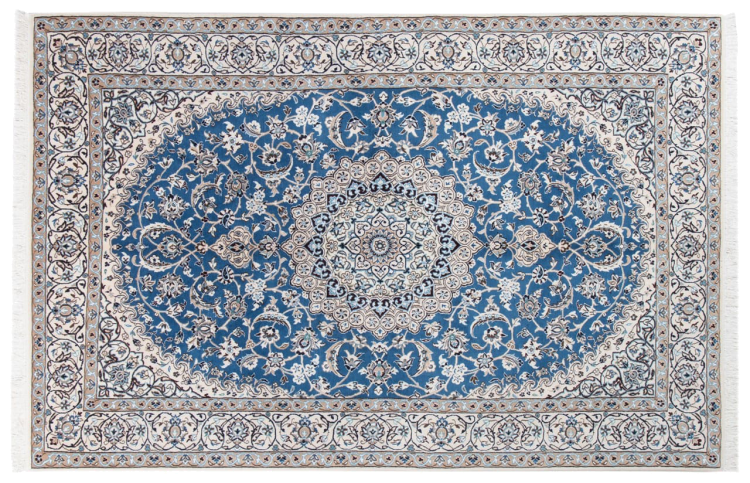 Rugs from the city of Nain, from the border of one of the largest deserts in Iran, are among the most famous Persian rugs in the world. Their typical design is characterized by floral ornaments, a medallion in the middle as well as beige and red or blue shades. Thanks to their designations 4La, 6La, 9La and 12La, the finenesses of a Nain rug can be seen at a glance. The lower the "La" number, the higher the knot density and thus the finer the rug.