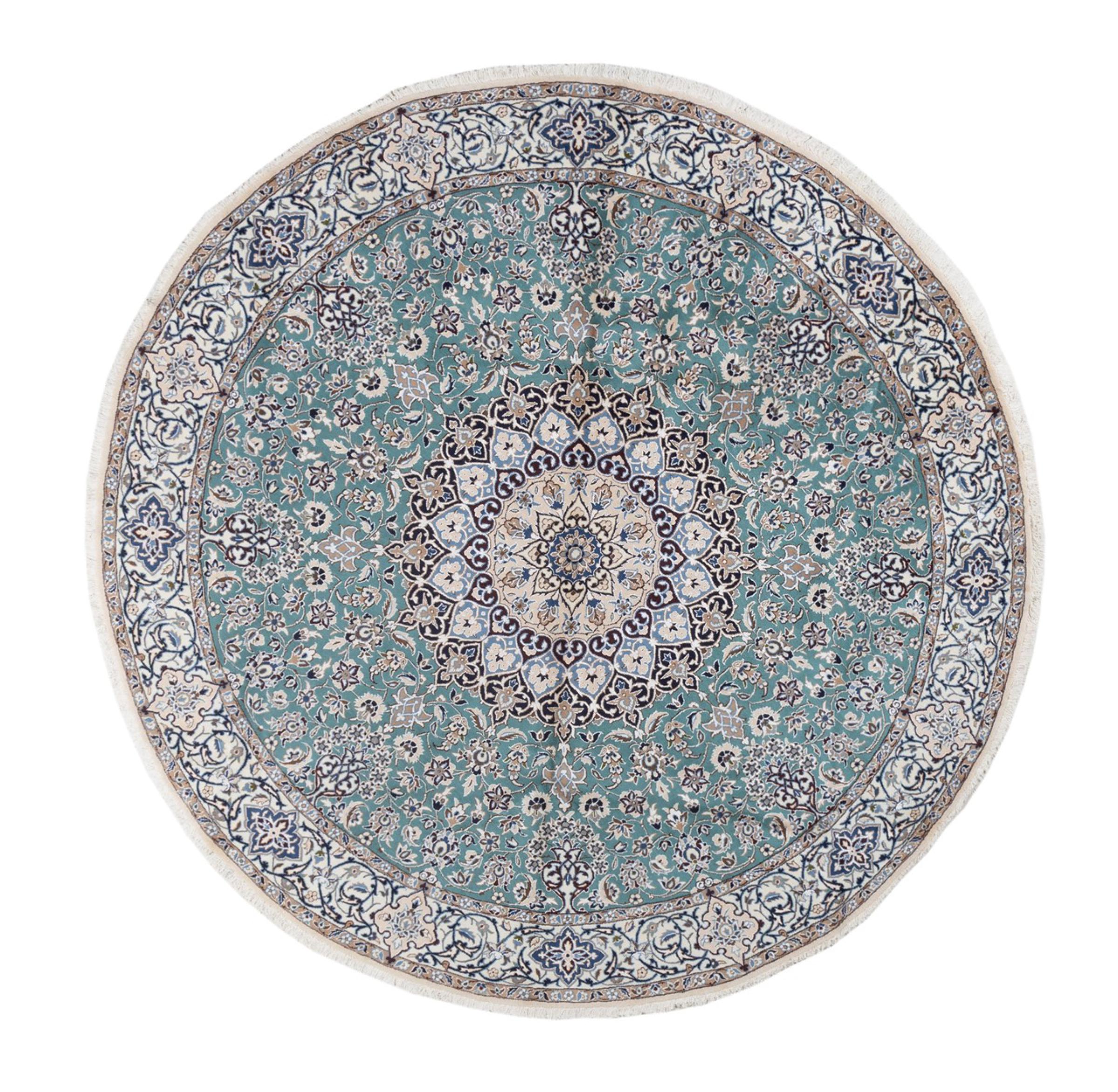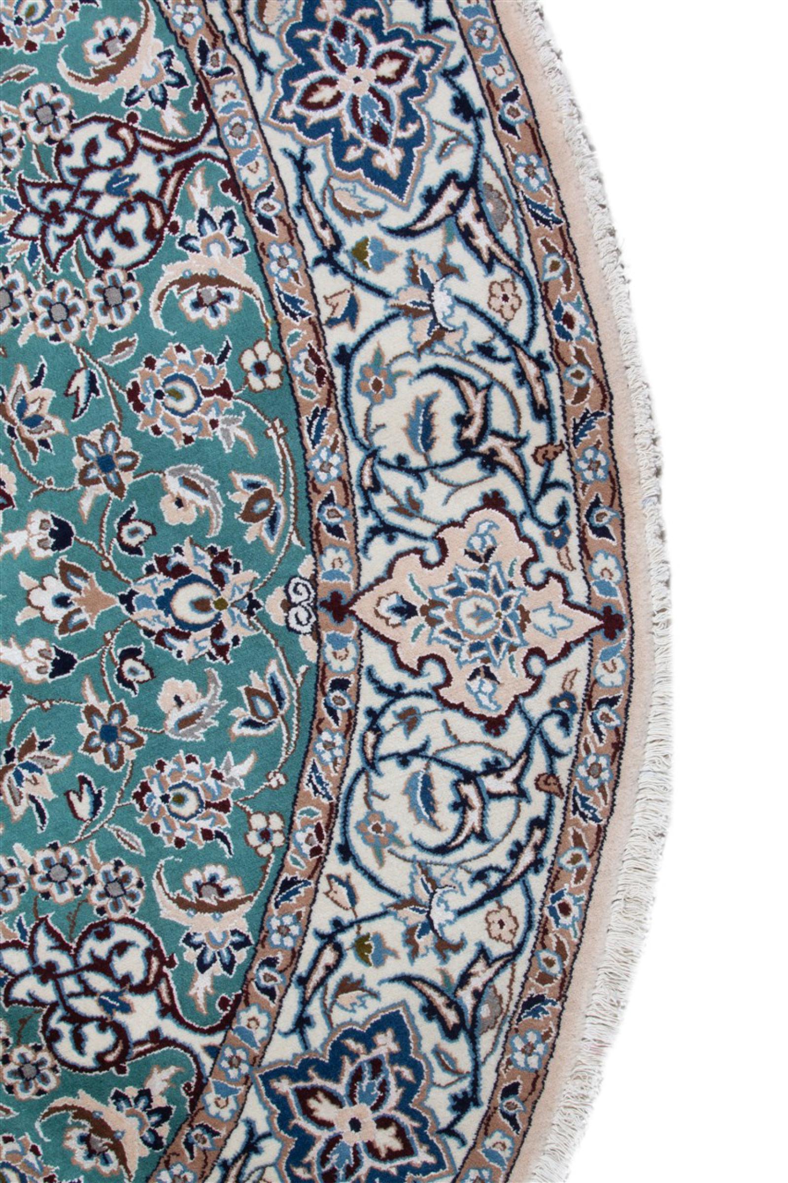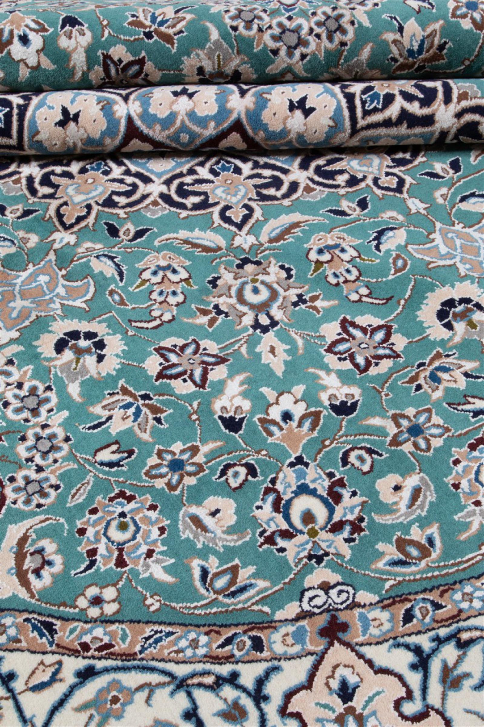 This Nain rug is classified as 9La. The excellent quality, the beautiful oriental design with its curvilinear patterns will delight every buyer. This Persian rug was hand-knotted in the city of Nain, which lies on the western edge of the Dasht-e-Kavir desert, from high-quality wool and natural silk. 9La Nain rugs are significantly finer than a 12La and already show beautiful details.