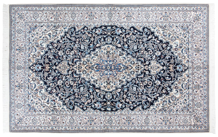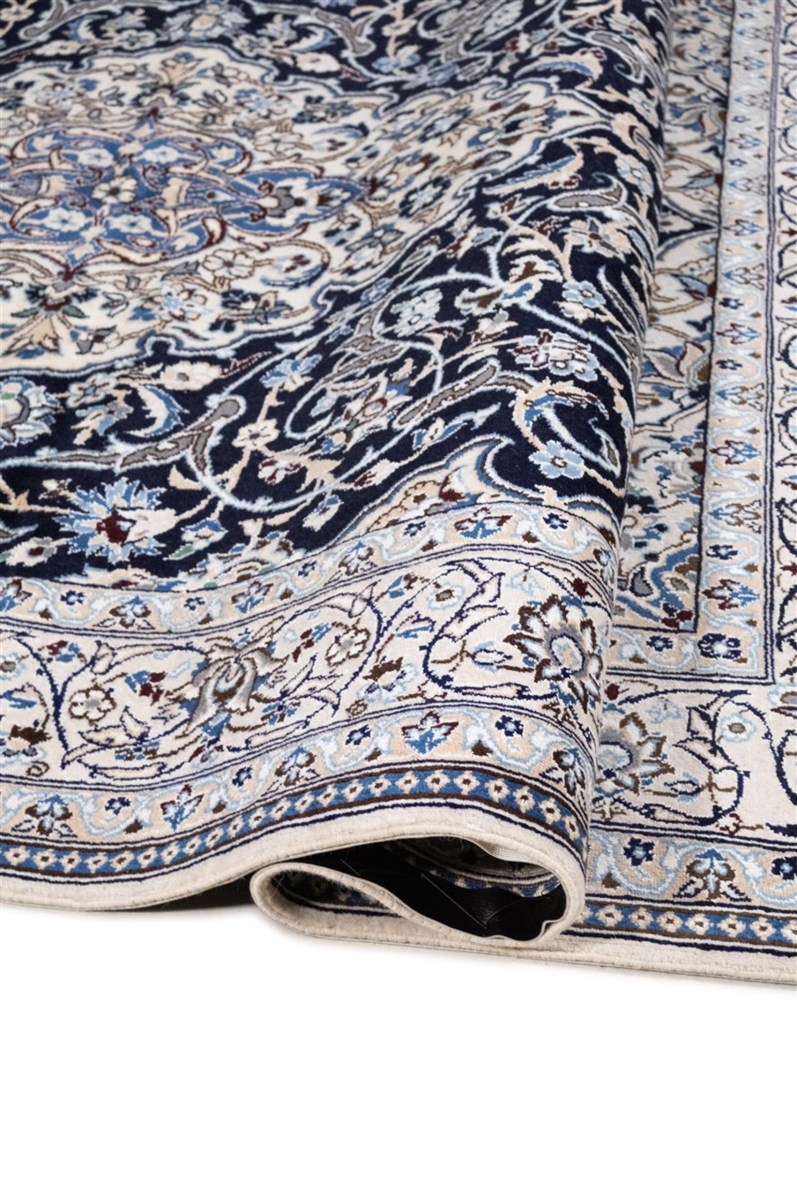 Rugs from the city of Nain, from the border of one of the largest deserts in Iran, are among the most famous Persian rugs in the world. Their typical design is characterized by floral ornaments, a medallion in the middle as well as beige and red or blue shades. Thanks to their designations 4La, 6La, 9La and 12La, the finenesses of a Nain rug can be seen at a glance. The lower the "La" number, the higher the knot density and thus the finer the rug.