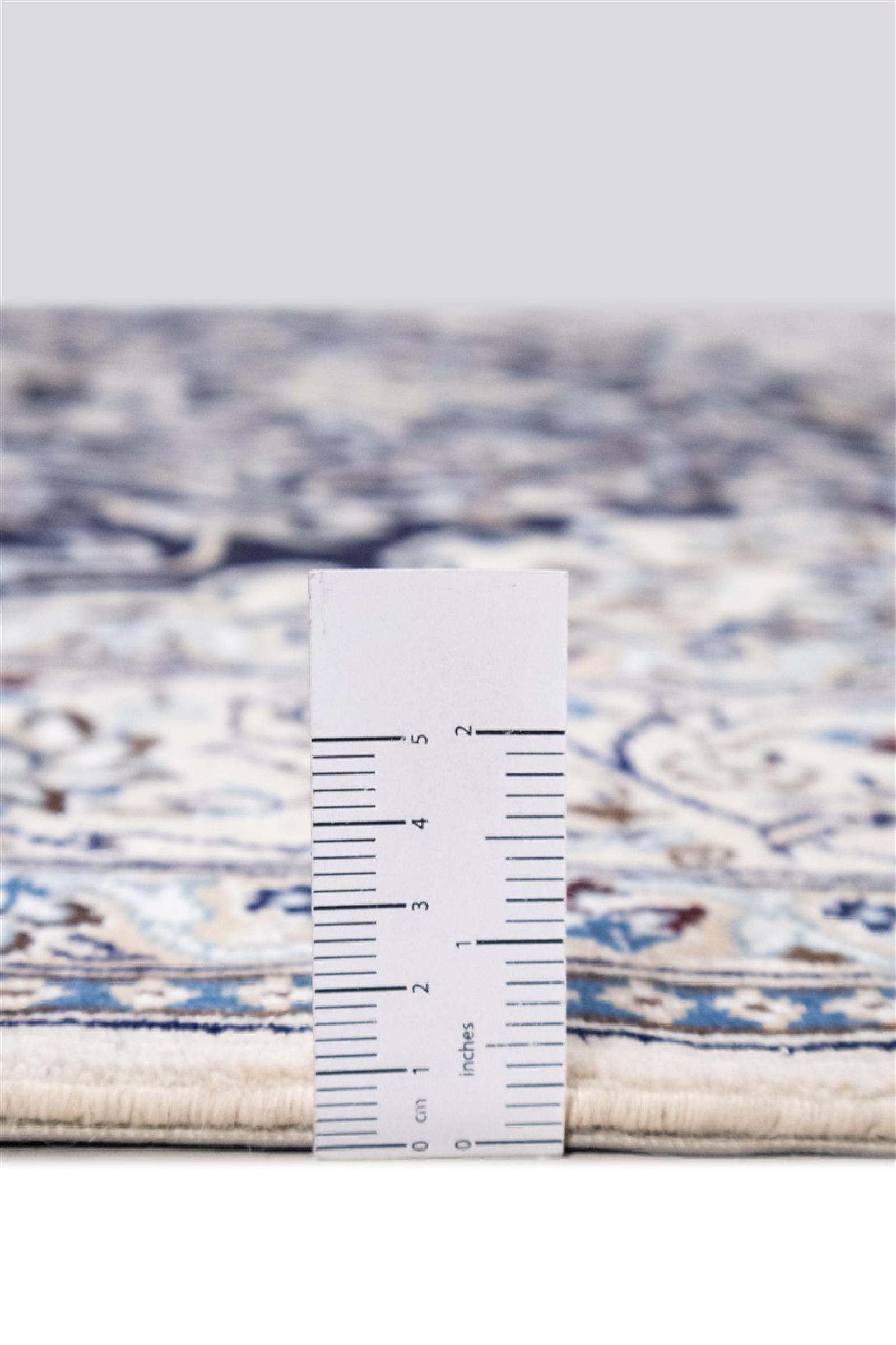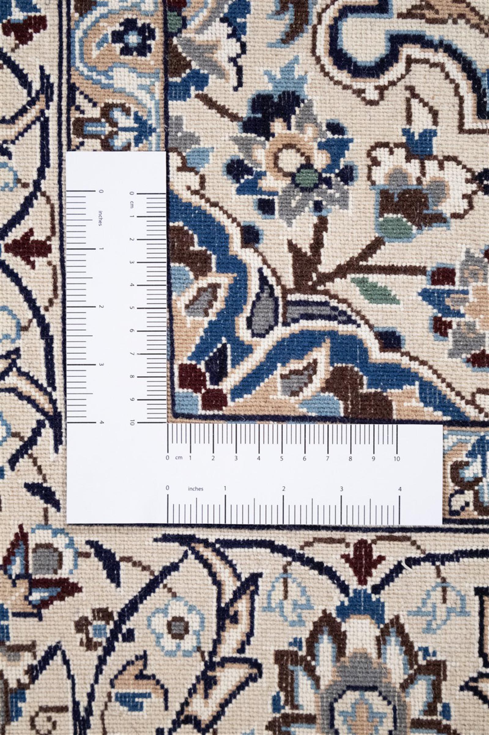 This Nain rug is classified as 9La. The excellent quality, the beautiful oriental design with its curvilinear patterns will delight every buyer. This Persian rug was hand-knotted in the city of Nain, which lies on the western edge of the Dasht-e-Kavir desert, from high-quality wool and natural silk. 9La Nain rugs are significantly finer than a 12La and already show beautiful details.
