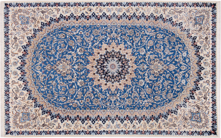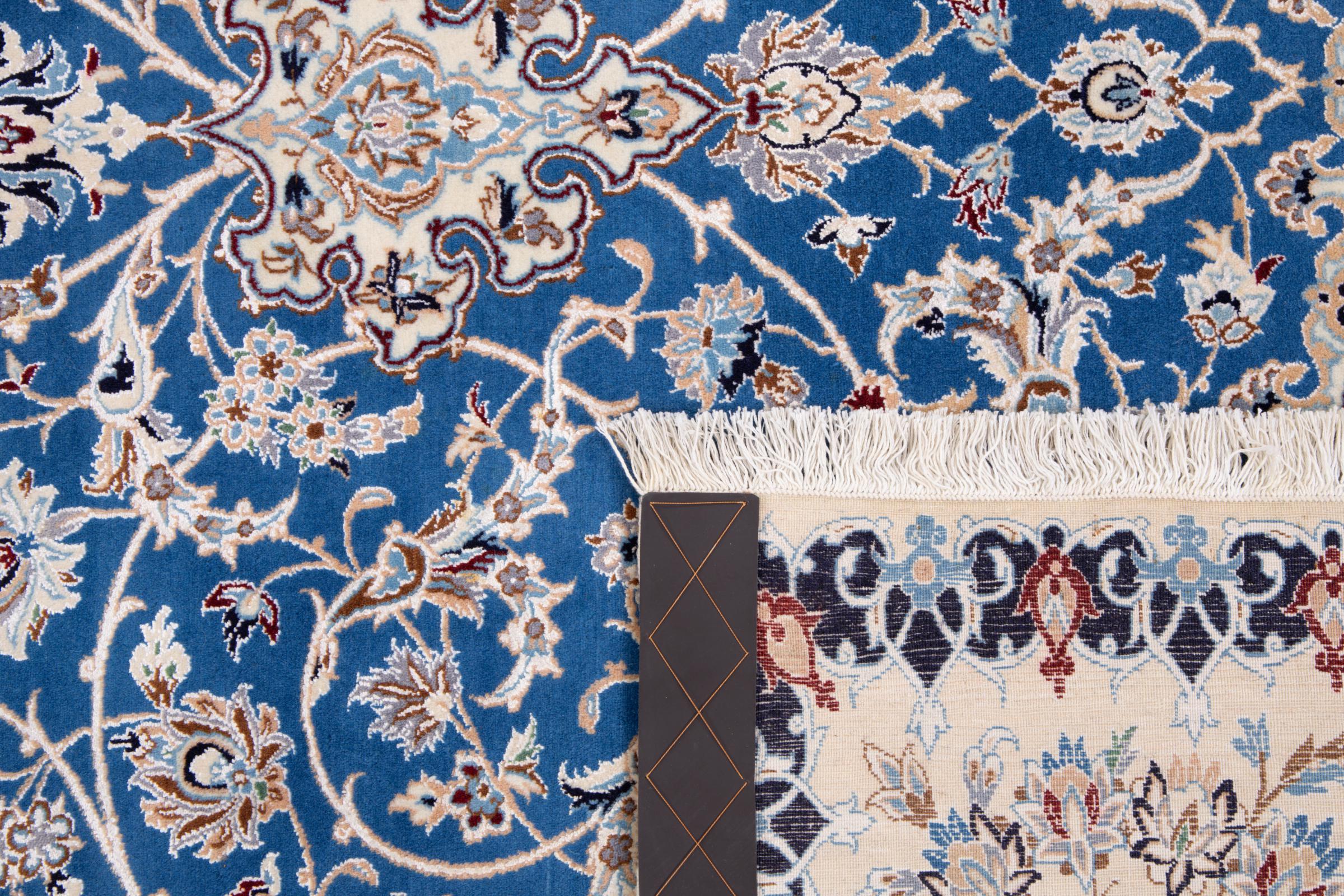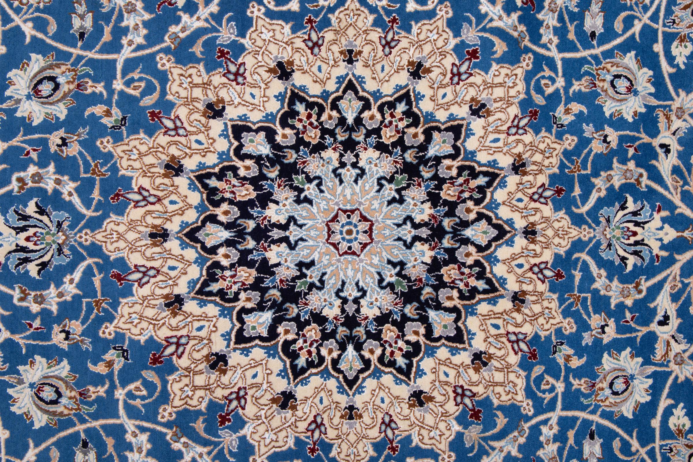 Rugs from the city of Nain, from the border of one of the largest deserts in Iran, are among the most famous Persian rugs in the world. Their typical design is characterized by floral ornaments, a medallion in the middle as well as beige and red or blue shades. Thanks to their designations 4La, 6La, 9La and 12La, the finenesses of a Nain rug can be seen at a glance. The lower the "La" number, the higher the knot density and thus the finer the rug.