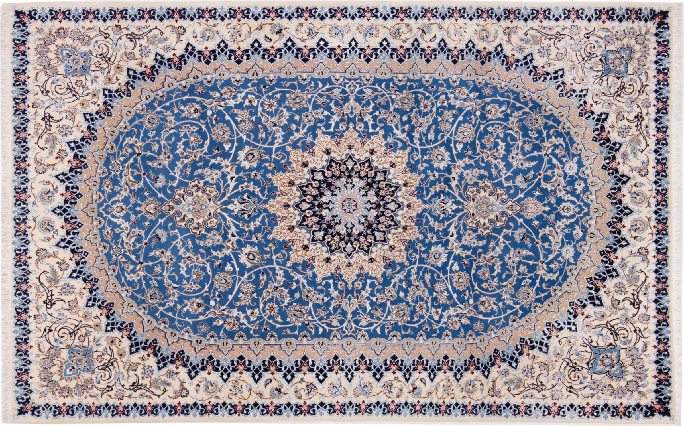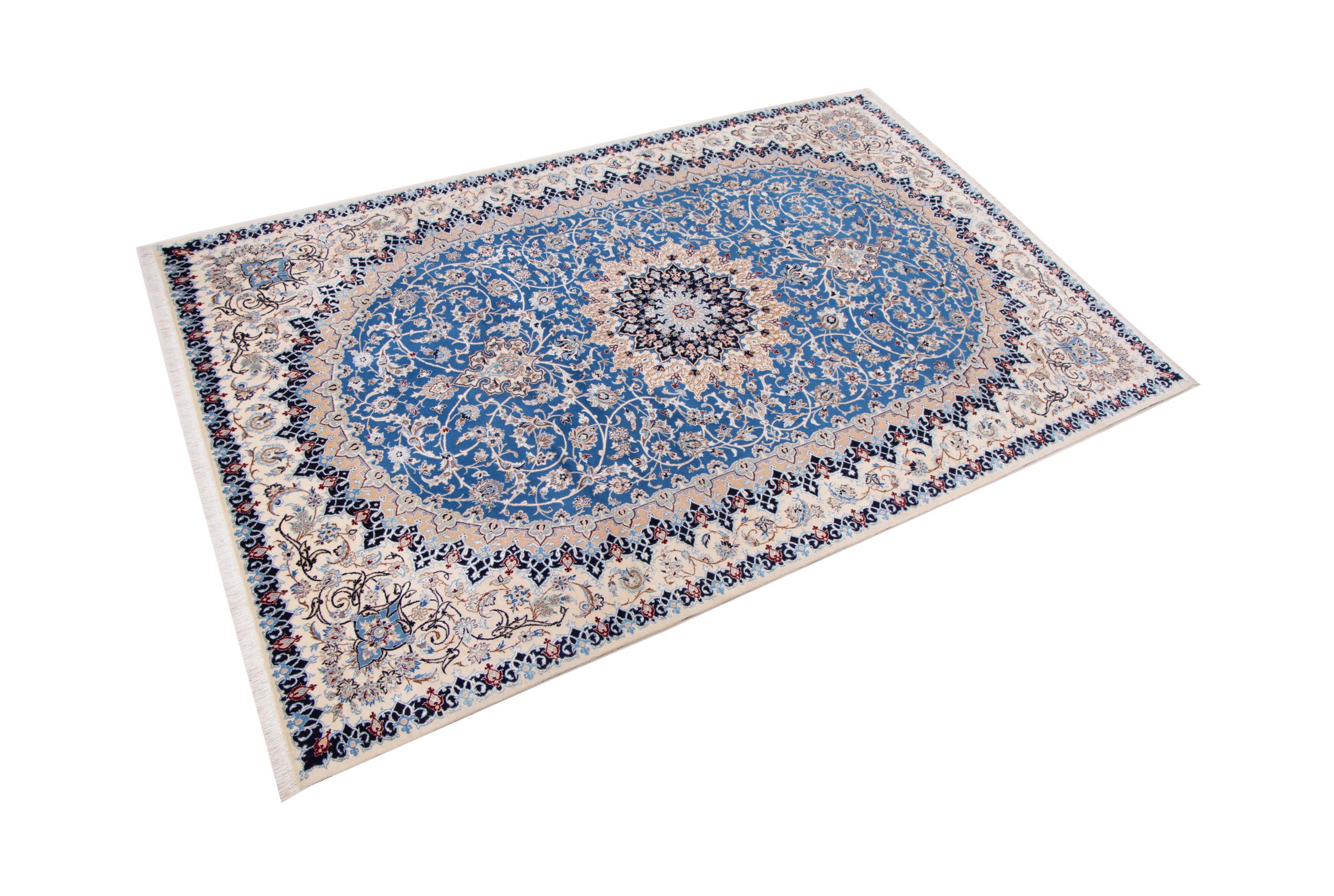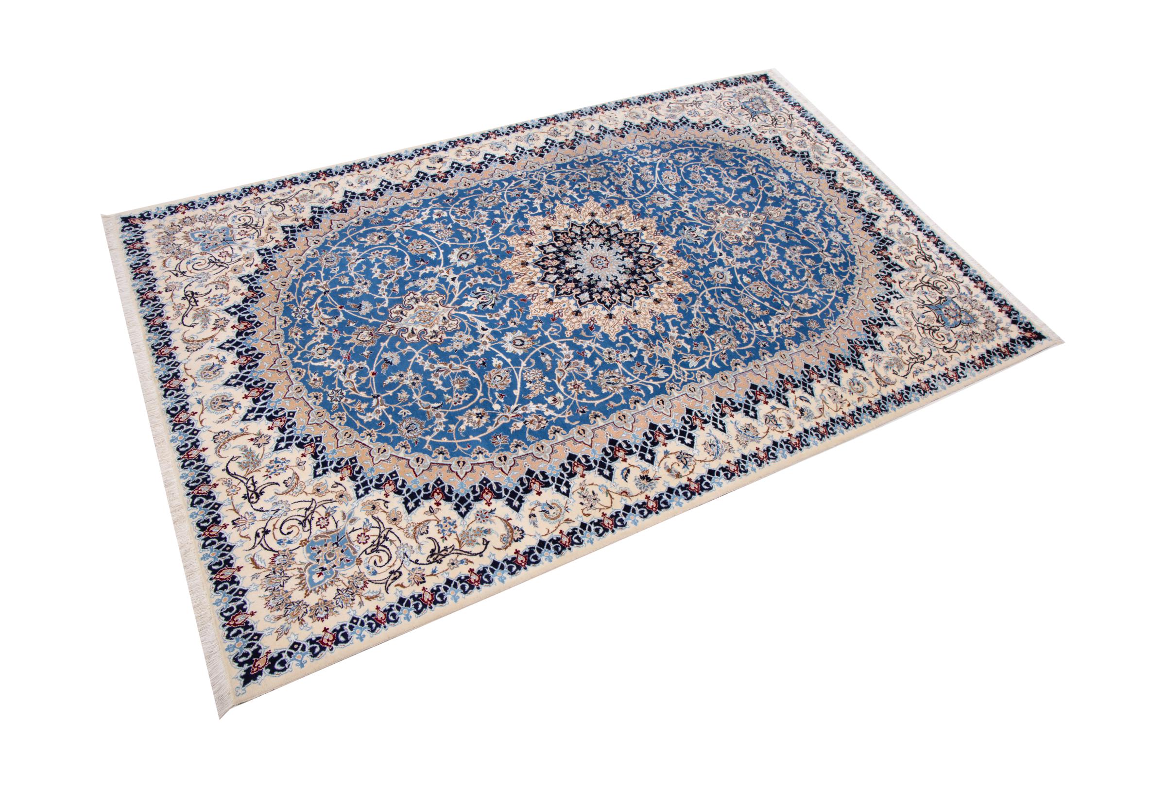 Rugs from the city of Nain, from the border of one of the largest deserts in Iran, are among the most famous Persian rugs in the world. Their typical design is characterized by floral ornaments, a medallion in the middle as well as beige and red or blue shades. Thanks to their designations 4La, 6La, 9La and 12La, the finenesses of a Nain rug can be seen at a glance. The lower the "La" number, the higher the knot density and thus the finer the rug.