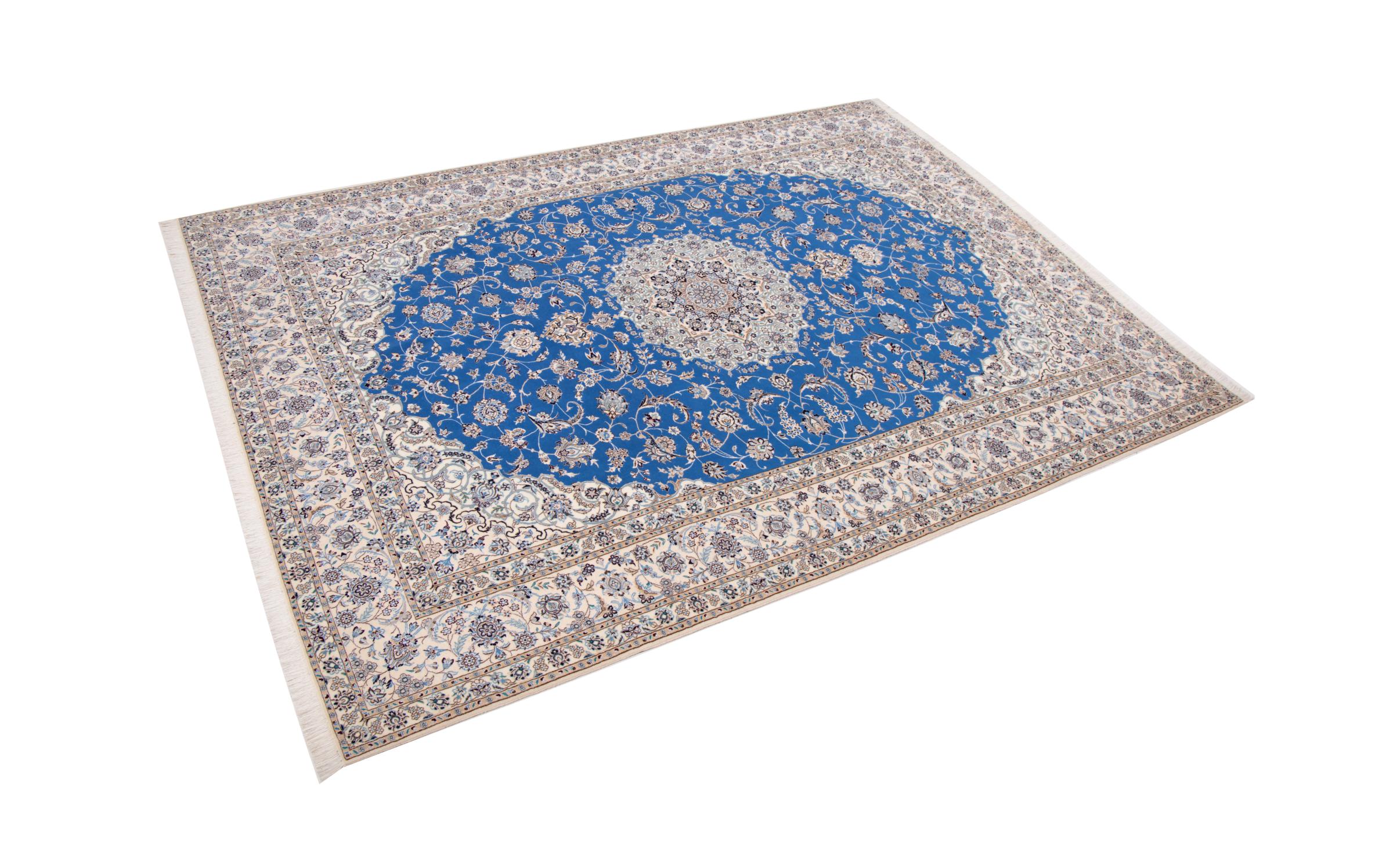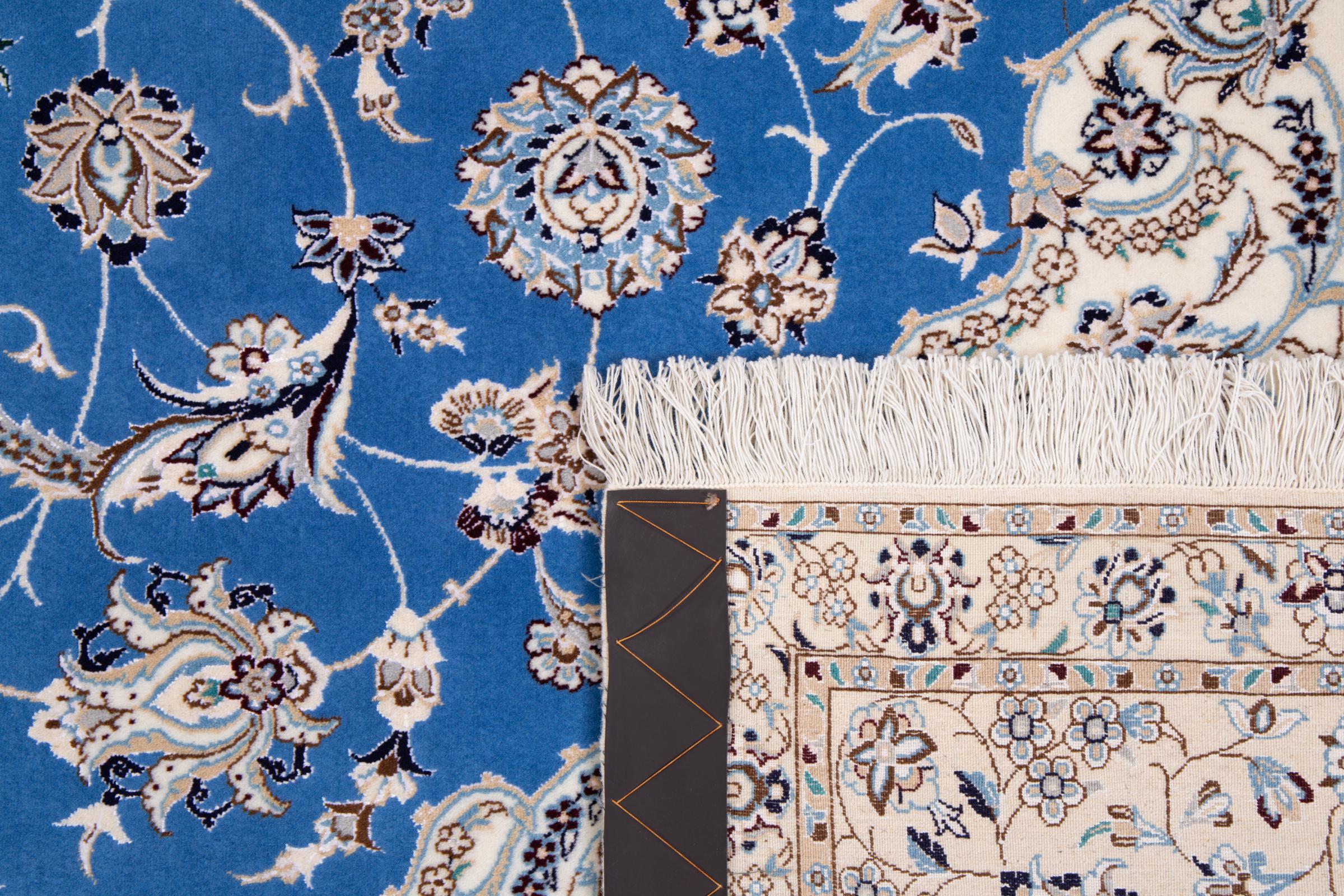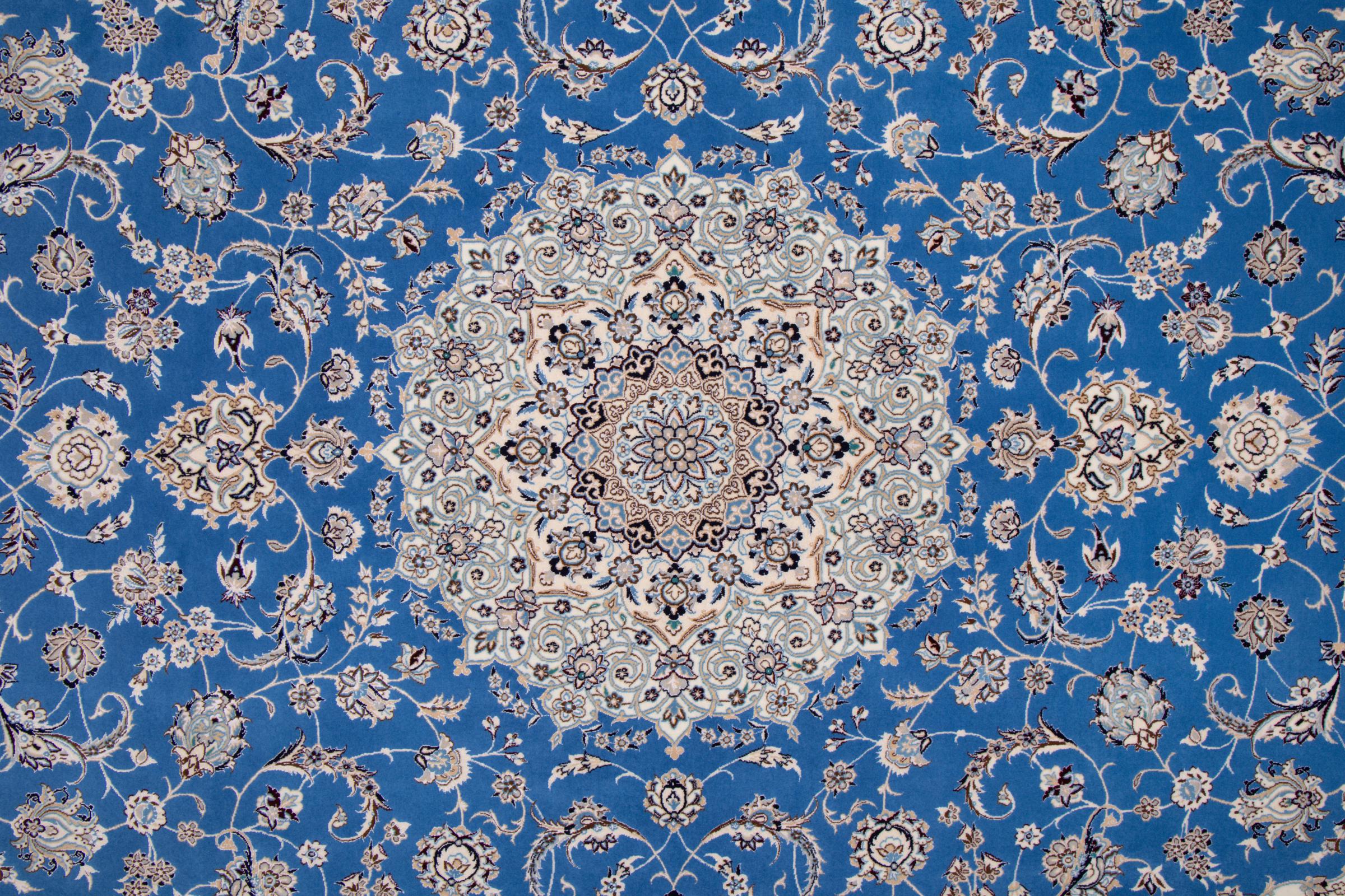 Rugs from the city of Nain, from the border of one of the largest deserts in Iran, are among the most famous Persian rugs in the world. Their typical design is characterized by floral ornaments, a medallion in the middle as well as beige and red or blue shades. Thanks to their designations 4La, 6La, 9La and 12La, the finenesses of a Nain rug can be seen at a glance. The lower the "La" number, the higher the knot density and thus the finer the rug.