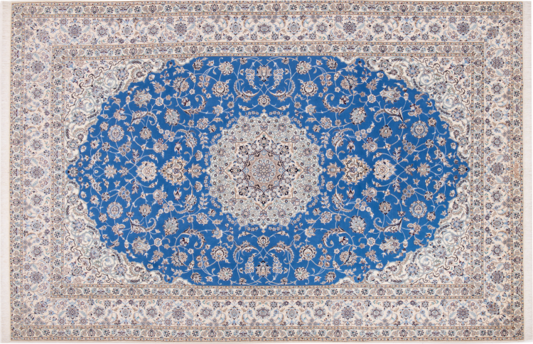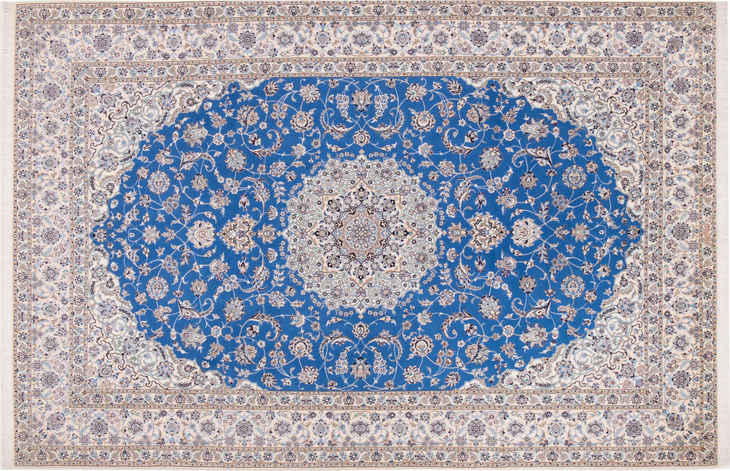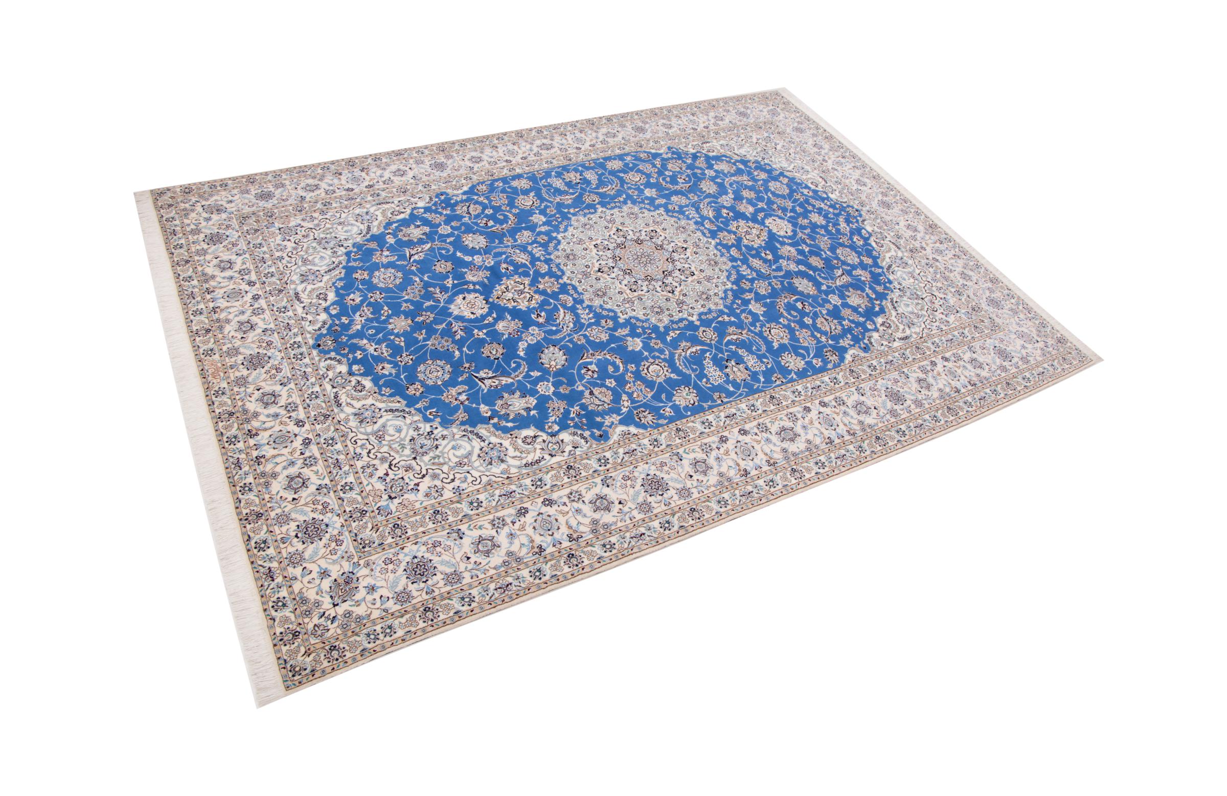 Rugs from the city of Nain, from the border of one of the largest deserts in Iran, are among the most famous Persian rugs in the world. Their typical design is characterized by floral ornaments, a medallion in the middle as well as beige and red or blue shades. Thanks to their designations 4La, 6La, 9La and 12La, the finenesses of a Nain rug can be seen at a glance. The lower the "La" number, the higher the knot density and thus the finer the rug.