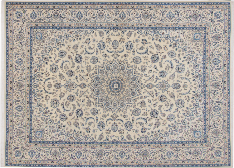 Rugs from the city of Nain, from the border of one of the largest deserts in Iran, are among the most famous Persian rugs in the world. Their typical design is characterized by floral ornaments, a medallion in the middle as well as beige and red or blue shades. Thanks to their designations 4La, 6La, 9La and 12La, the finenesses of a Nain rug can be seen at a glance. The lower the "La" number, the higher the knot density and thus the finer the rug.