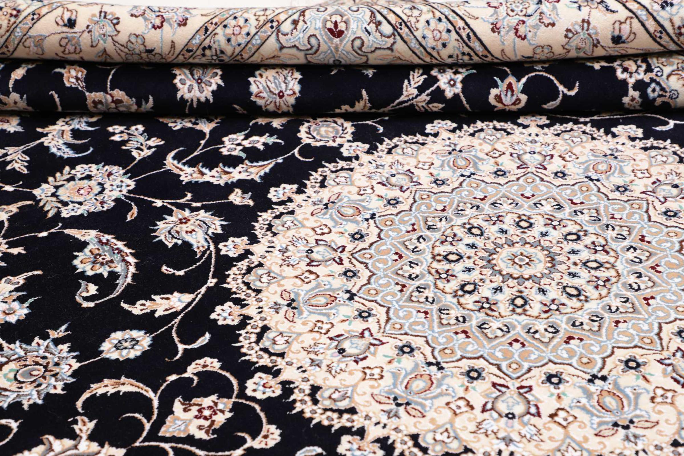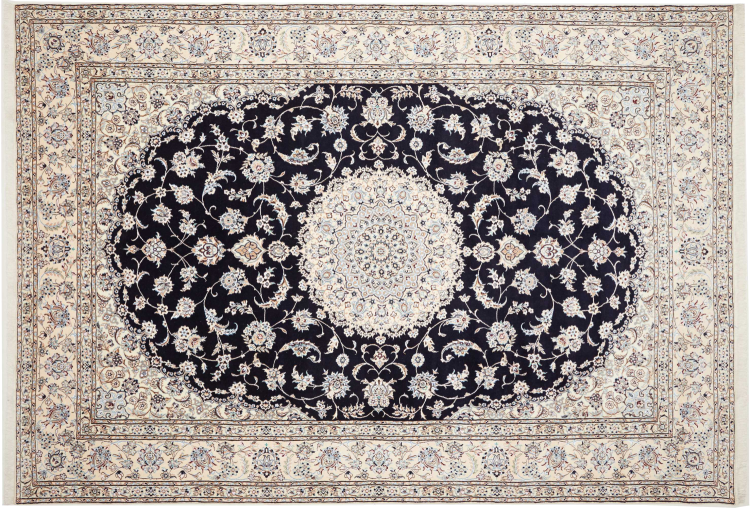 Rugs from the city of Nain, from the border of one of the largest deserts in Iran, are among the most famous Persian rugs in the world. Their typical design is characterized by floral ornaments, a medallion in the middle as well as beige and red or blue shades. Thanks to their designations 4La, 6La, 9La and 12La, the finenesses of a Nain rug can be seen at a glance. The lower the "La" number, the higher the knot density and thus the finer the rug.