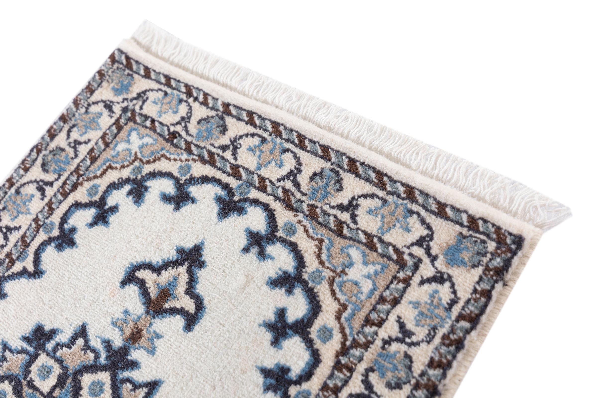 Rugs from the city of Nain, from the border of one of the largest deserts in Iran, are among the most famous Persian rugs in the world. Their typical design is characterized by floral ornaments, a medallion in the middle as well as beige and red or blue shades. Thanks to their designations 4La, 6La, 9La and 12La, the finenesses of a Nain rug can be seen at a glance. The lower the "La" number, the higher the knot density and thus the finer the rug.