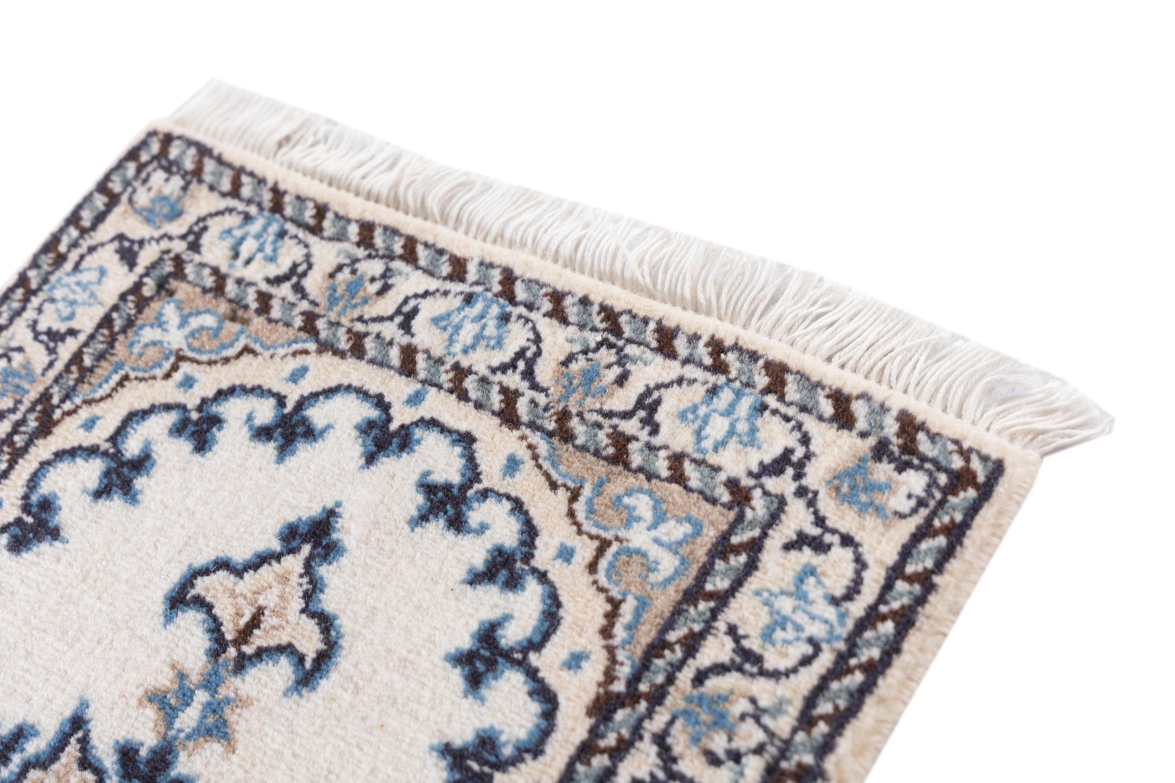 Rugs from the city of Nain, from the border of one of the largest deserts in Iran, are among the most famous Persian rugs in the world. Their typical design is characterized by floral ornaments, a medallion in the middle as well as beige and red or blue shades. Thanks to their designations 4La, 6La, 9La and 12La, the finenesses of a Nain rug can be seen at a glance. The lower the "La" number, the higher the knot density and thus the finer the rug.