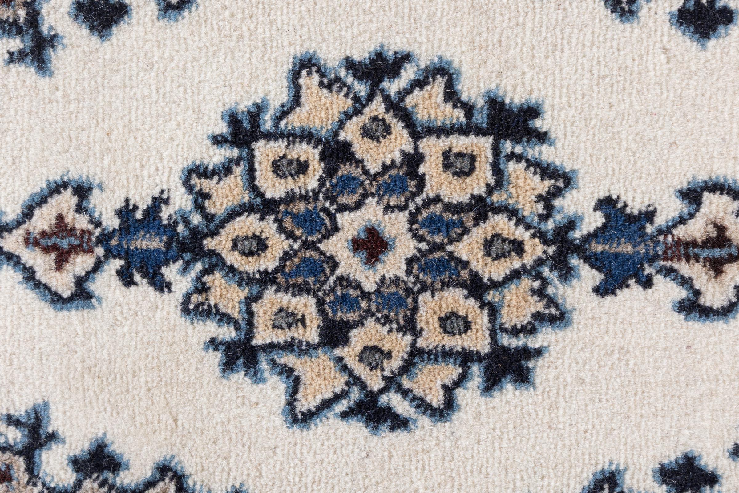 Rugs from the city of Nain, from the border of one of the largest deserts in Iran, are among the most famous Persian rugs in the world. Their typical design is characterized by floral ornaments, a medallion in the middle as well as beige and red or blue shades. Thanks to their designations 4La, 6La, 9La and 12La, the finenesses of a Nain rug can be seen at a glance. The lower the "La" number, the higher the knot density and thus the finer the rug.