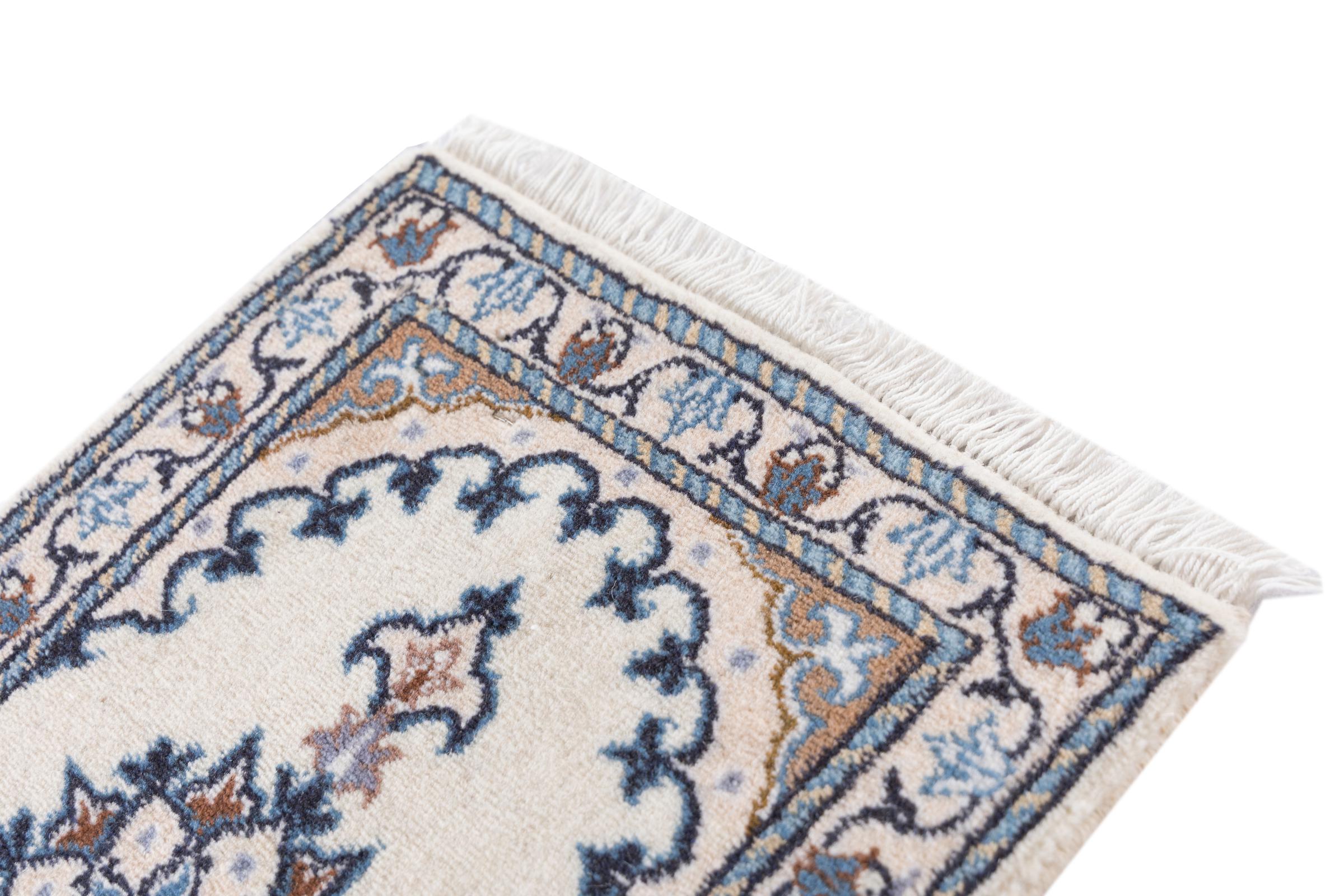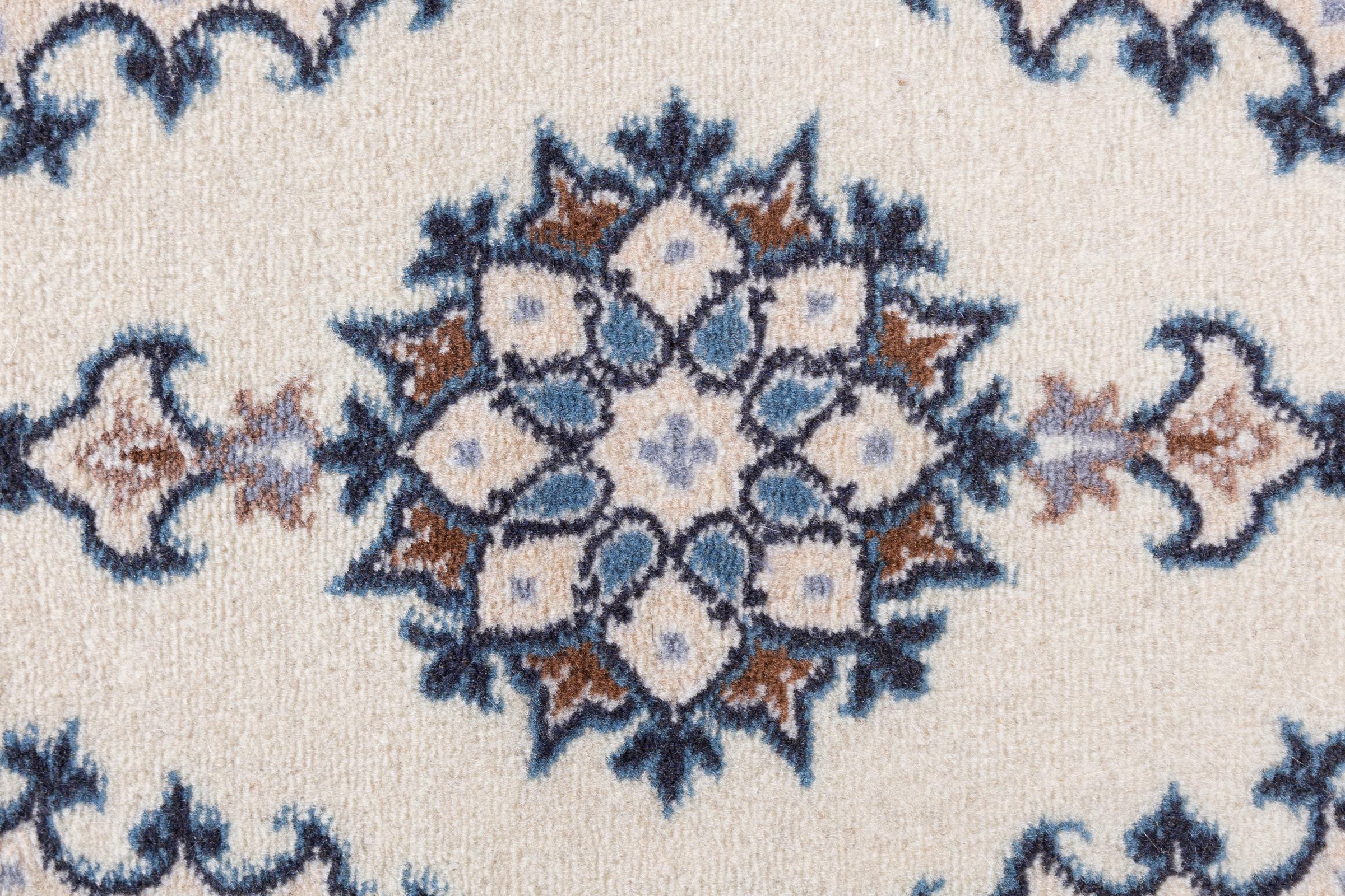 Rugs from the city of Nain, from the border of one of the largest deserts in Iran, are among the most famous Persian rugs in the world. Their typical design is characterized by floral ornaments, a medallion in the middle as well as beige and red or blue shades. Thanks to their designations 4La, 6La, 9La and 12La, the finenesses of a Nain rug can be seen at a glance. The lower the "La" number, the higher the knot density and thus the finer the rug.