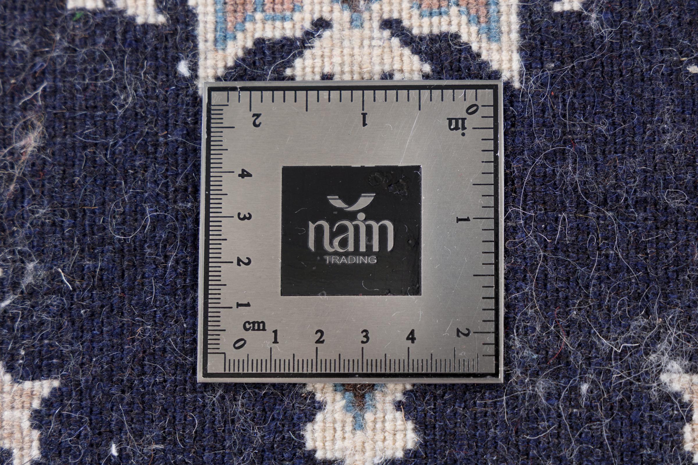 This Nain rug is classified as 12La. Its typical Nain colour scheme gives it an elegant and sophisticated look. This Persian rug was hand-knotted in the city of Nain, which lies on the western edge of the Dasht-e-Kavir desert, using high-quality wool and natural silk. At 12La, it is not as finely detailed with ornamentation as a Nain 9La or 6La.