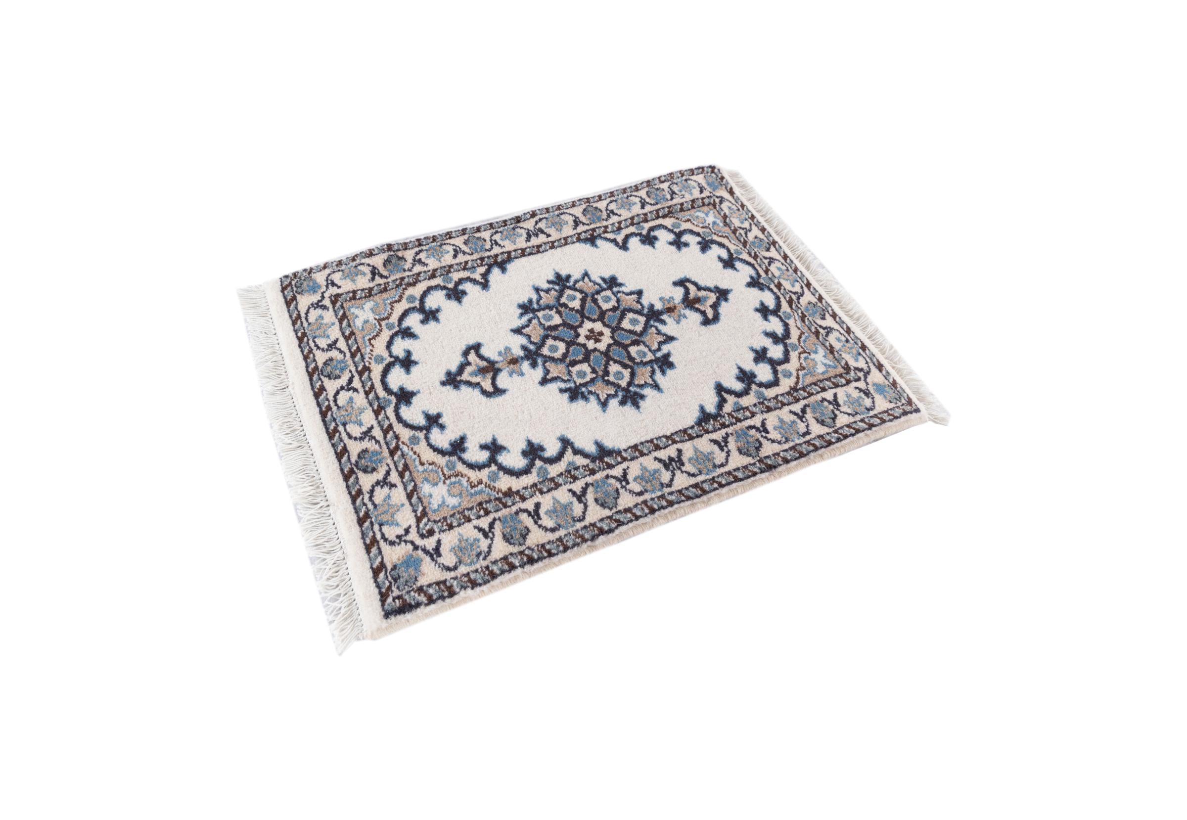 Carpet ID: 2940840021562 Size: 60x40 cm Thickness: ap. 12 mm Knot density: 200 000 - 250 000 / m² Manufacturing: Knotted by hand Pile: Wool with silk Warp: Cotton Origin: Persia Age: New Weight: ap. 1 kg In stock: Unique - Only 1 in stock