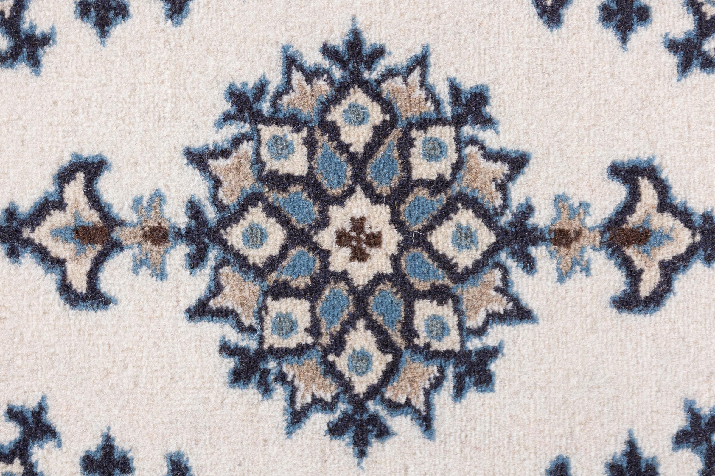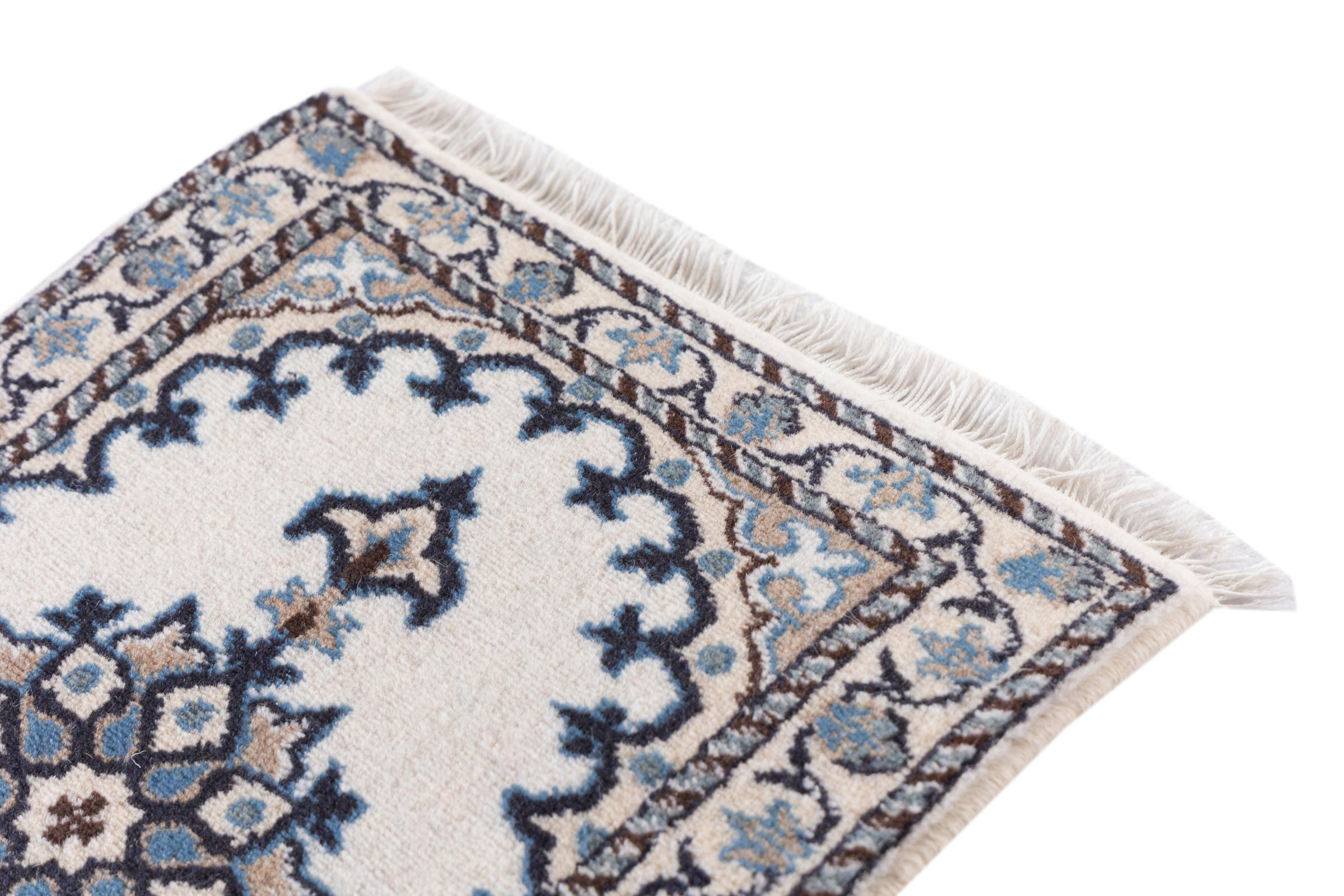 Rugs from the city of Nain, from the border of one of the largest deserts in Iran, are among the most famous Persian rugs in the world. Their typical design is characterized by floral ornaments, a medallion in the middle as well as beige and red or blue shades. Thanks to their designations 4La, 6La, 9La and 12La, the finenesses of a Nain rug can be seen at a glance. The lower the "La" number, the higher the knot density and thus the finer the rug.
