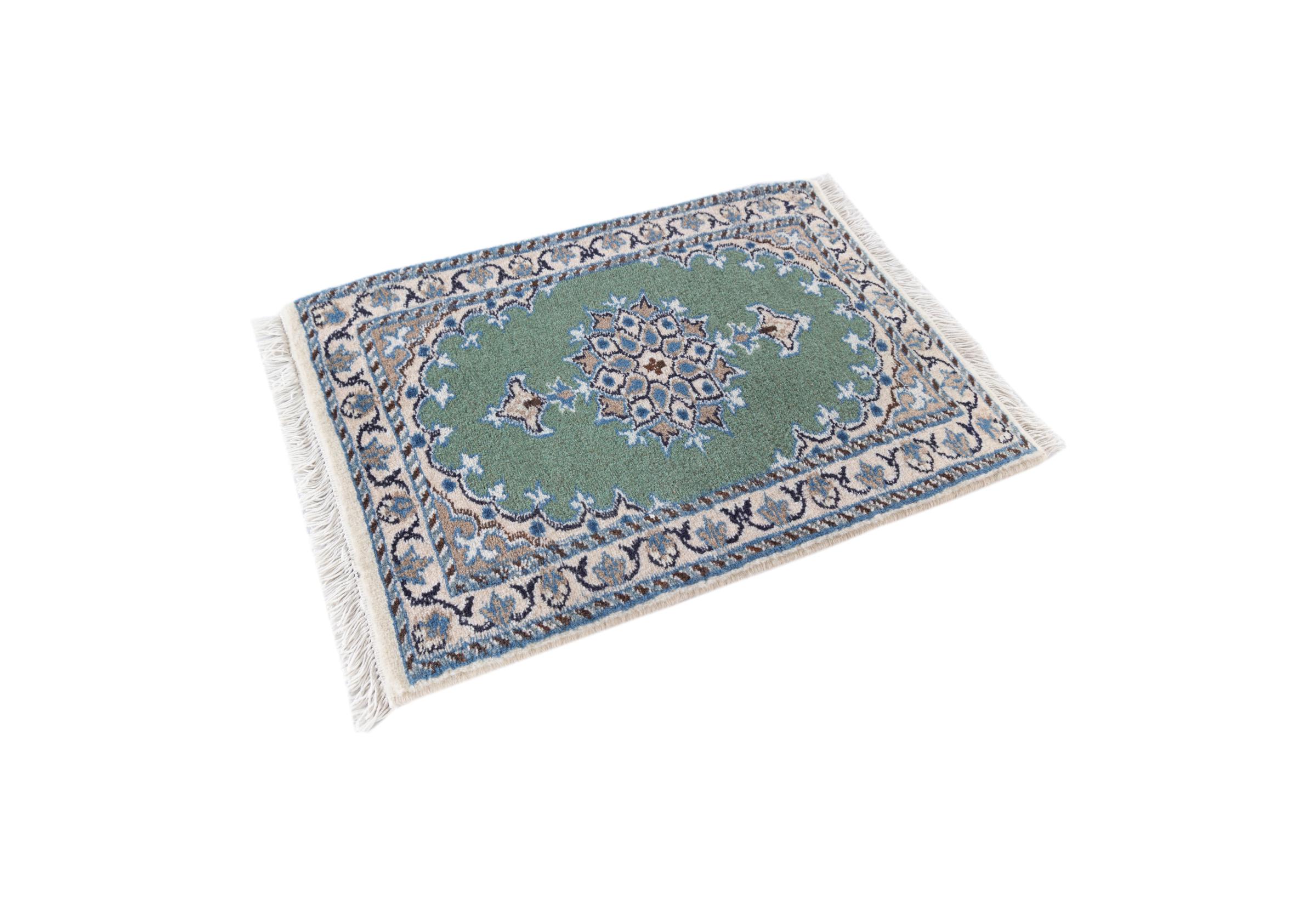 Carpet ID: 2941000021580 Size: 60x40 cm Thickness: ap. 12 mm Knot density: 200 000 - 250 000 / m² Manufacturing: Knotted by hand Pile: Wool with silk Warp: Cotton Origin: Persia Age: New Weight: ap. 1 kg In stock: Unique - Only 1 in stock