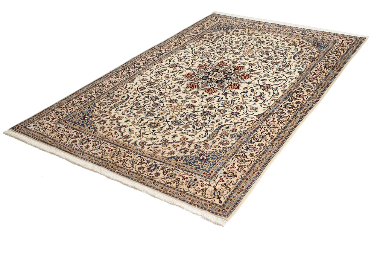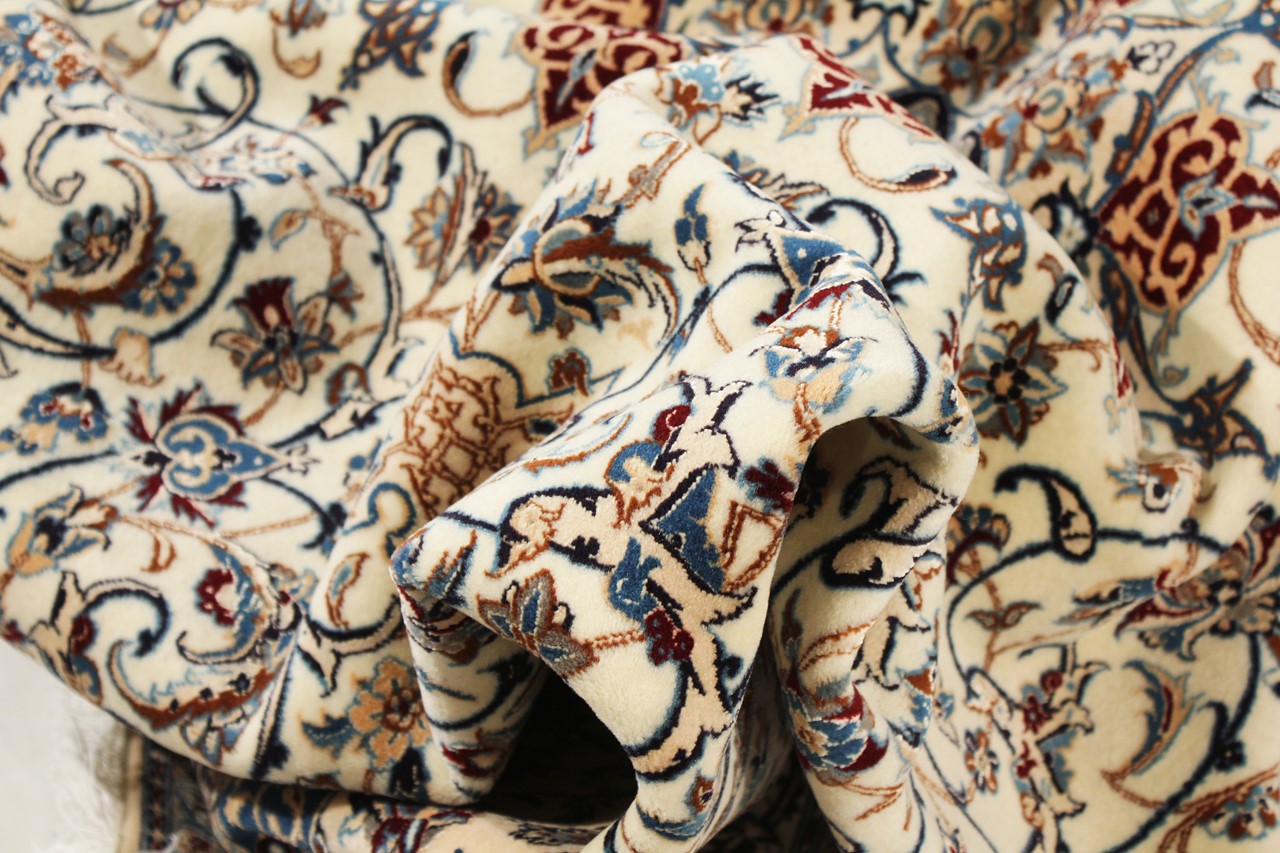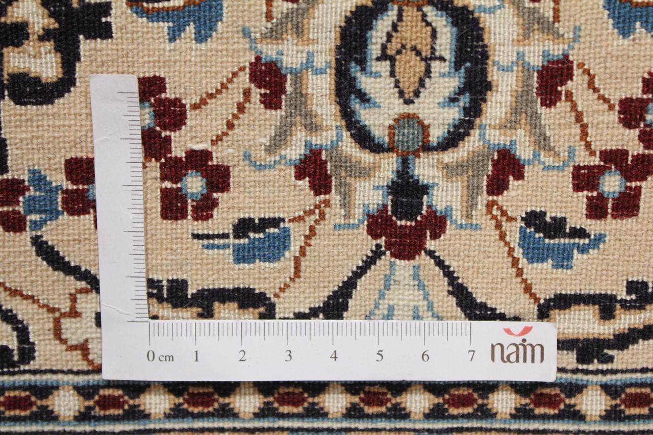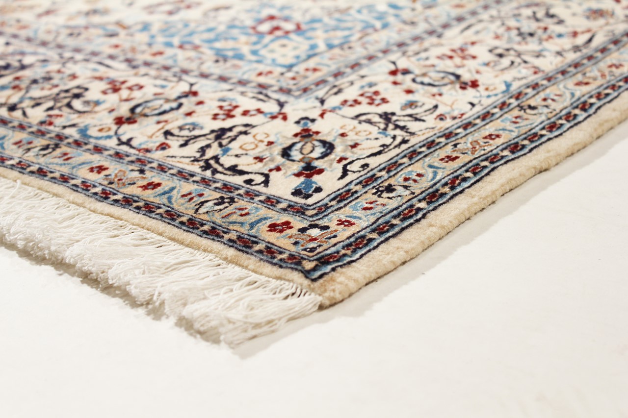 Rugs from the city of Nain, from the border of one of the largest deserts in Iran, are among the most famous Persian rugs in the world. Their typical design is characterized by floral ornaments, a medallion in the middle as well as beige and red or blue shades. Thanks to their designations 4La, 6La, 9La and 12La, the finenesses of a Nain rug can be seen at a glance. The lower the "La" number, the higher the knot density and thus the finer the rug.