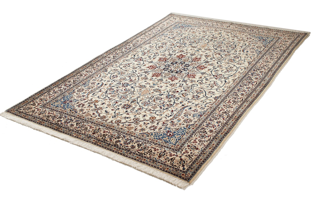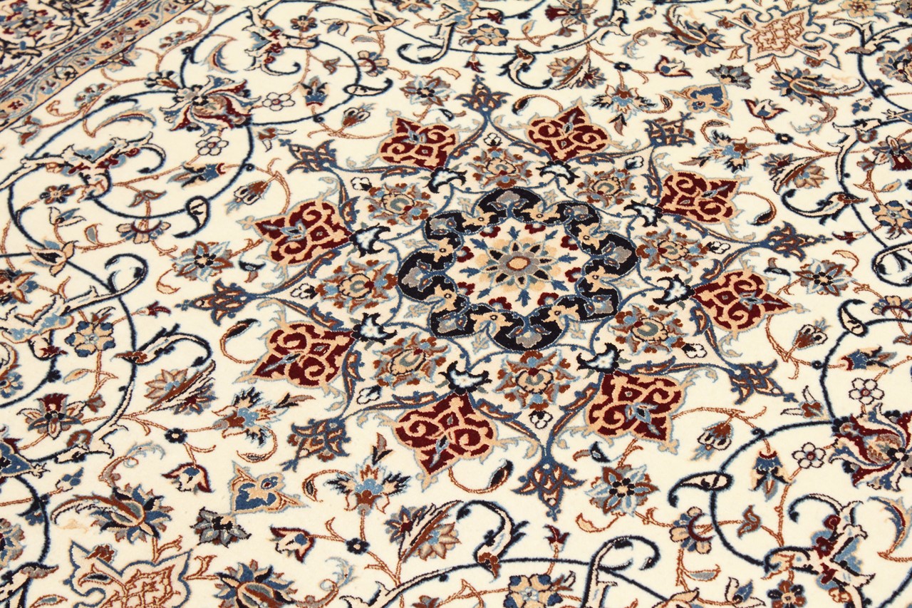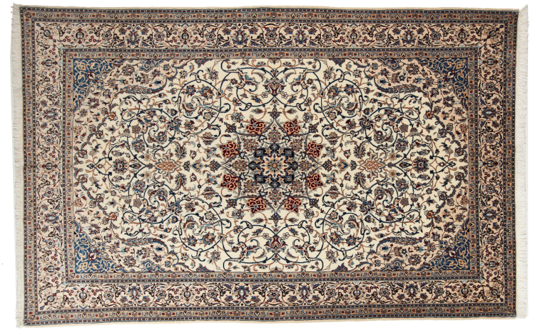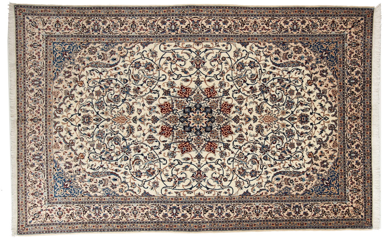 Rugs from the city of Nain, from the border of one of the largest deserts in Iran, are among the most famous Persian rugs in the world. Their typical design is characterized by floral ornaments, a medallion in the middle as well as beige and red or blue shades. Thanks to their designations 4La, 6La, 9La and 12La, the finenesses of a Nain rug can be seen at a glance. The lower the "La" number, the higher the knot density and thus the finer the rug.