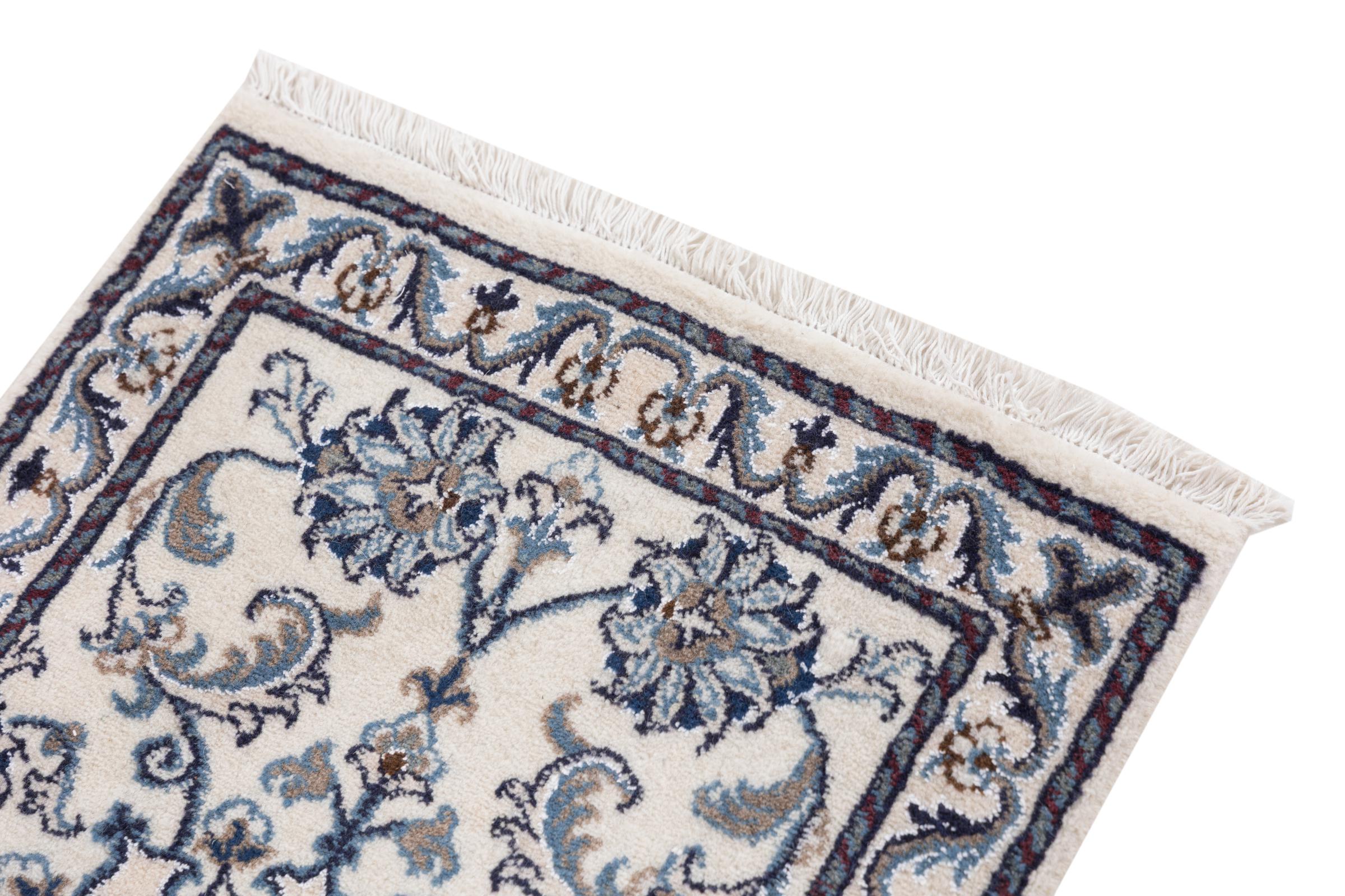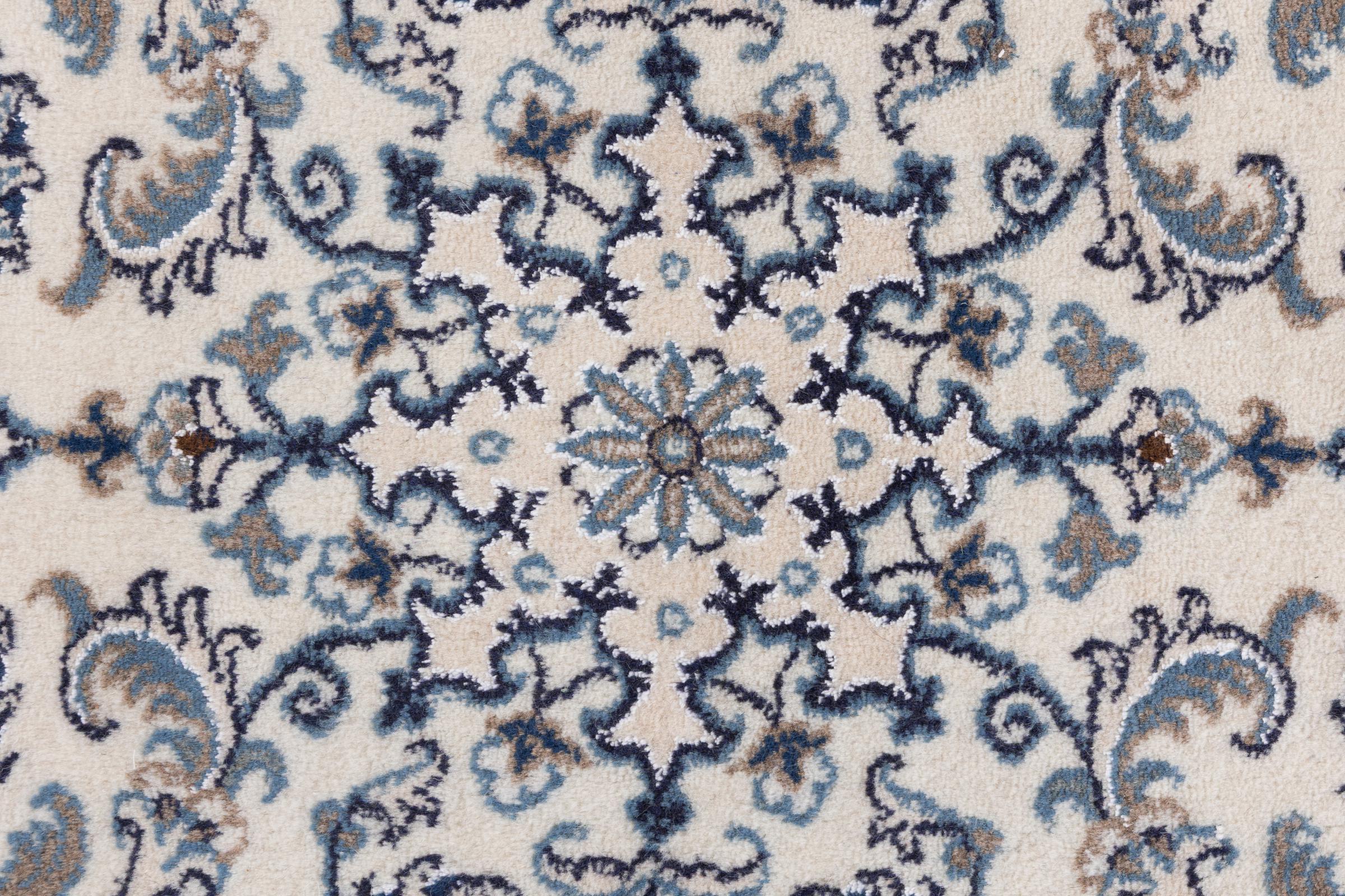 Rugs from the city of Nain, from the border of one of the largest deserts in Iran, are among the most famous Persian rugs in the world. Their typical design is characterized by floral ornaments, a medallion in the middle as well as beige and red or blue shades. Thanks to their designations 4La, 6La, 9La and 12La, the finenesses of a Nain rug can be seen at a glance. The lower the "La" number, the higher the knot density and thus the finer the rug.