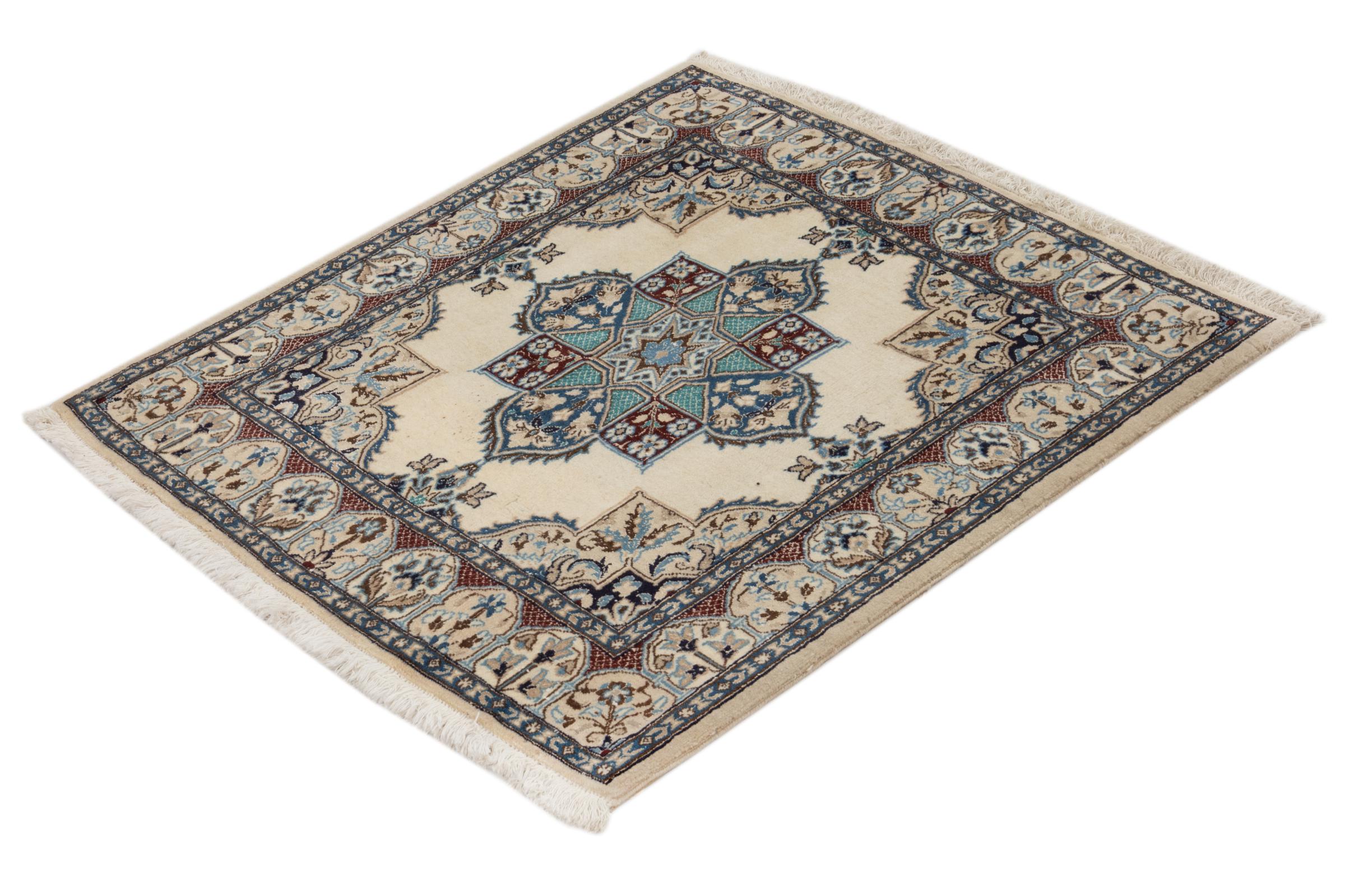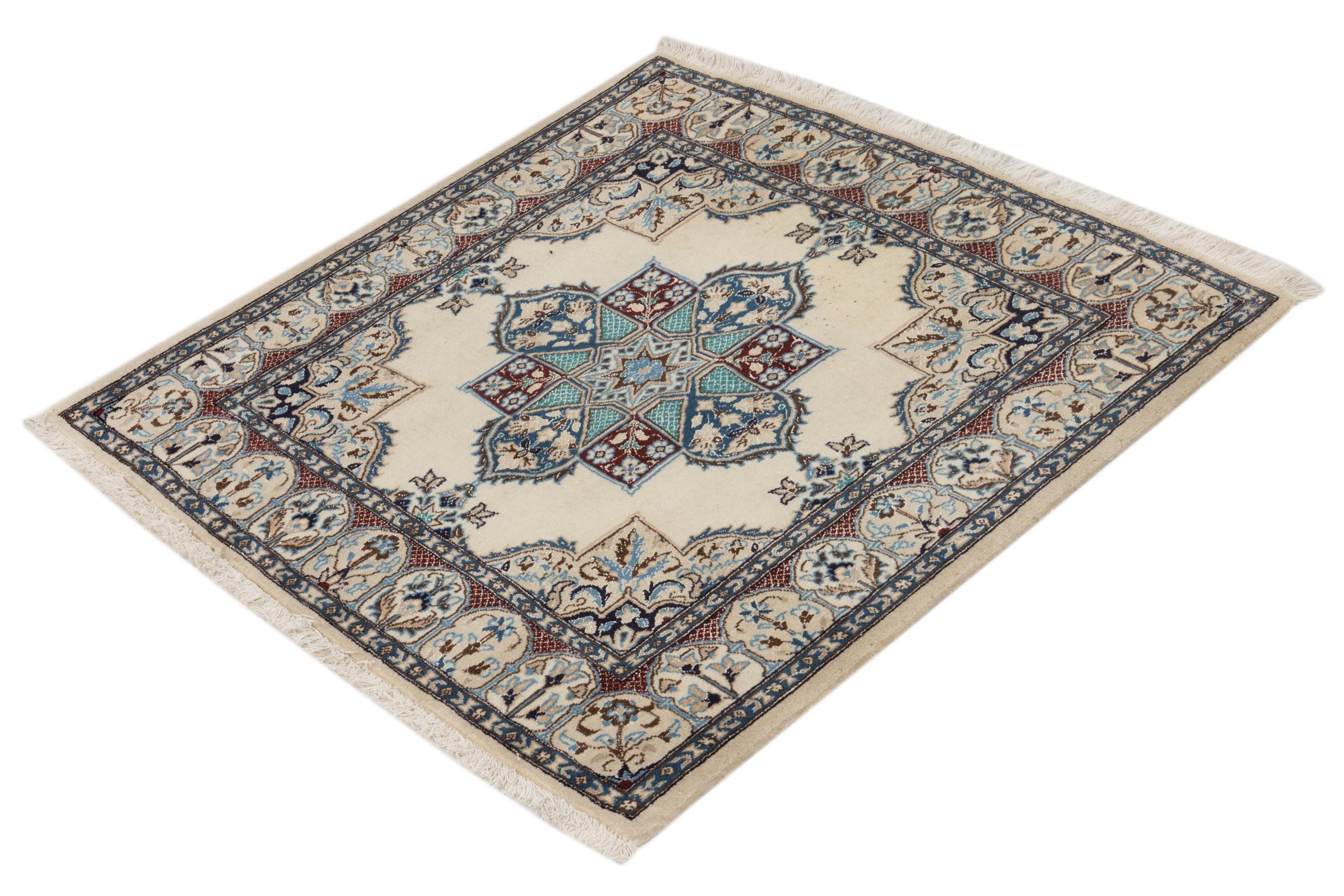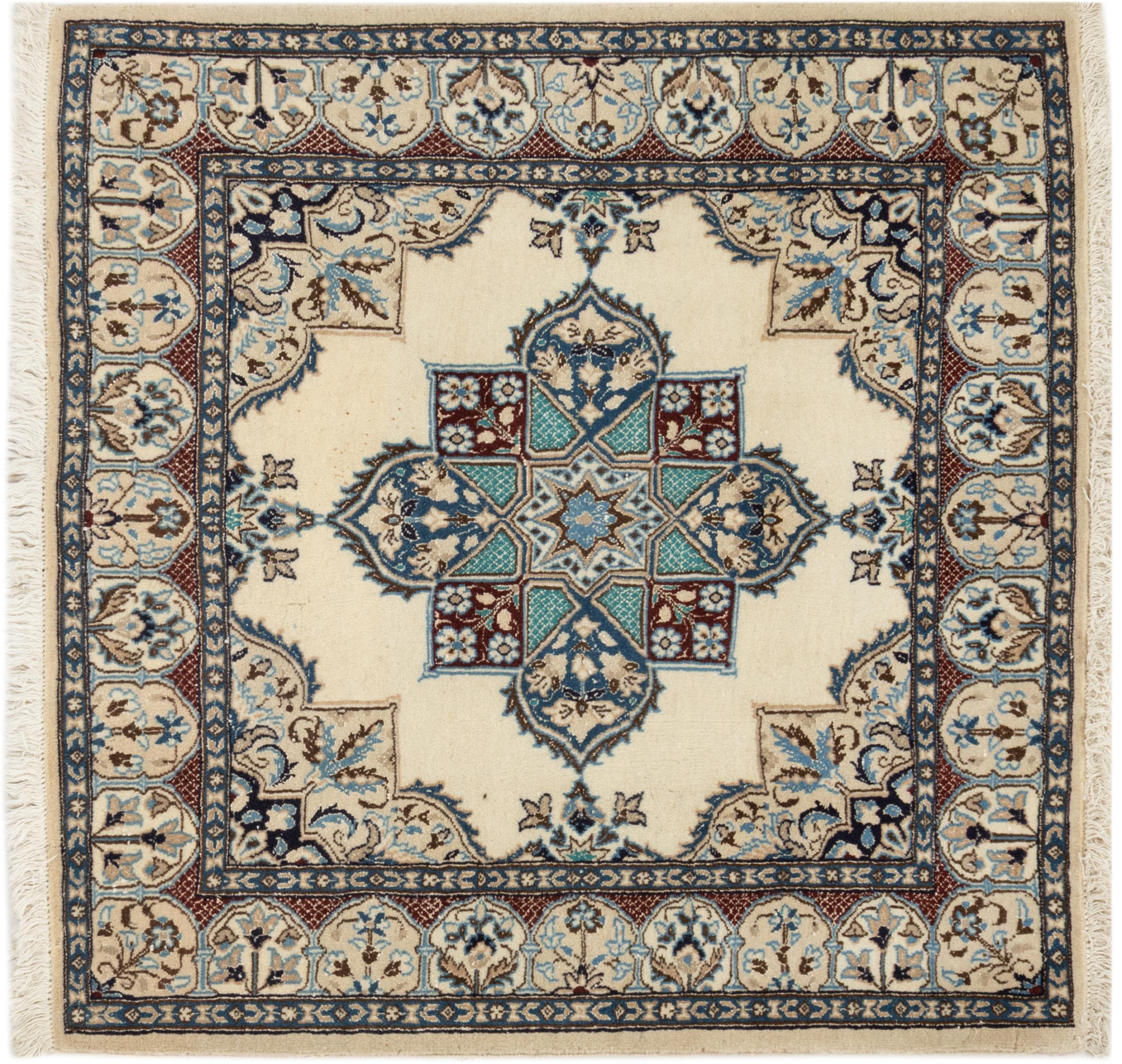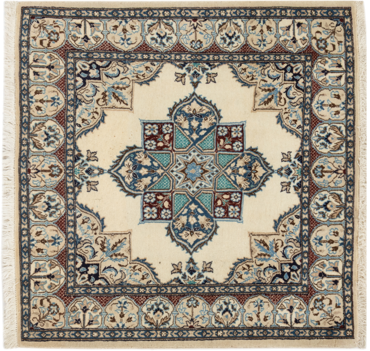 Carpet ID: 297011001652283 Size: 98x98 cm Thickness: ap. 5 mm Knot density: 410 000 - 450 000 / m² Manufacturing: Knotted by hand Pile: Sheep wool Warp: Cotton Origin: Persia Age: 20-30 years (New) Weight: ap. 3 kg In stock: Unique - Only 1 in stock
