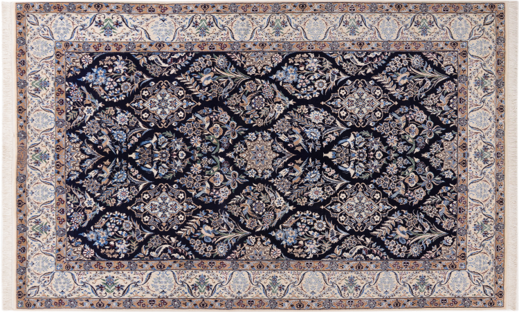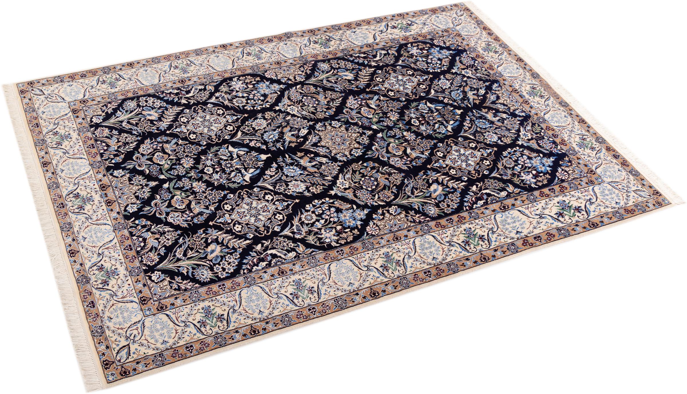 Rugs from the city of Nain, from the border of one of the largest deserts in Iran, are among the most famous Persian rugs in the world. Their typical design is characterized by floral ornaments, a medallion in the middle as well as beige and red or blue shades. Thanks to their designations 4La, 6La, 9La and 12La, the finenesses of a Nain rug can be seen at a glance. The lower the "La" number, the higher the knot density and thus the finer the rug.
