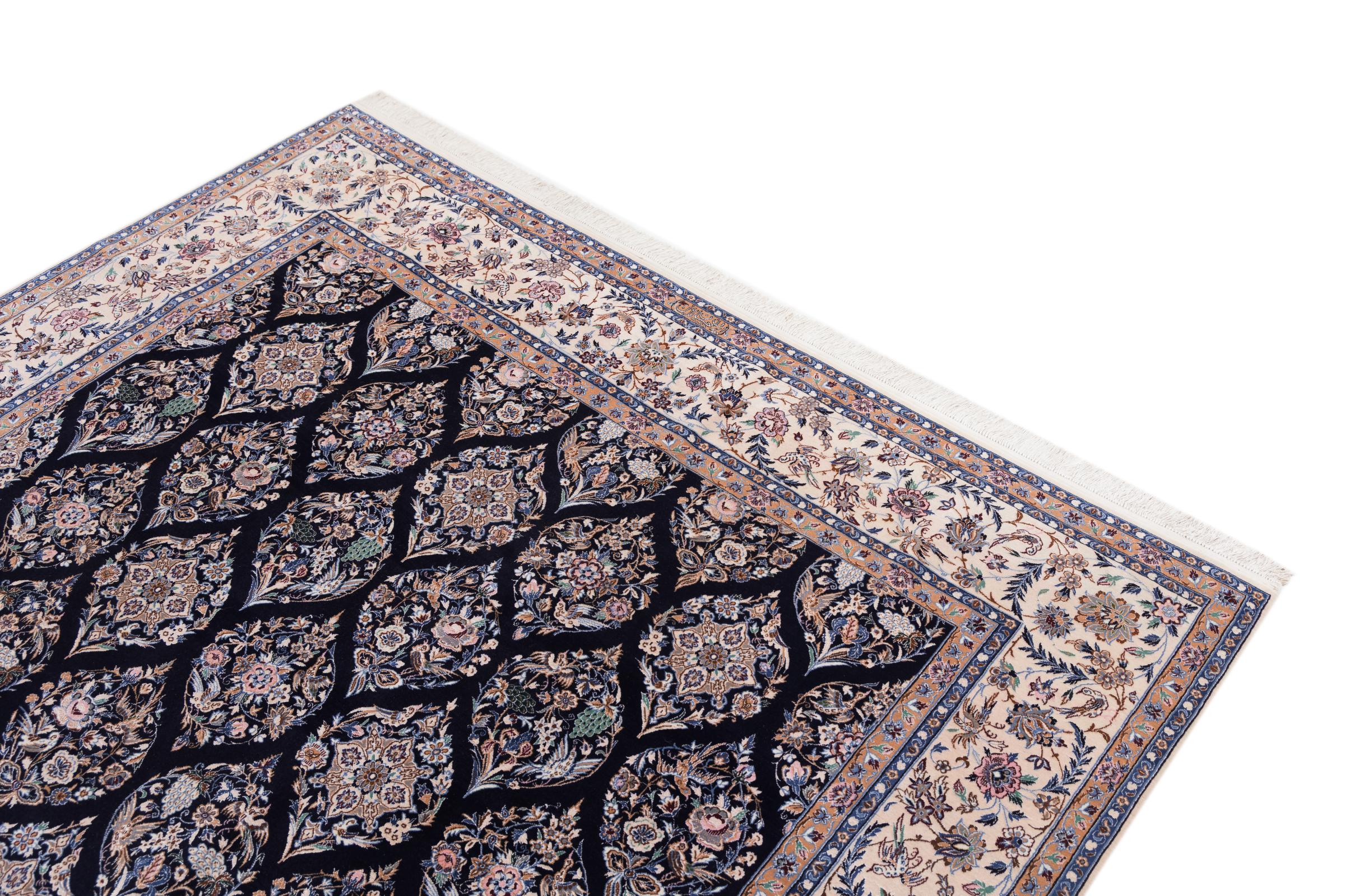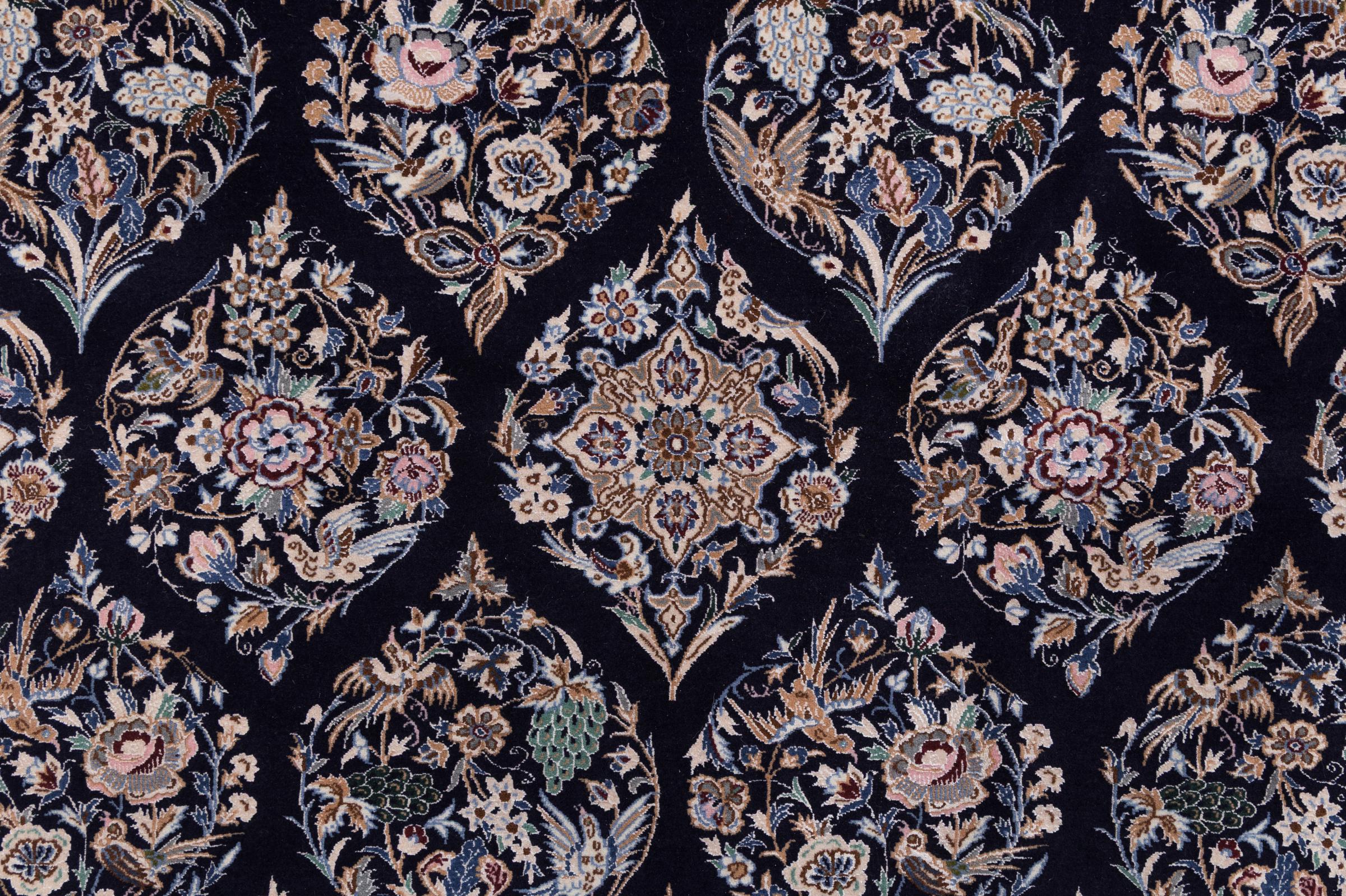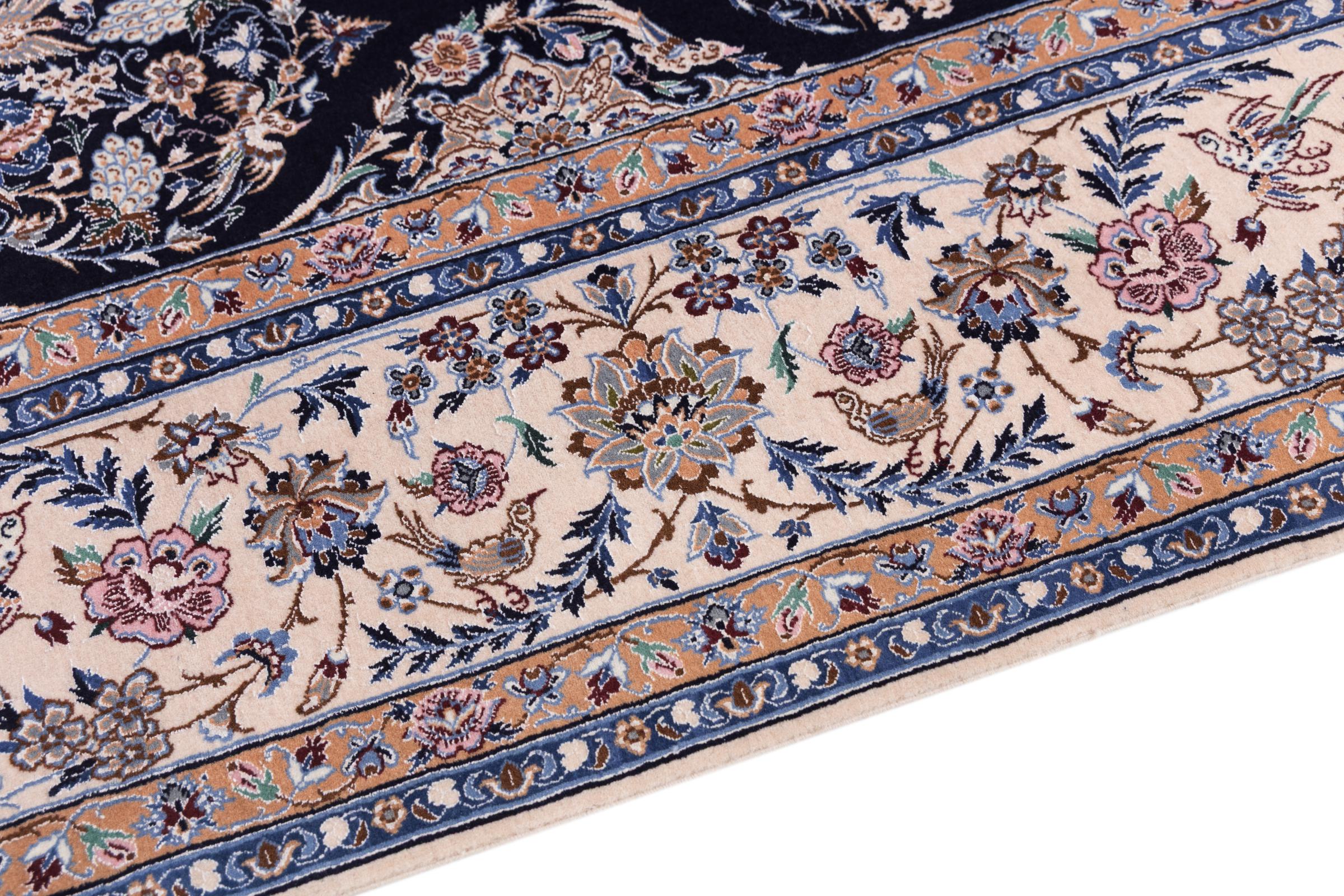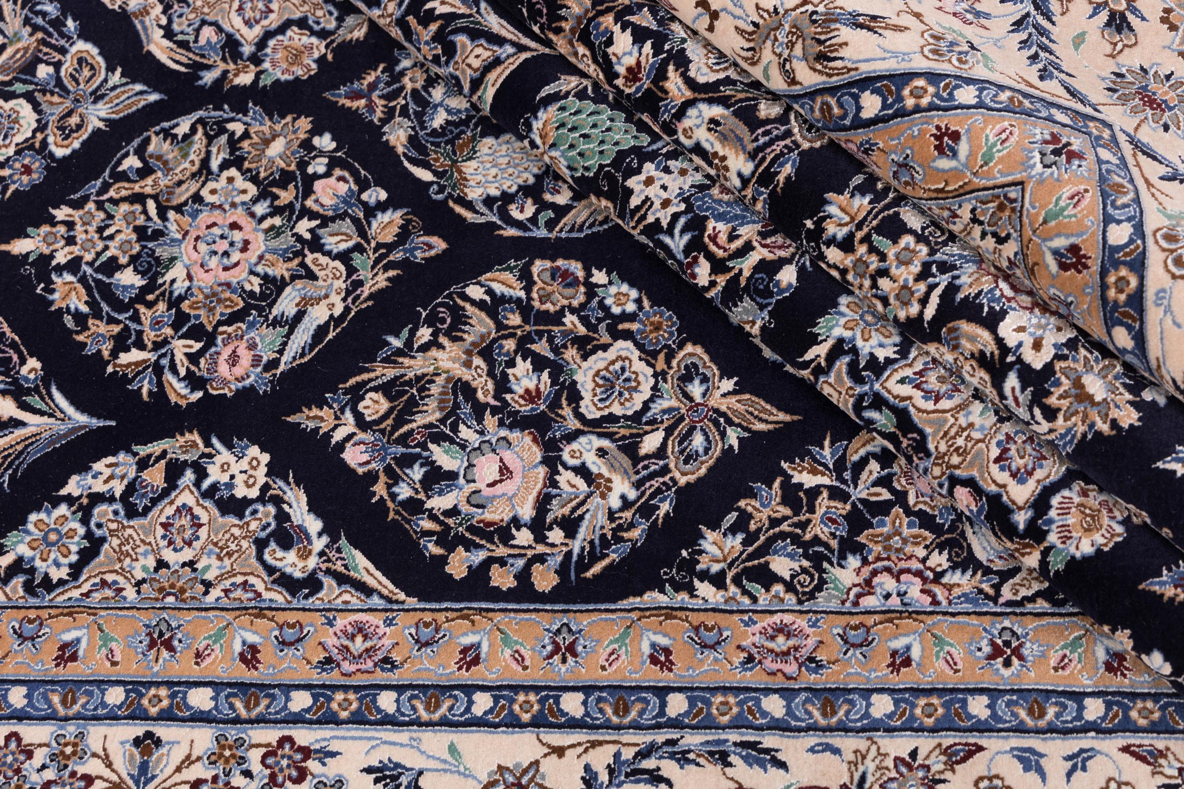 This Nain rug combines quality, tradition and an unmistakable design. It was hand-knotted from high-quality cork wool and natural silk in the desert town of the same name, Nain. Lovers of valuable rugs from Iran will love this Persian rug. With Nain rugs in the 6La and 4La classifications, you have a real work of art with an incredible level of detail that you can really lose yourself in. Nain 4La rugs are almost impossible to find today, as they are extremely elaborate to produce.