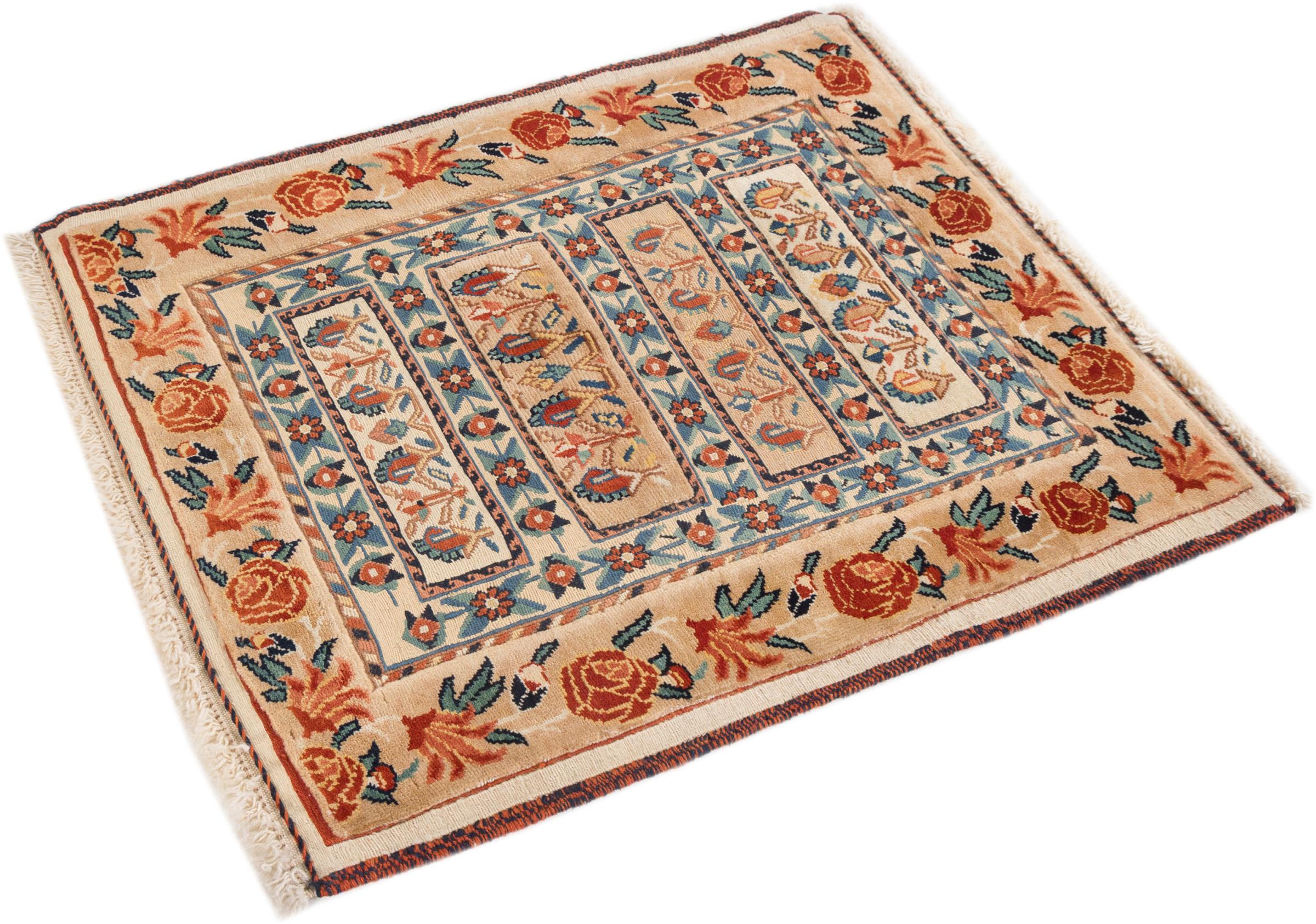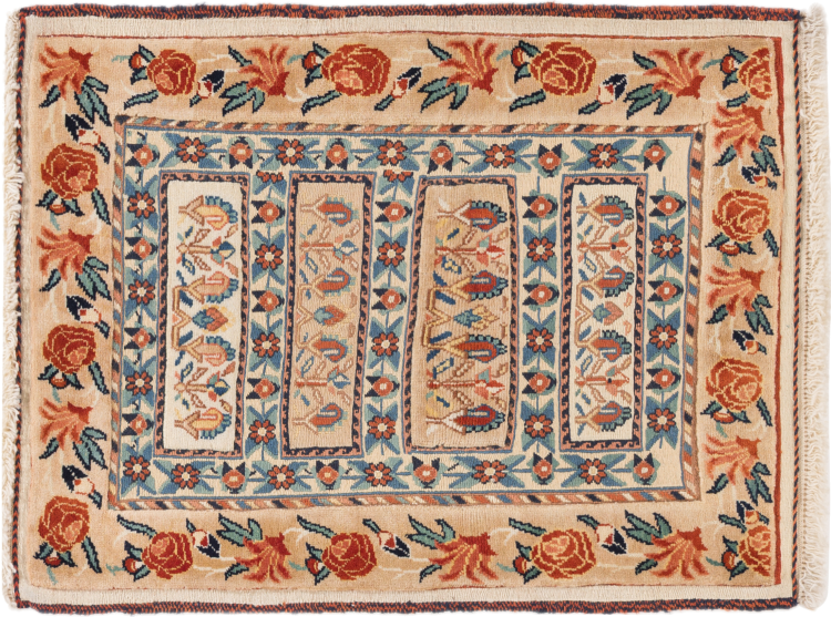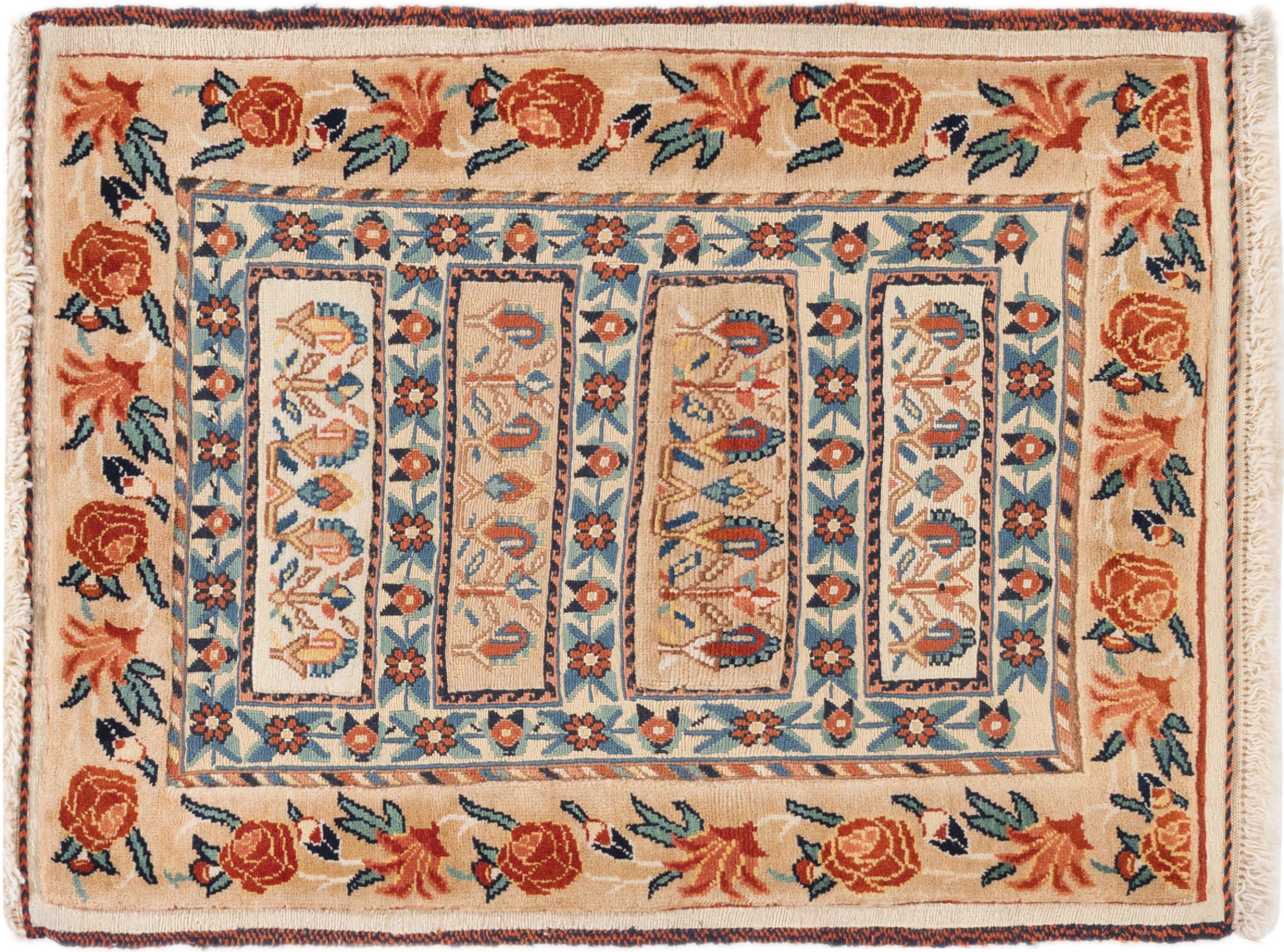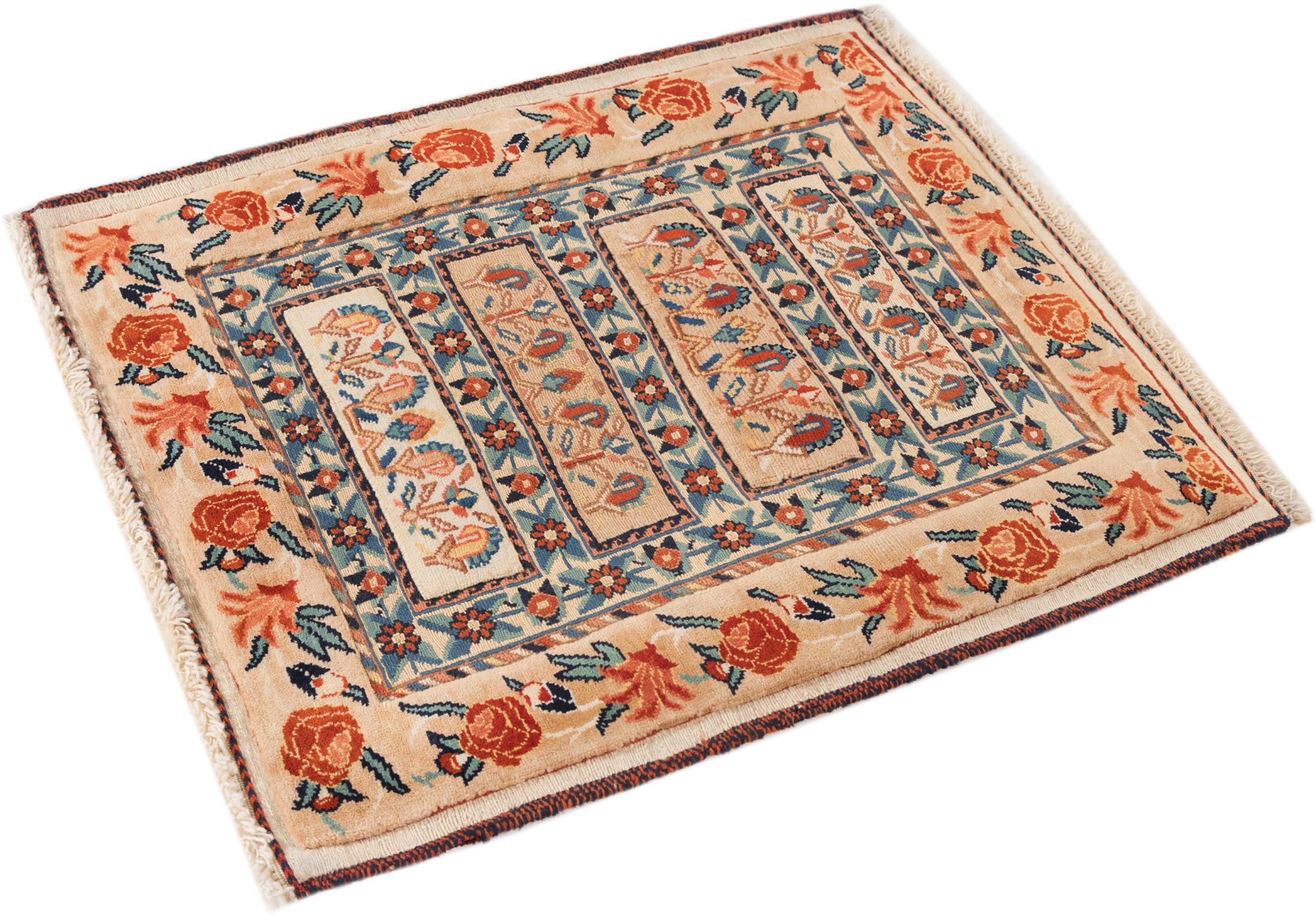 Carpet ID: 296747003321 Size: 90x68 cm Thickness: ap. 8 mm Knot density: 160 000 - 200 000 / m² Manufacturing: Knotted by hand Pile: Handspun wool Warp: Sheep wool Origin: Persia Age: New Weight: ap. 2 kg In stock: Unique - Only 1 in stock